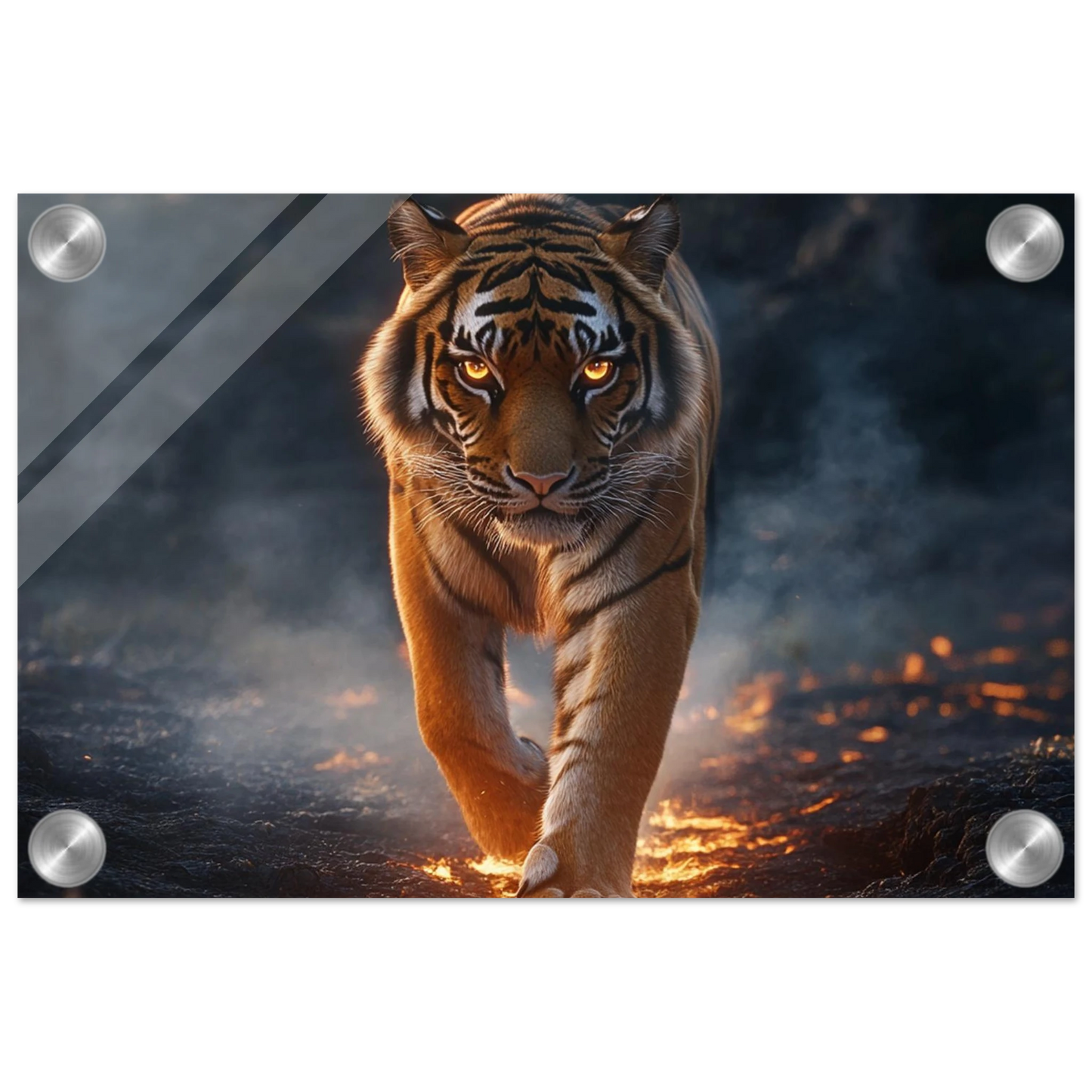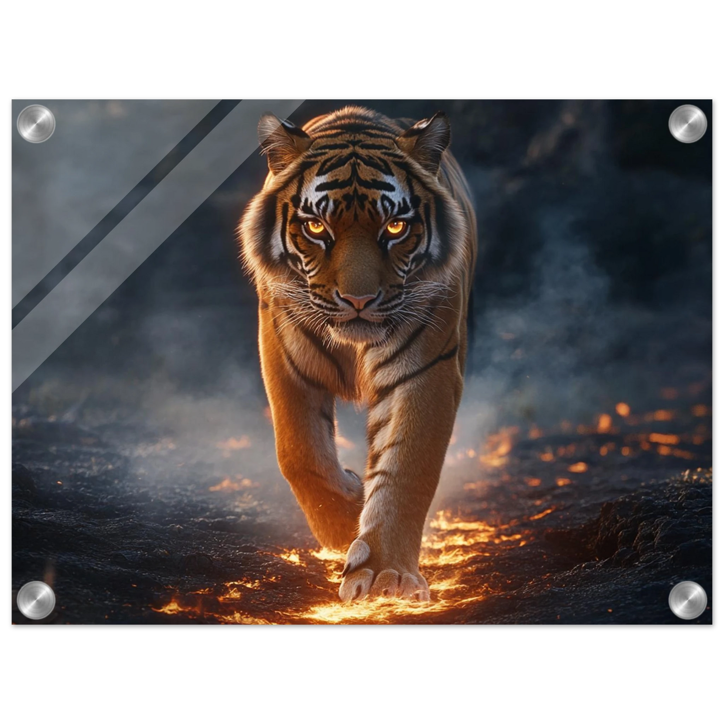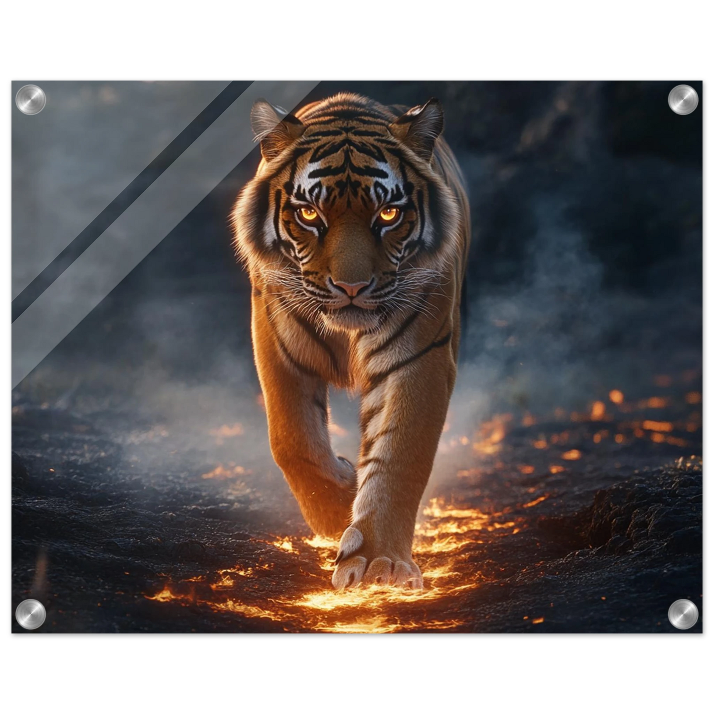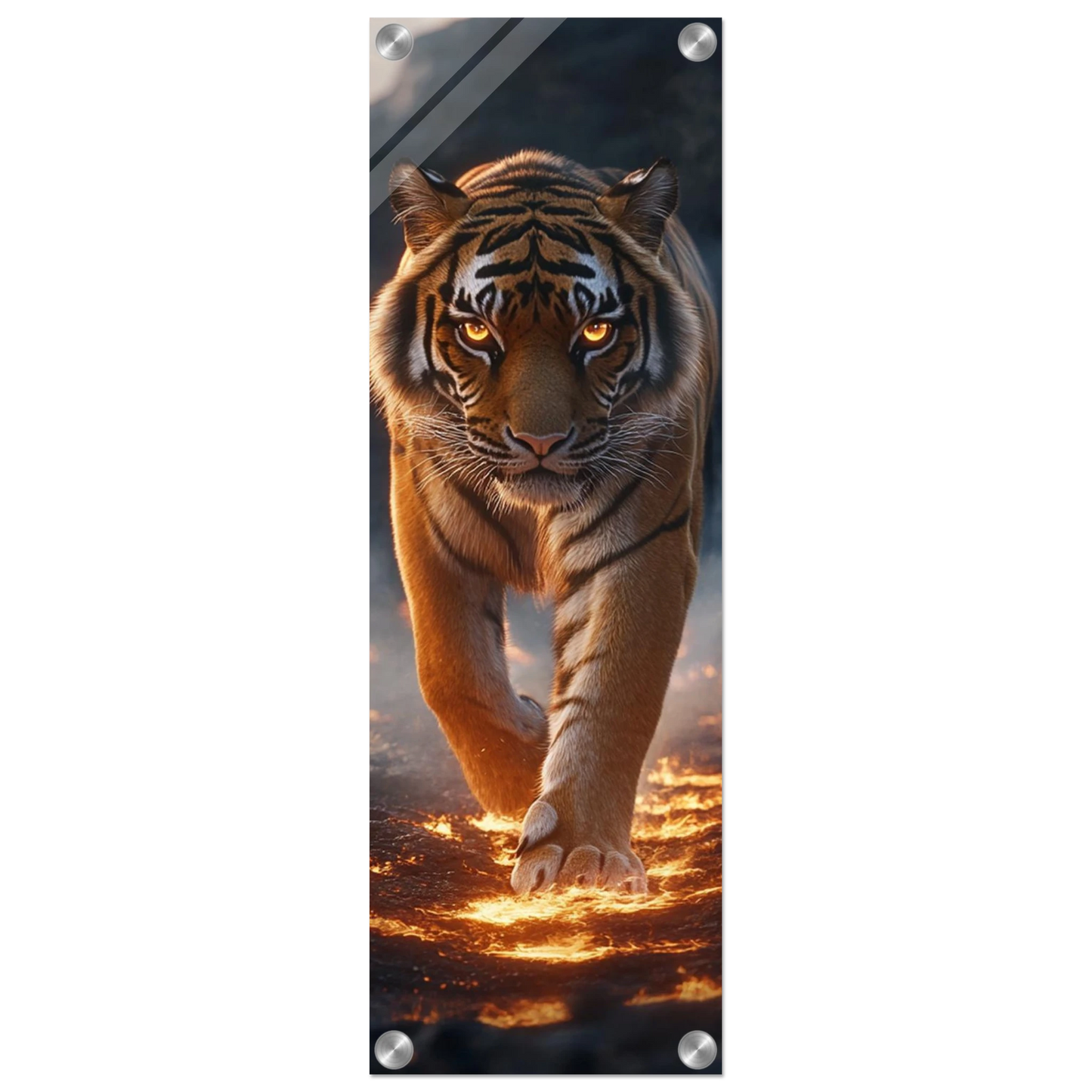 Der Acrylglasdruck fängt Ignaroks kraftvolle Aura in eindrucksvoller Tiefe ein – das glänzende Finish verleiht seinen feurigen Farben und goldenen Akzenten eine fast lebendige Präsenz.