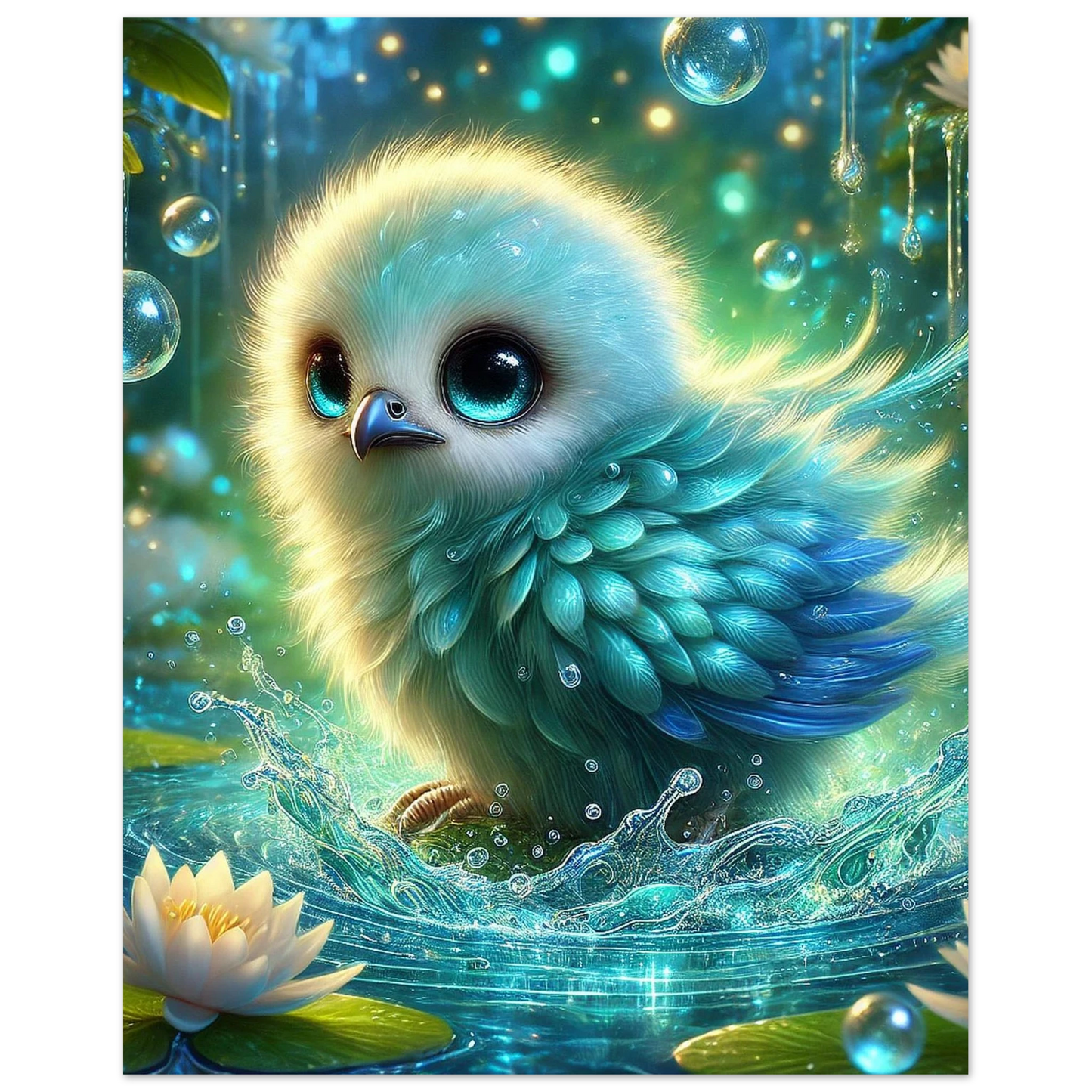 Zart wie ein Tautropfen, leuchtend wie das Morgenlicht – Lumaqua gleitet über die Oberfläche deines Raums wie ein lebendiger Hauch von Magie. Ihr aquamarinfarbenes Gefieder erstrahlt in brillanter Farbintensität auf unserem federleichten Schaumstoffdruck. Dieses Kunstwerk bringt Balance, Ruhe und ein Gefühl von stiller Tiefe – ganz im Sinne der Wächterin des Wassers.