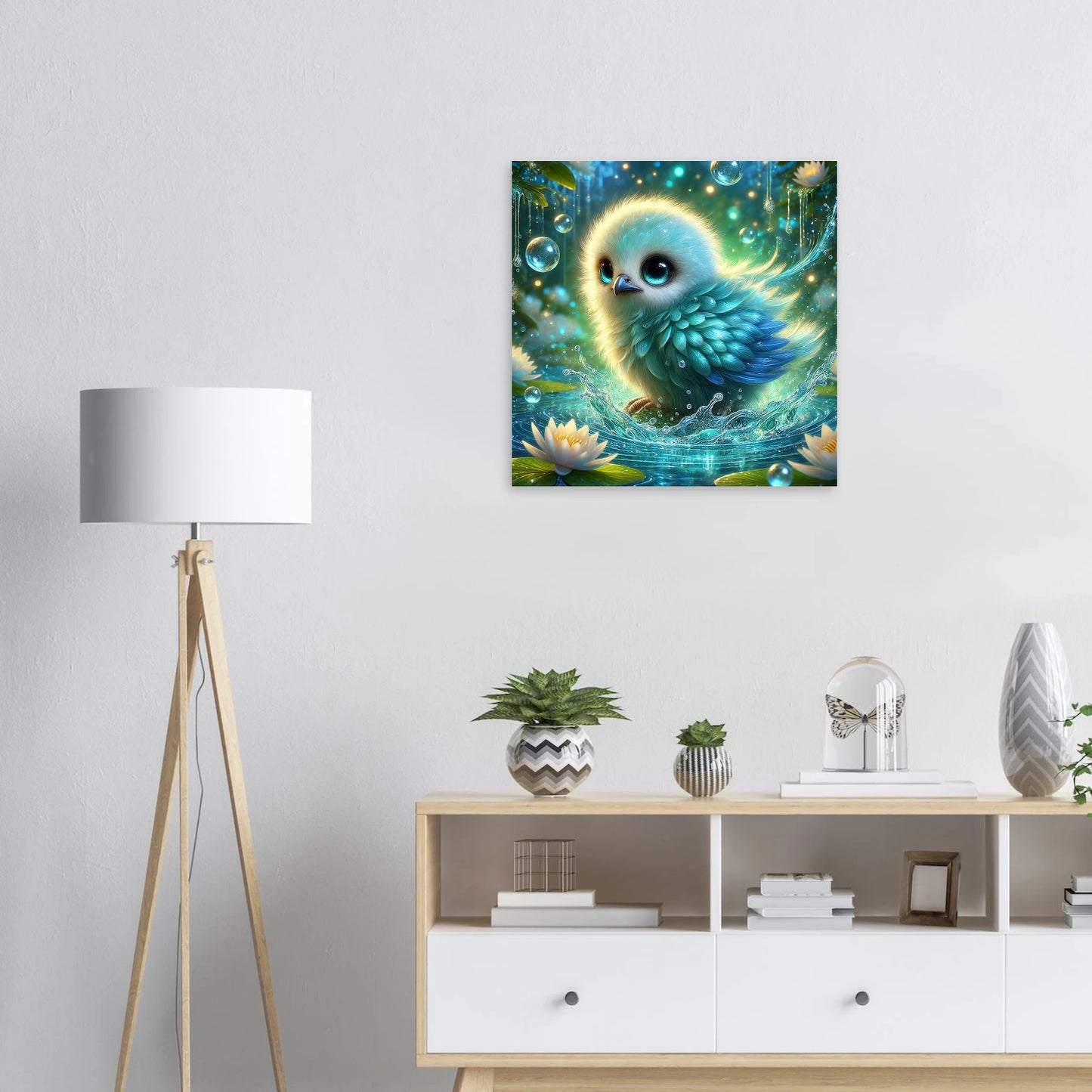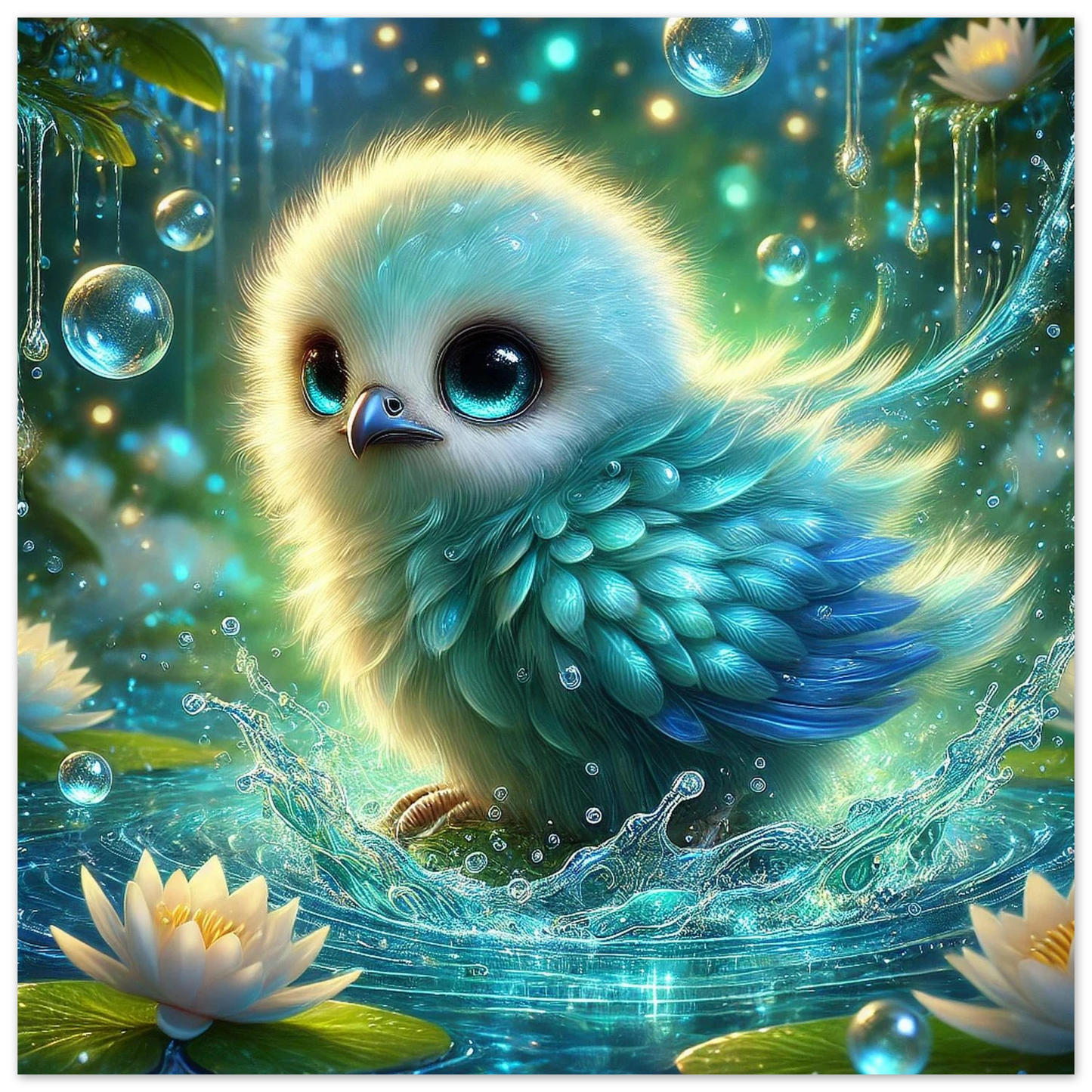 Zart wie ein Tautropfen, leuchtend wie das Morgenlicht – Lumaqua gleitet über die Oberfläche deines Raums wie ein lebendiger Hauch von Magie. Ihr aquamarinfarbenes Gefieder erstrahlt in brillanter Farbintensität auf unserem federleichten Schaumstoffdruck. Dieses Kunstwerk bringt Balance, Ruhe und ein Gefühl von stiller Tiefe – ganz im Sinne der Wächterin des Wassers.