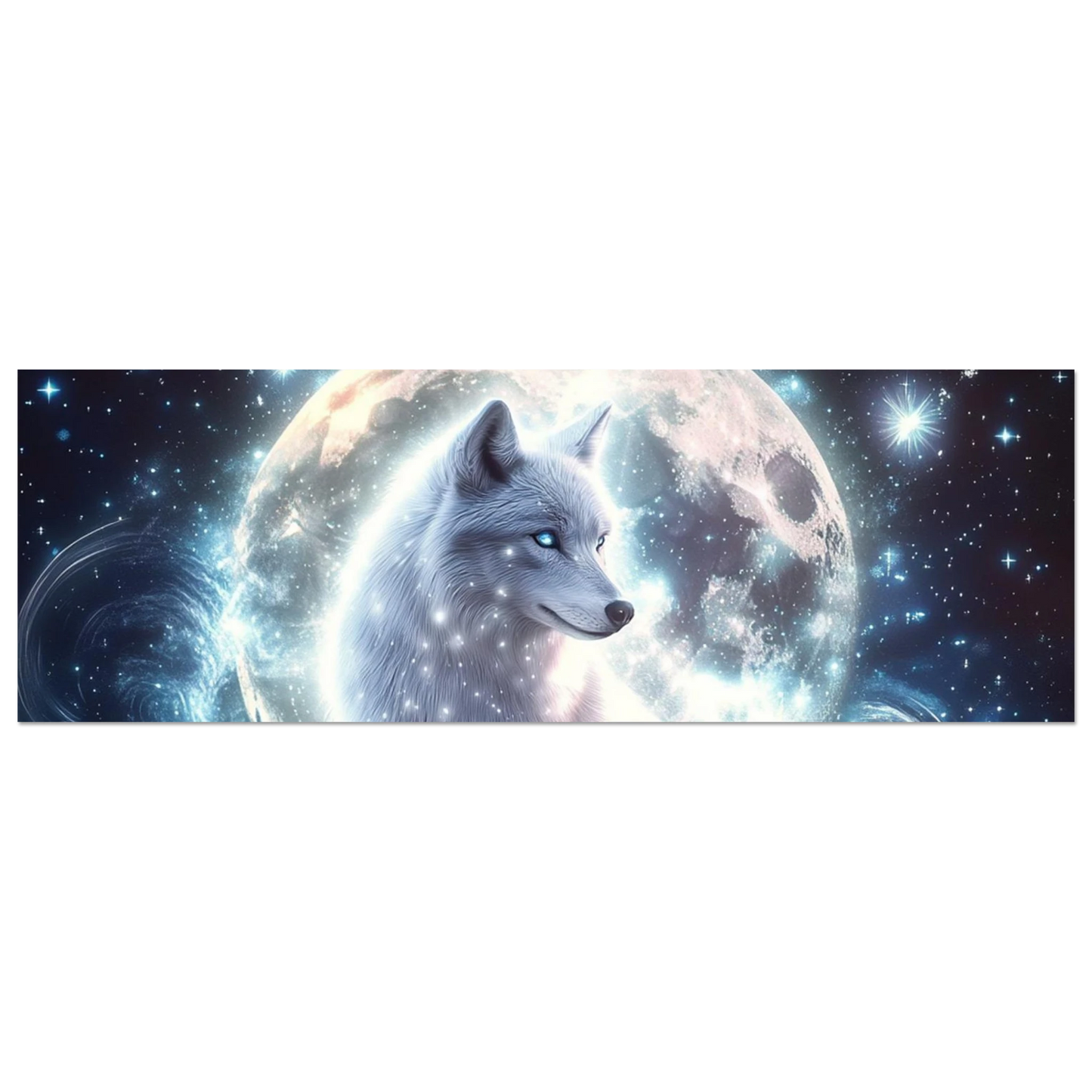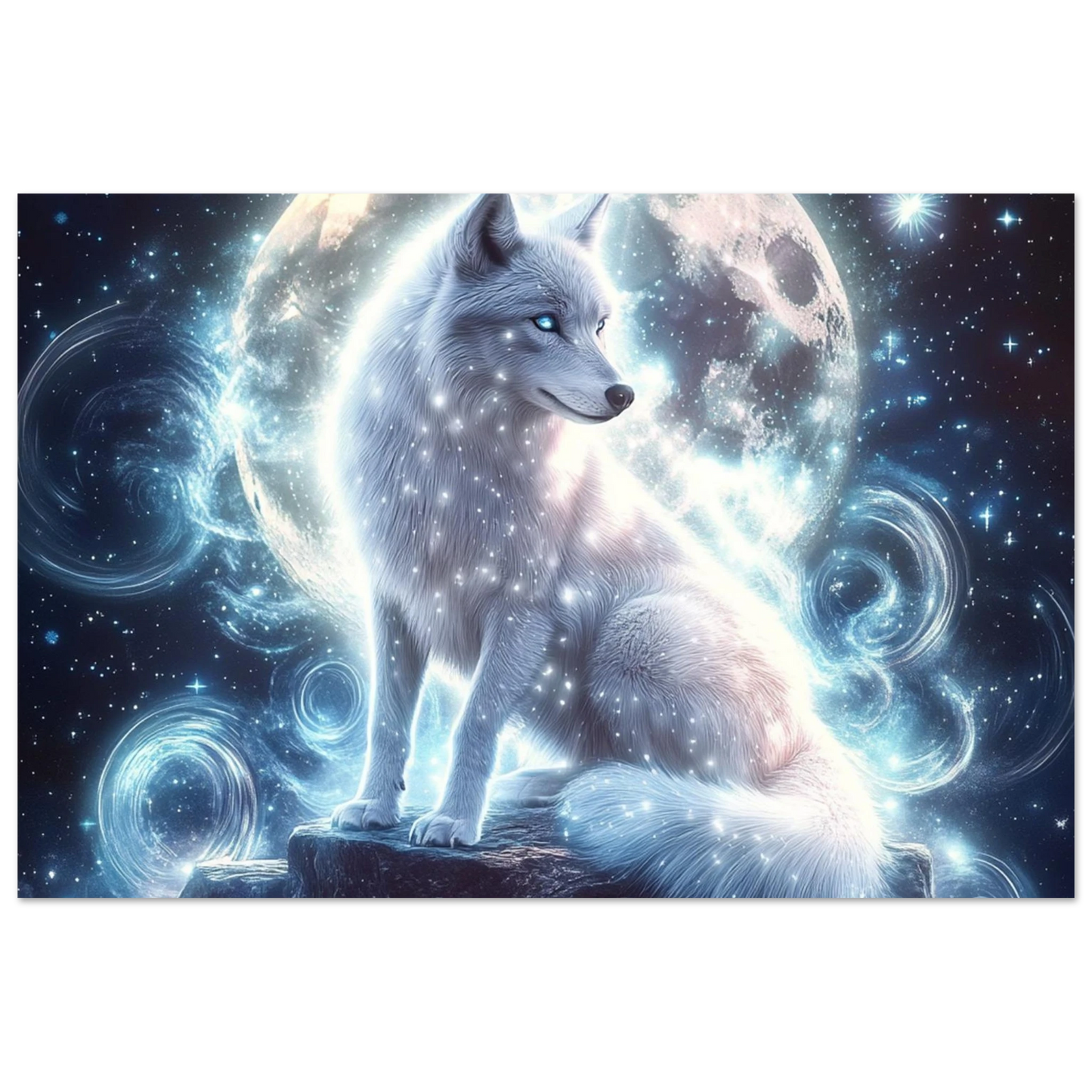 Lunaris, der silberweiße Wolf unter dem hellen Mondlicht, wird in dieser modernen Druckvariante zum stilvollen Mittelpunkt deiner Räume. Gedruckt auf federleichter PVC-Platte mit UV-Schutz wirkt sein sternenstaubgewebtes Fell besonders klar und leuchtend – ideal für helle, ruhige Wohnbereiche oder minimalistische Umgebungen.