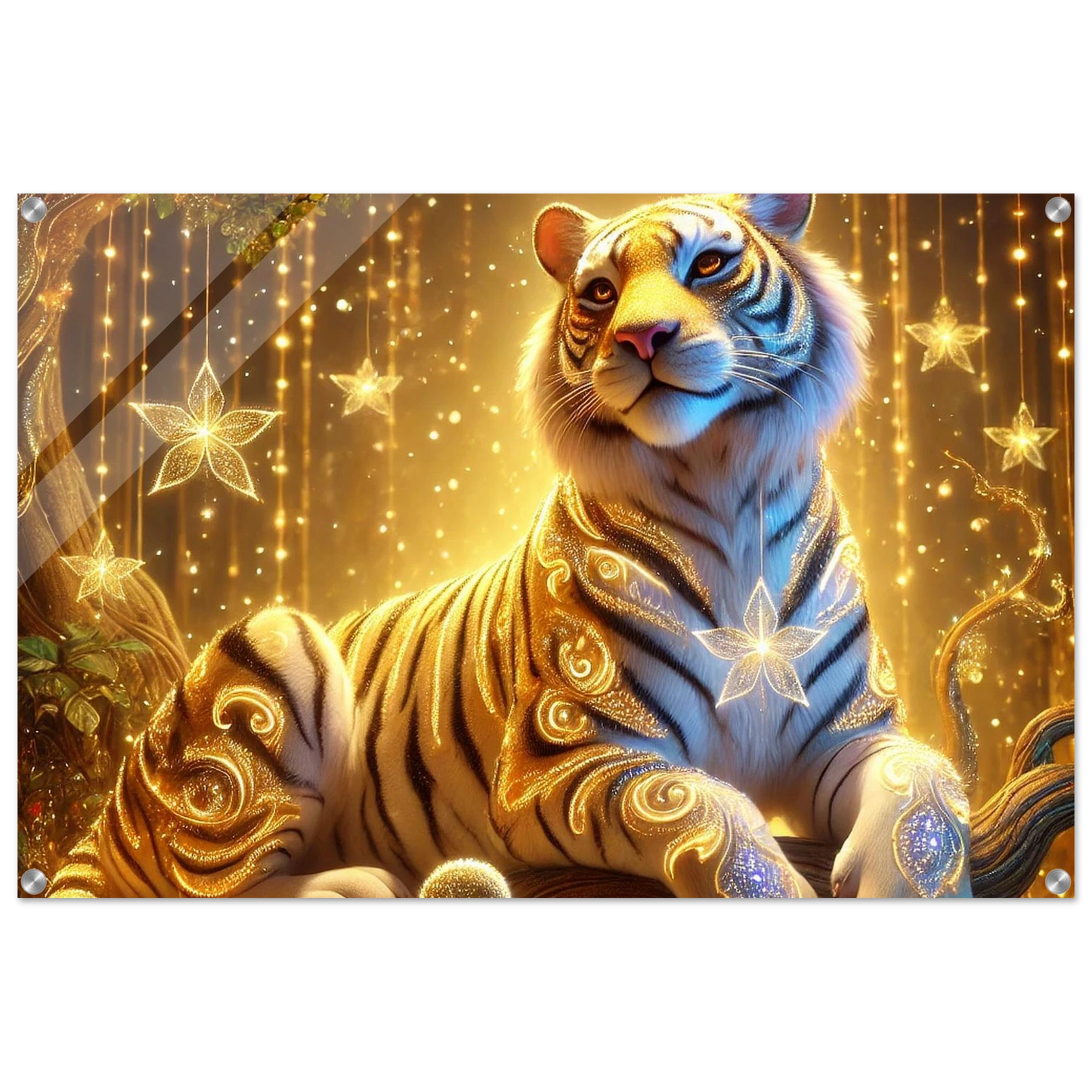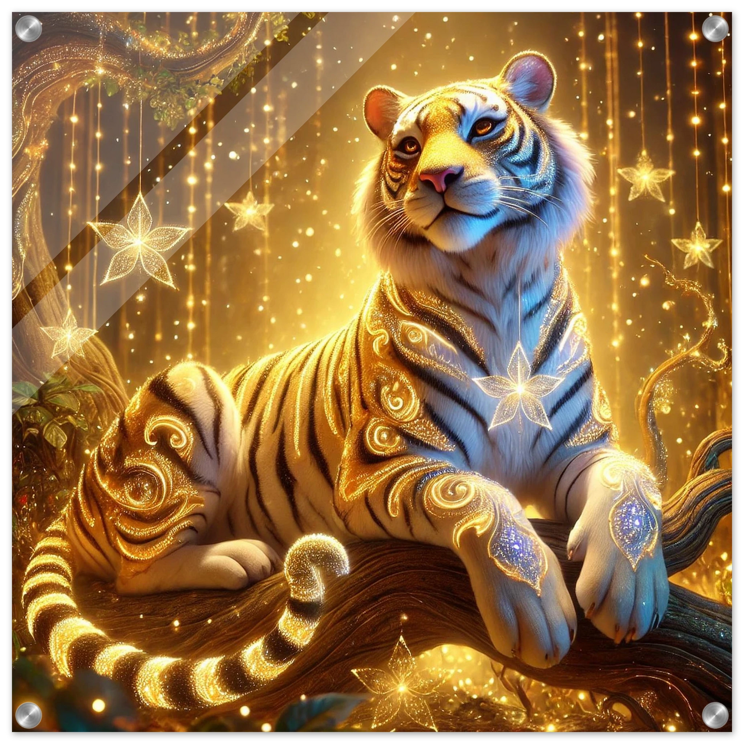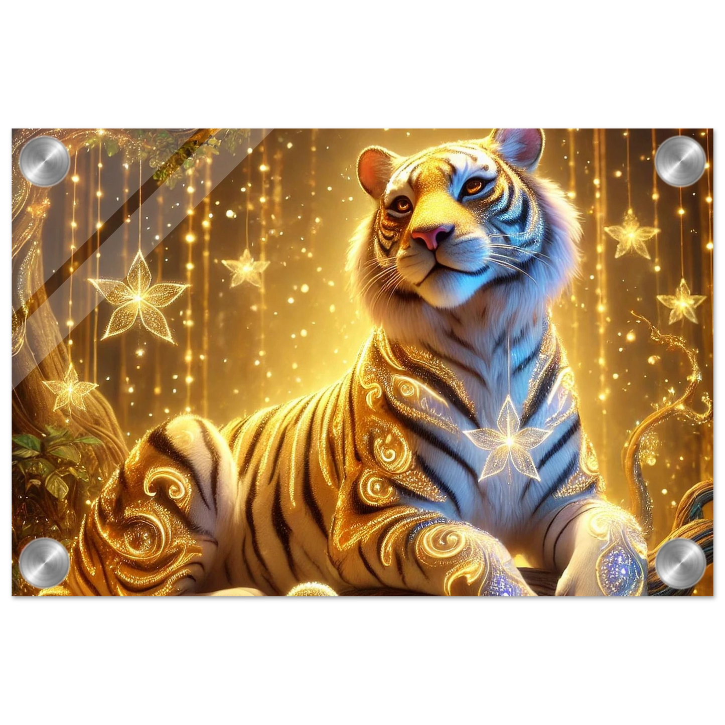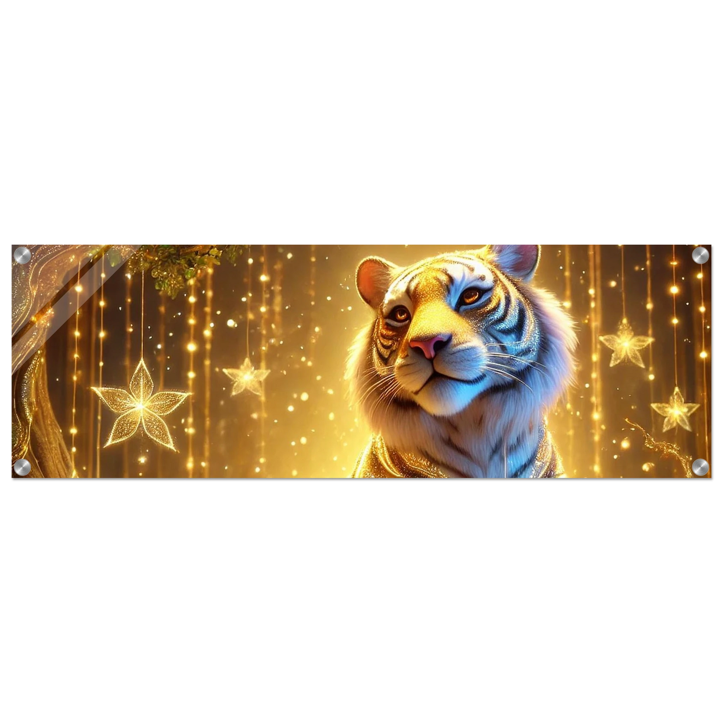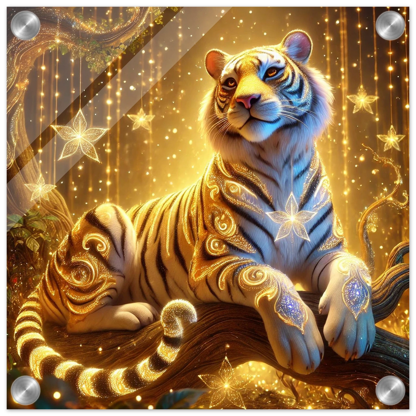 Tauche ein in die leuchtende Welt von Luxarion, dem goldenen Wächter aus Sternenstaub und Sonnenlicht – jetzt in beeindruckender Acrylglasqualität. Die brillante Tiefenwirkung des Materials verleiht Luxarions majestätischem Blick und seinem schimmernden Fell noch mehr Lebendigkeit und Präsenz. Wie geschaffen für Räume, die Klarheit und Wärme ausstrahlen sollen.