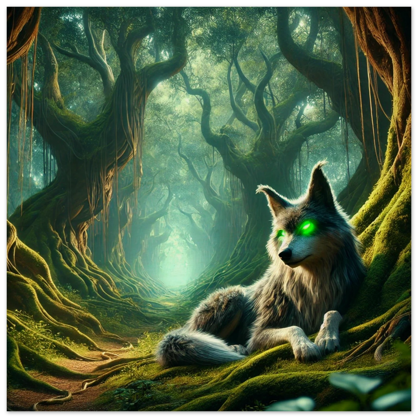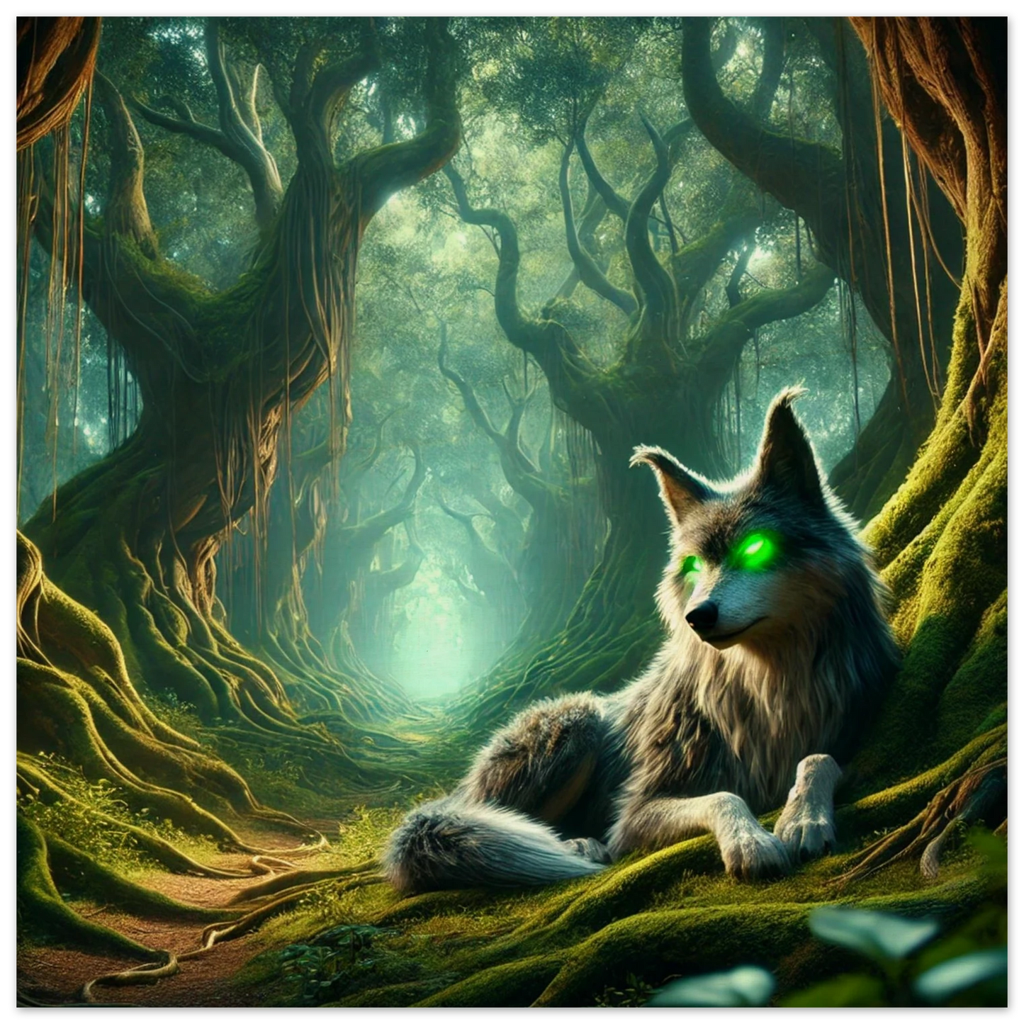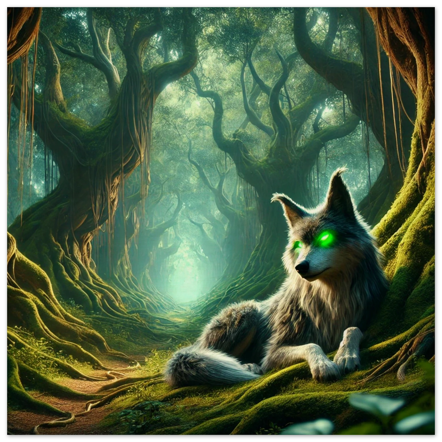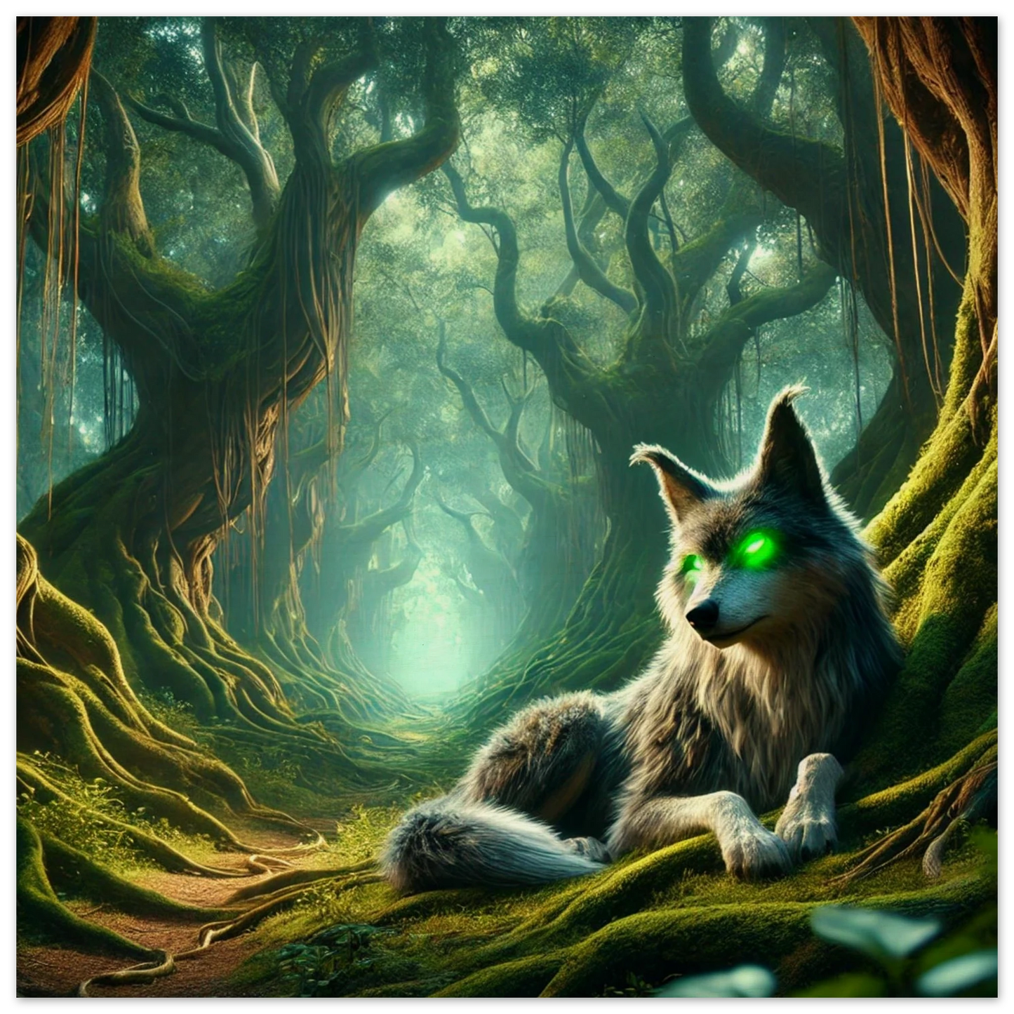 Tief im Schattenwald, wo uralte Bäume flüstern und Nebel Geschichten tragen, wacht Mirkai – ein Wolf aus Legenden und Waldmagie. Seine leuchtend grünen Augen sehen tiefer als Licht, sein Blick prüft die Seele. Er erscheint jenen, die sich verlaufen haben – nicht um zu führen, sondern um zu prüfen, ob sie den Weg selbst finden können. Mirkai ist Erinnerung, Mahnung und Schutz – der Atem des Waldes in Gestalt eines Wesens.