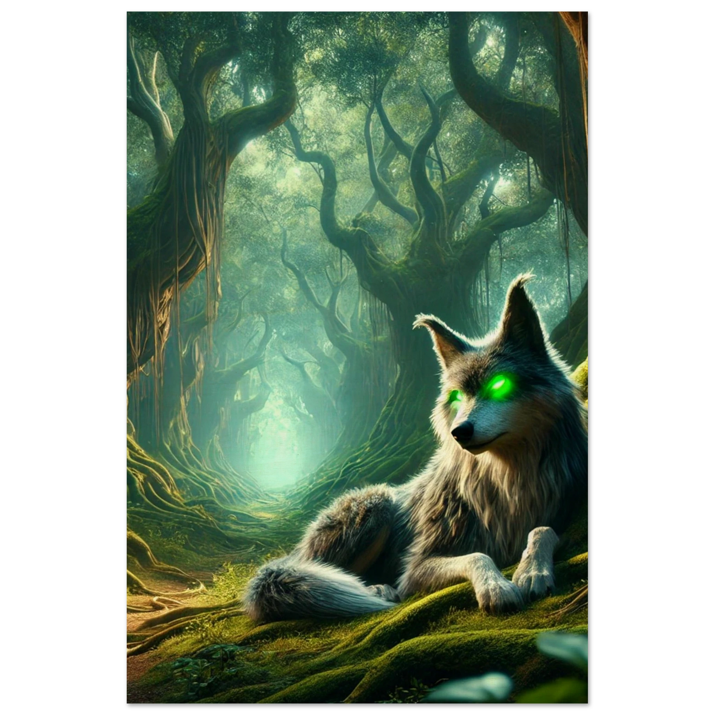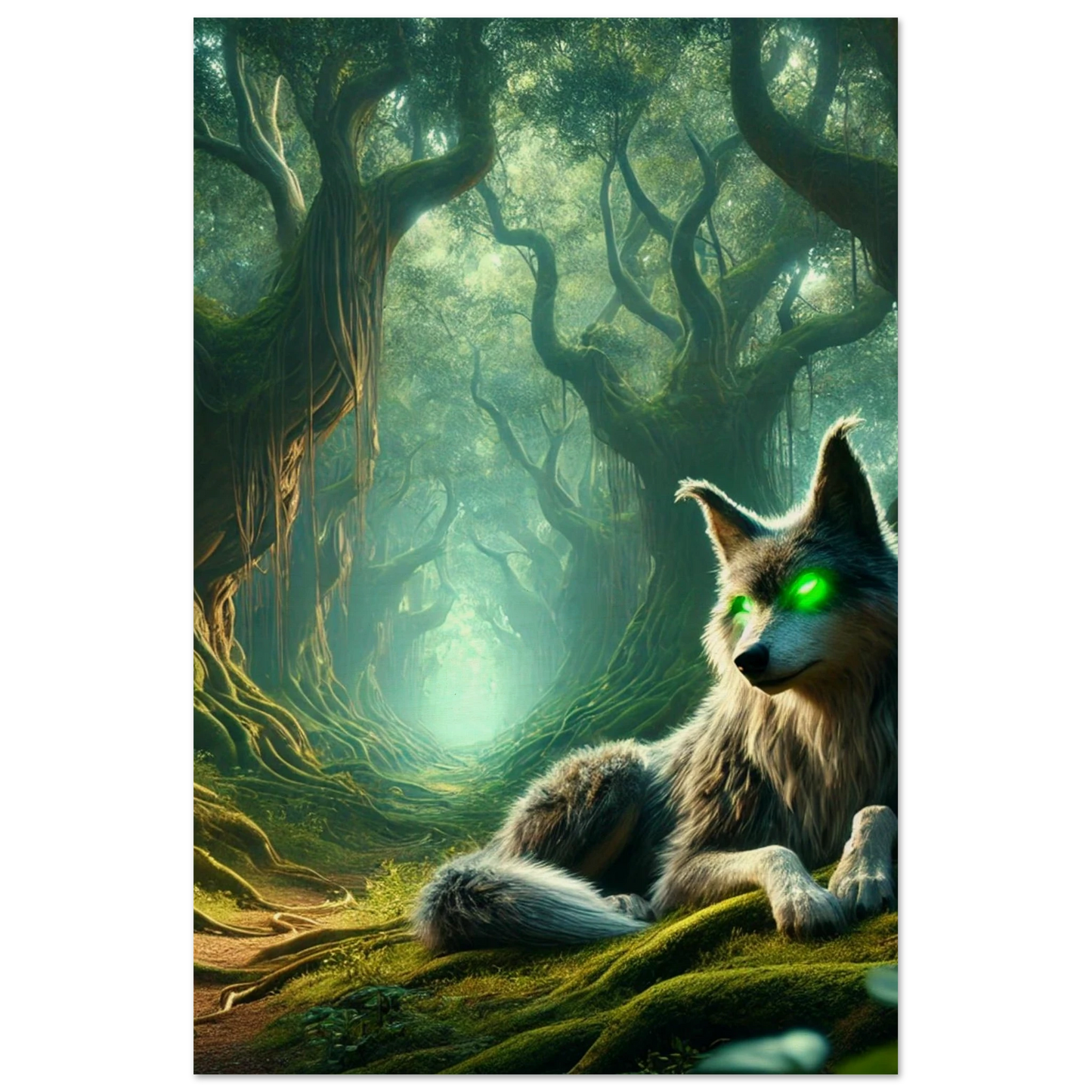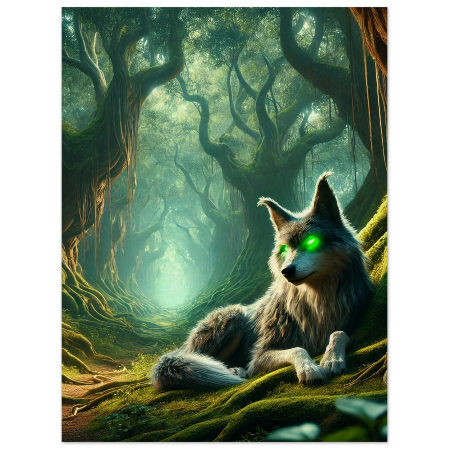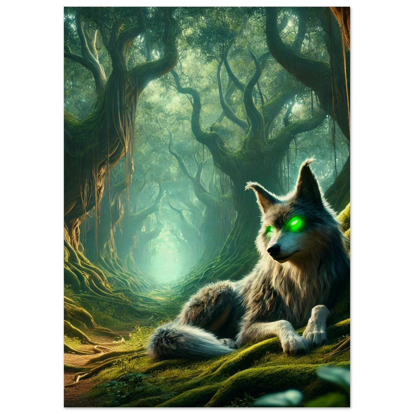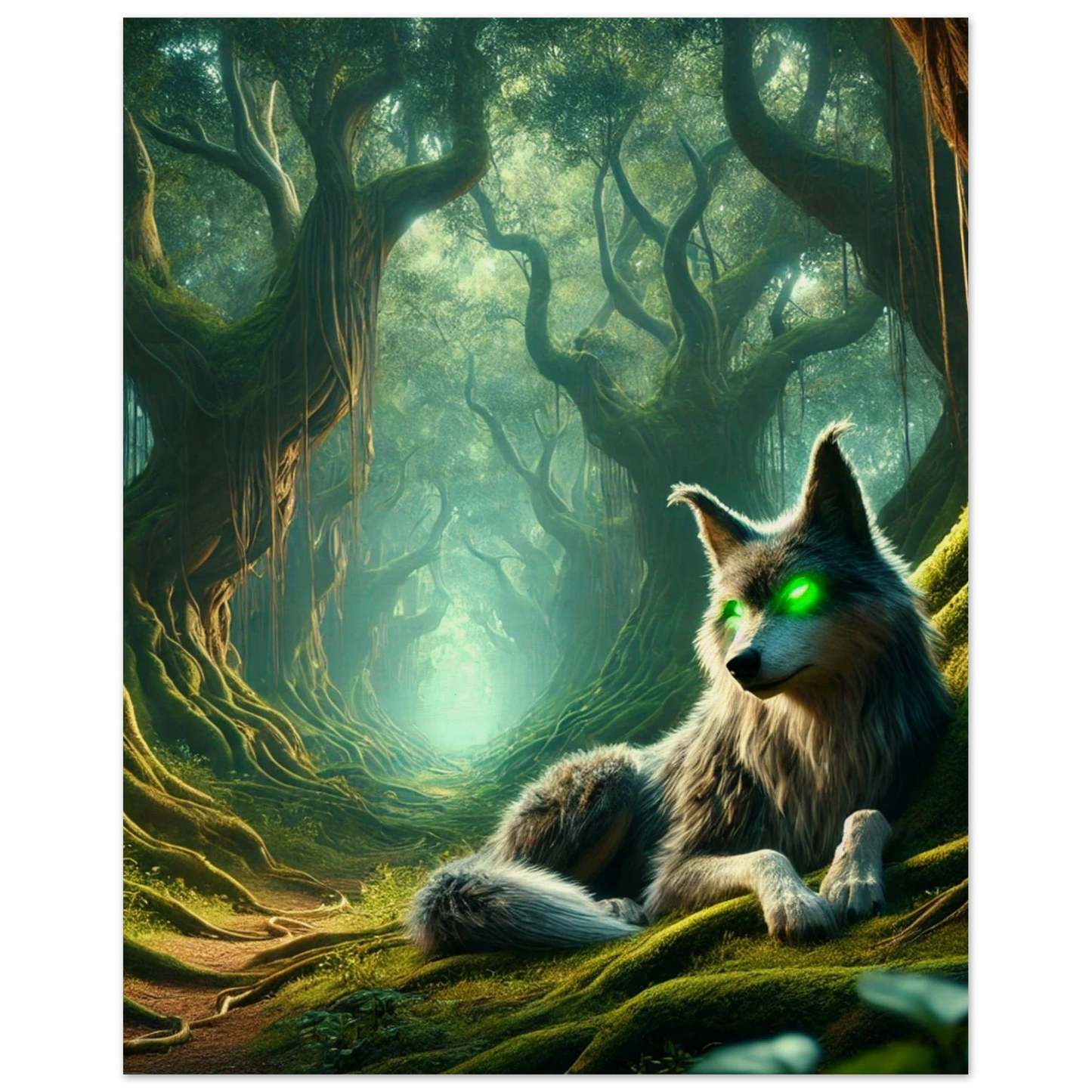 Tief im Schattenwald, wo uralte Bäume flüstern und Nebel Geschichten tragen, wacht Mirkai – ein Wolf aus Legenden und Waldmagie. Seine leuchtend grünen Augen sehen tiefer als Licht, sein Blick prüft die Seele. Er erscheint jenen, die sich verlaufen haben – nicht um zu führen, sondern um zu prüfen, ob sie den Weg selbst finden können. Mirkai ist Erinnerung, Mahnung und Schutz – der Atem des Waldes in Gestalt eines Wesens.
