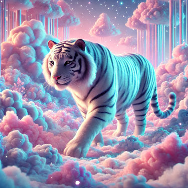 Neburo schreitet majestätisch durch ein Reich aus Wattewolken und irisierenden Himmelsfarben – ein weißer Tiger, wie aus einem Traum geboren. Seine gestreifte Erscheinung vereint Stärke und Sanftheit, während seine Pfoten kaum eine Spur auf dem ätherischen Boden hinterlassen. Neburo ist kein gewöhnliches Tier – er ist ein Wesen aus Fantasie, ein Wächter zwischen Himmel und Erde.