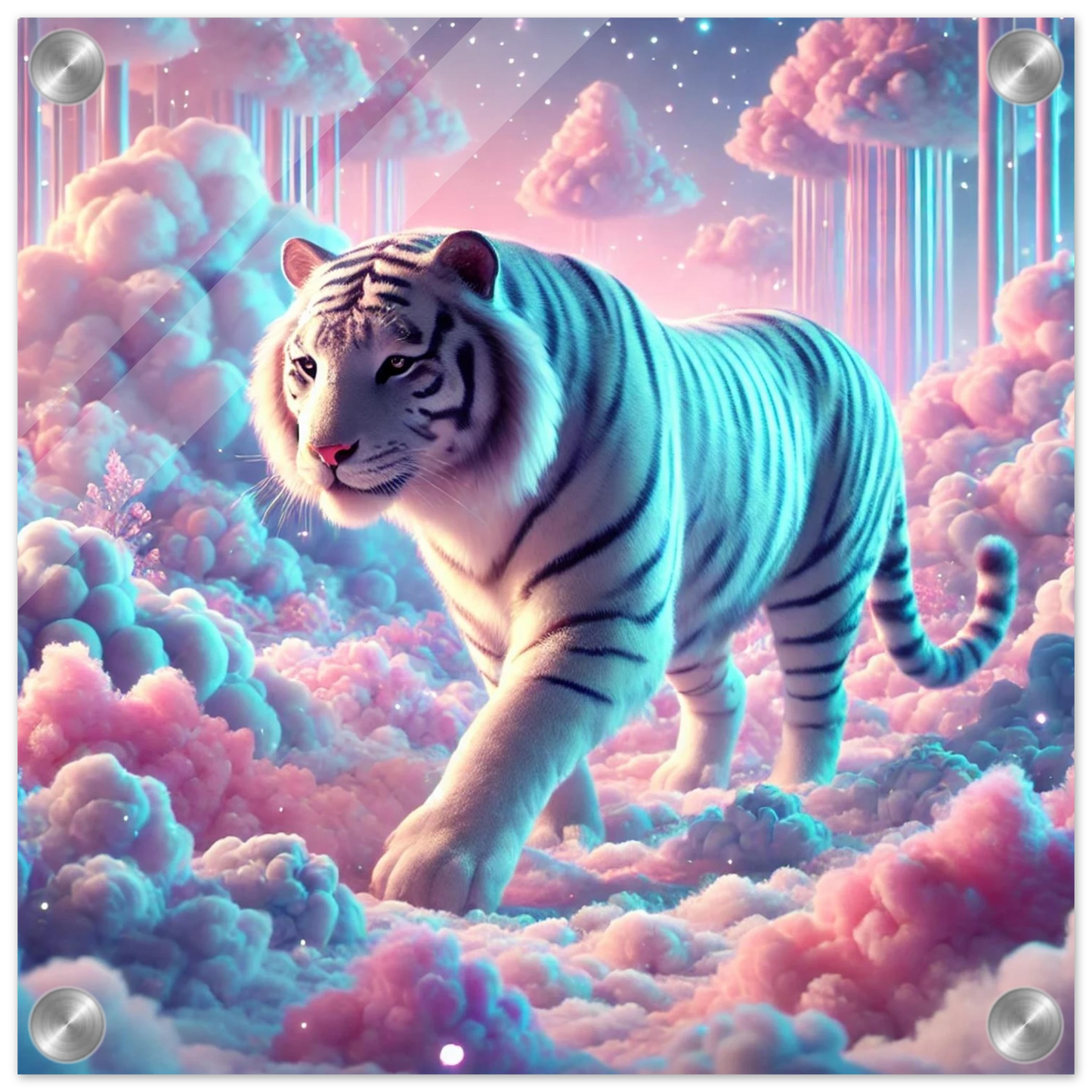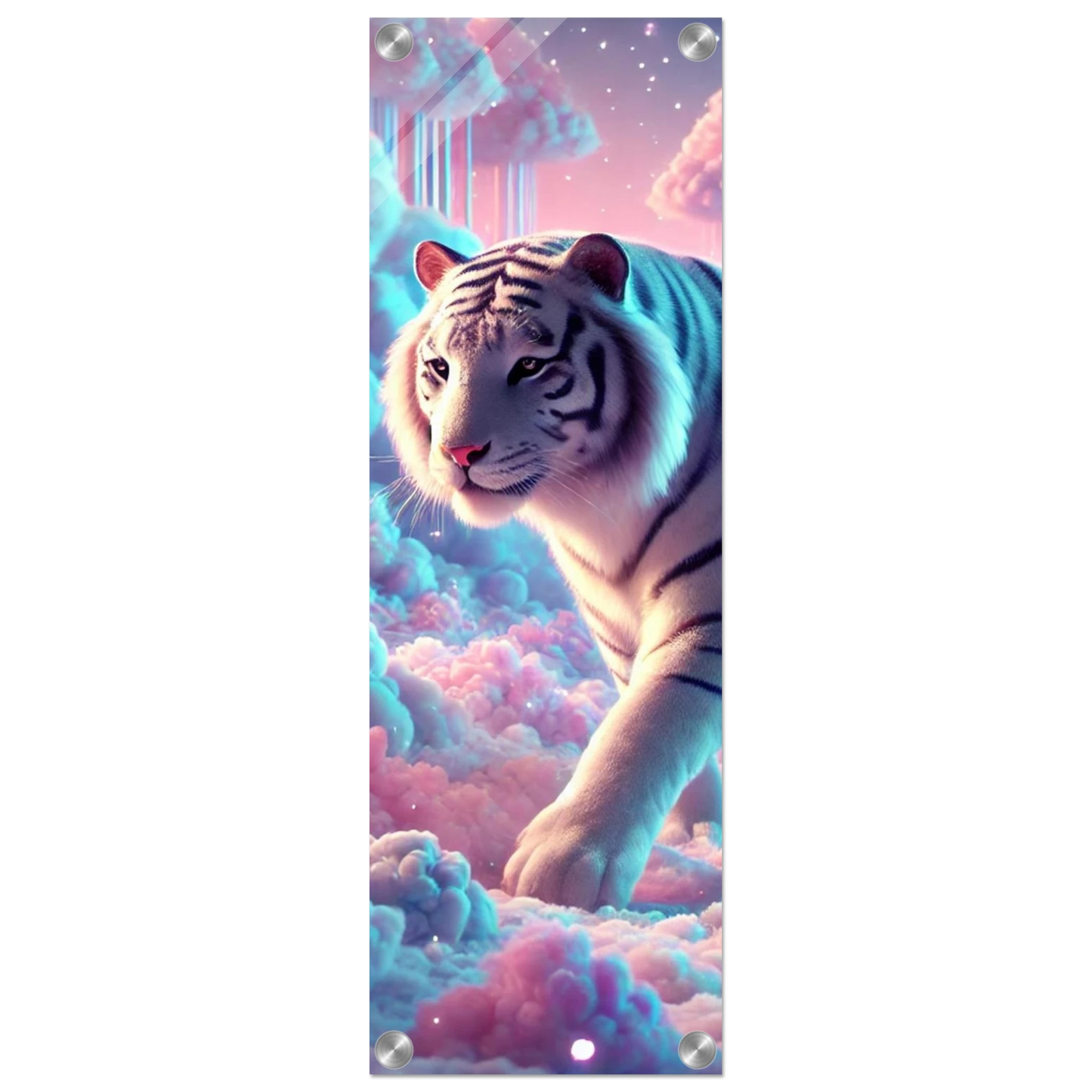 Neburo ist ein Wächter zwischen Fantasie und Realität – ein himmlischer Tiger, dessen weißes Fell die Farben des Himmels reflektiert. In einer Welt aus Dämmerlicht und Wolkenschimmer führt er jene, die ihren inneren Kompass verloren haben, sanft zurück ins Licht.