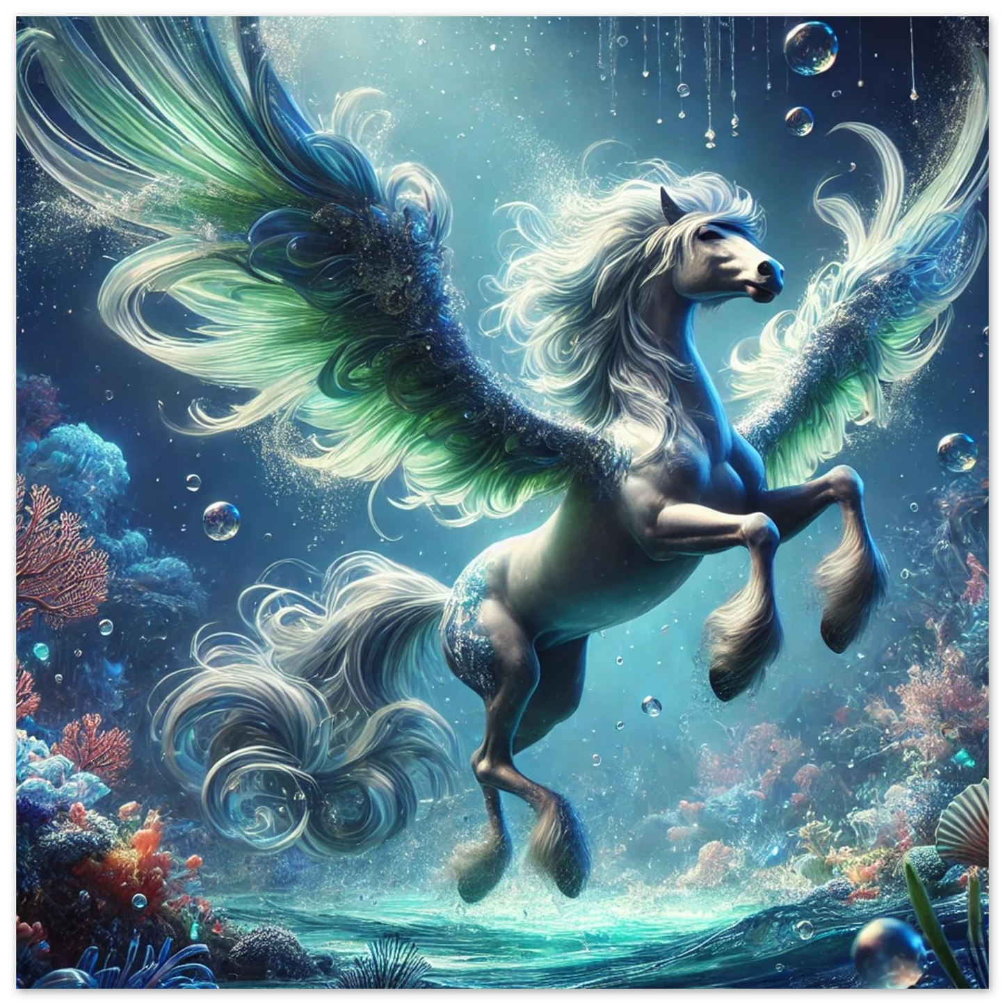 Unsere beliebten Schaumstoffdrucke sind elegant, modern und superleicht – ideal für fantastische Motive wie Nerion, den Meerespegasus. Mit brillanten Farben und glatter Oberfläche verleihen sie jedem Raum einen Hauch von Magie.