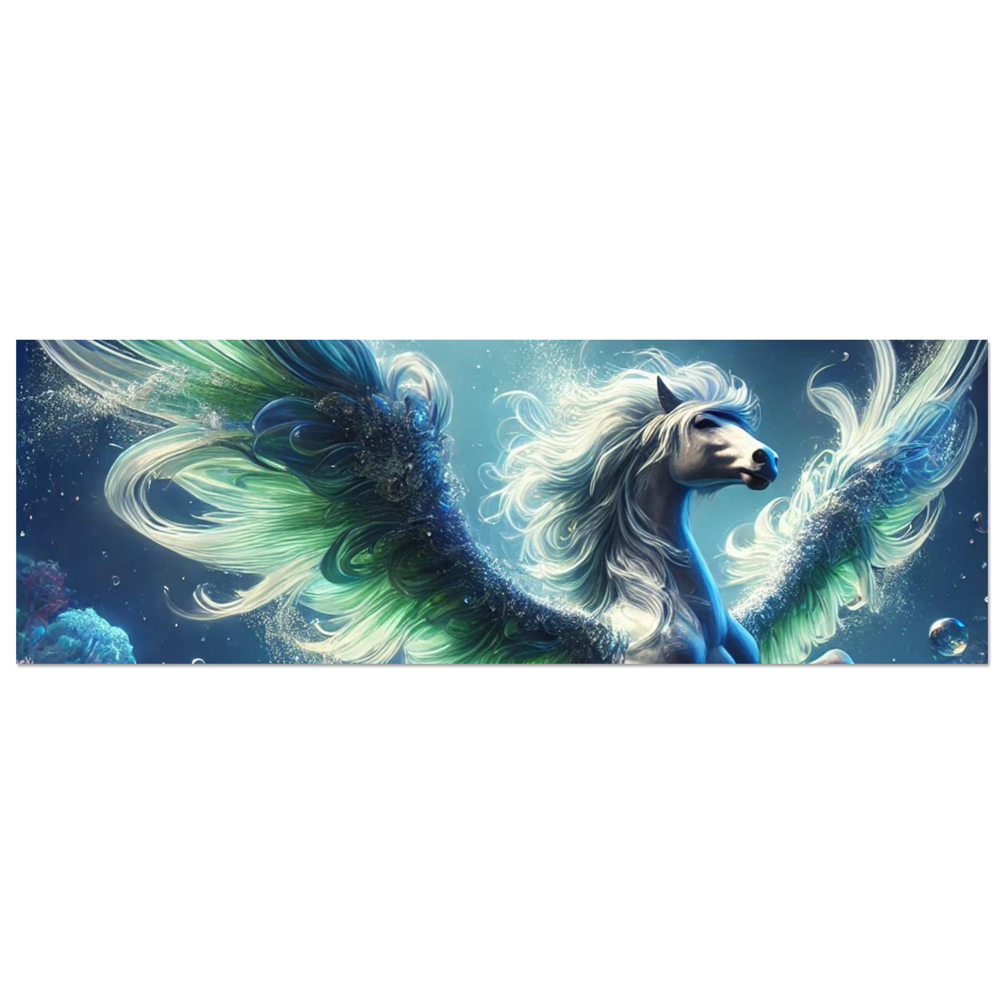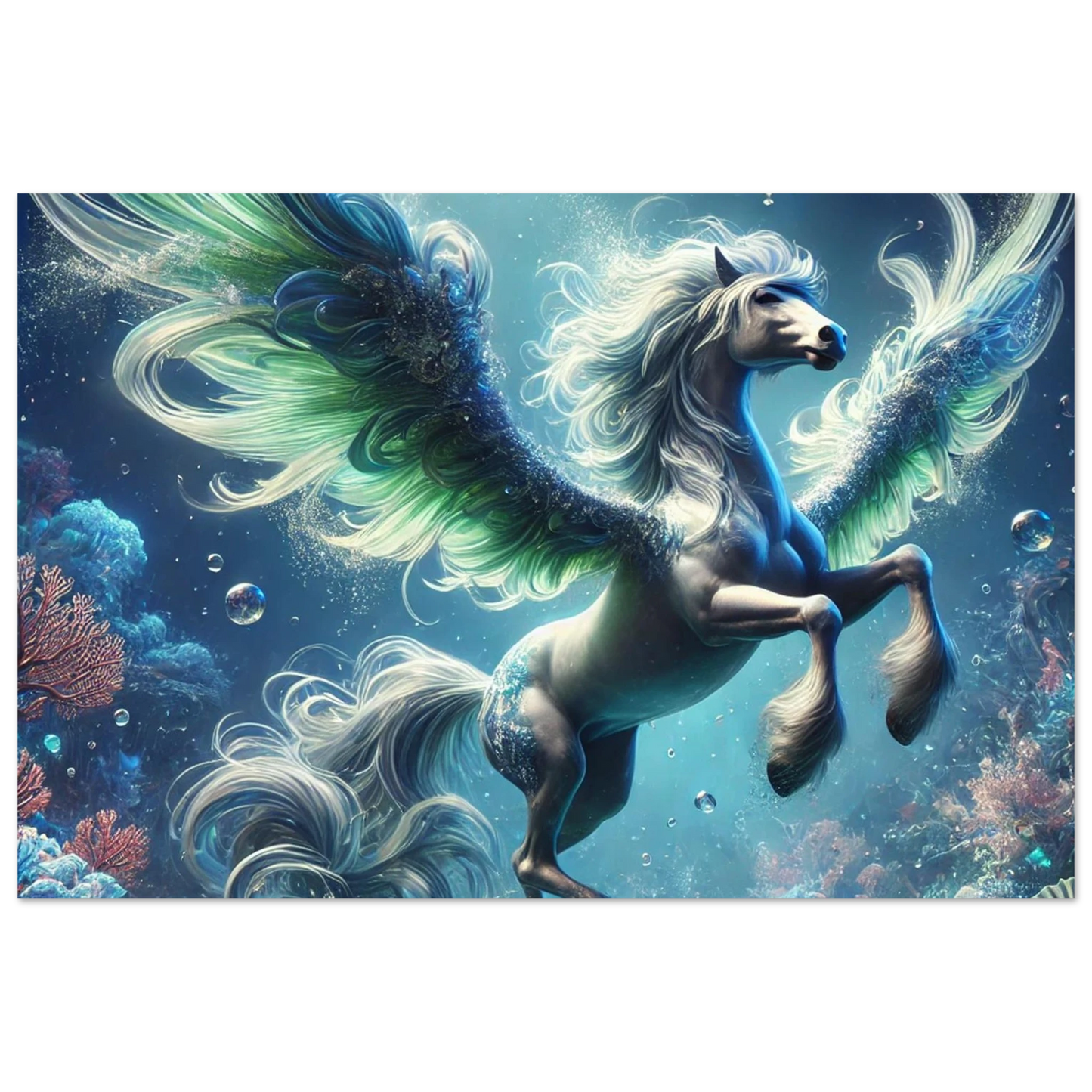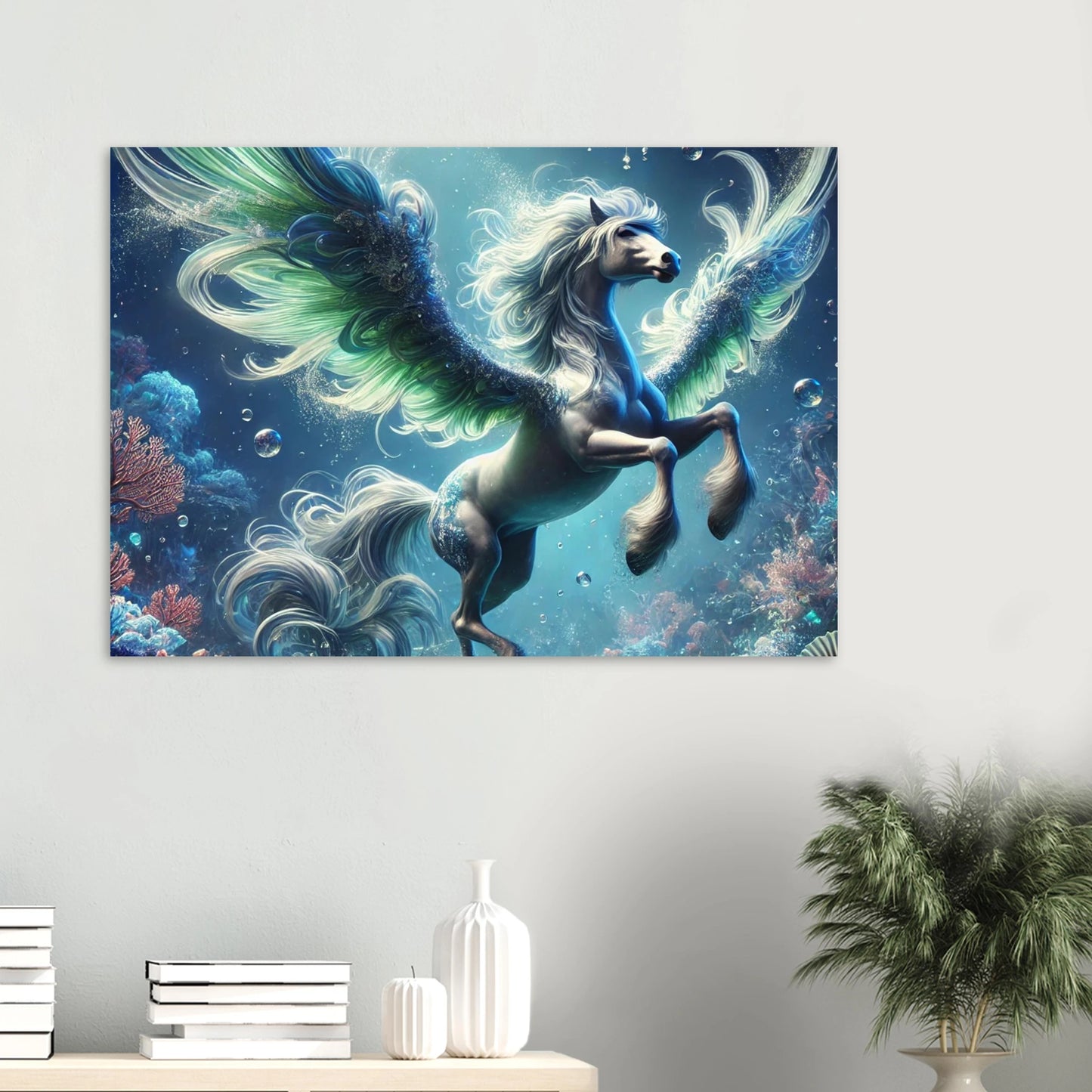 Unsere eleganten Schaumstoffdrucke bringen moderne Leichtigkeit mit magischer Bildwirkung zusammen – ideal für fantastische Motive wie Nerion. Die glatte Oberfläche sorgt für brillante Farben und lässt die ozeanischen Töne des Meerespegasus intensiv leuchten.