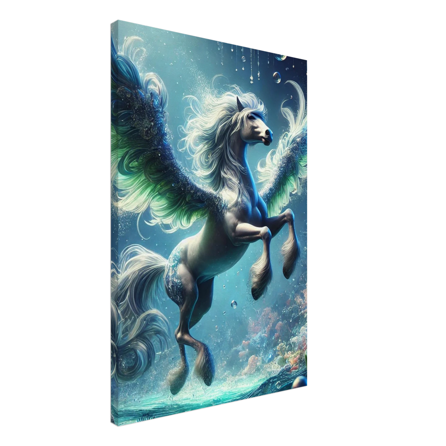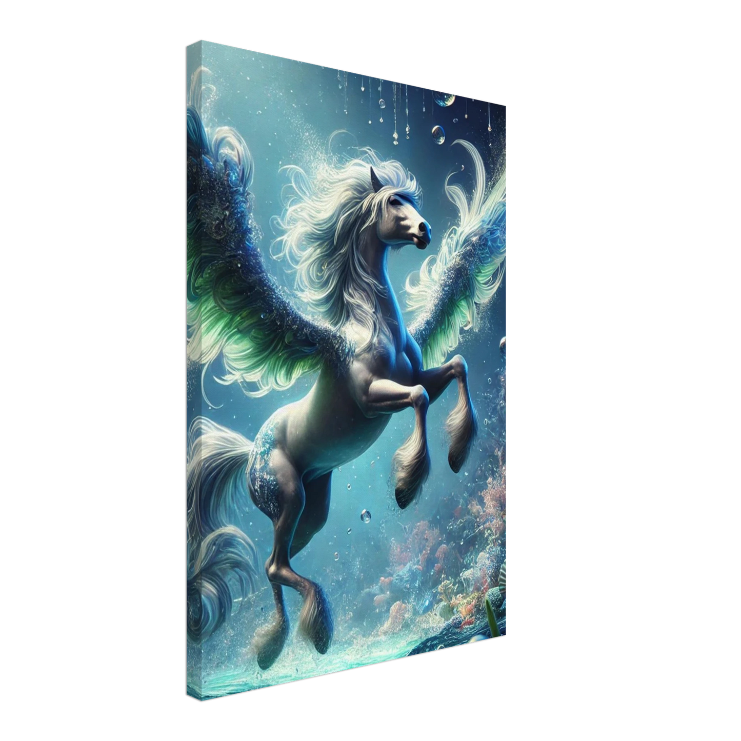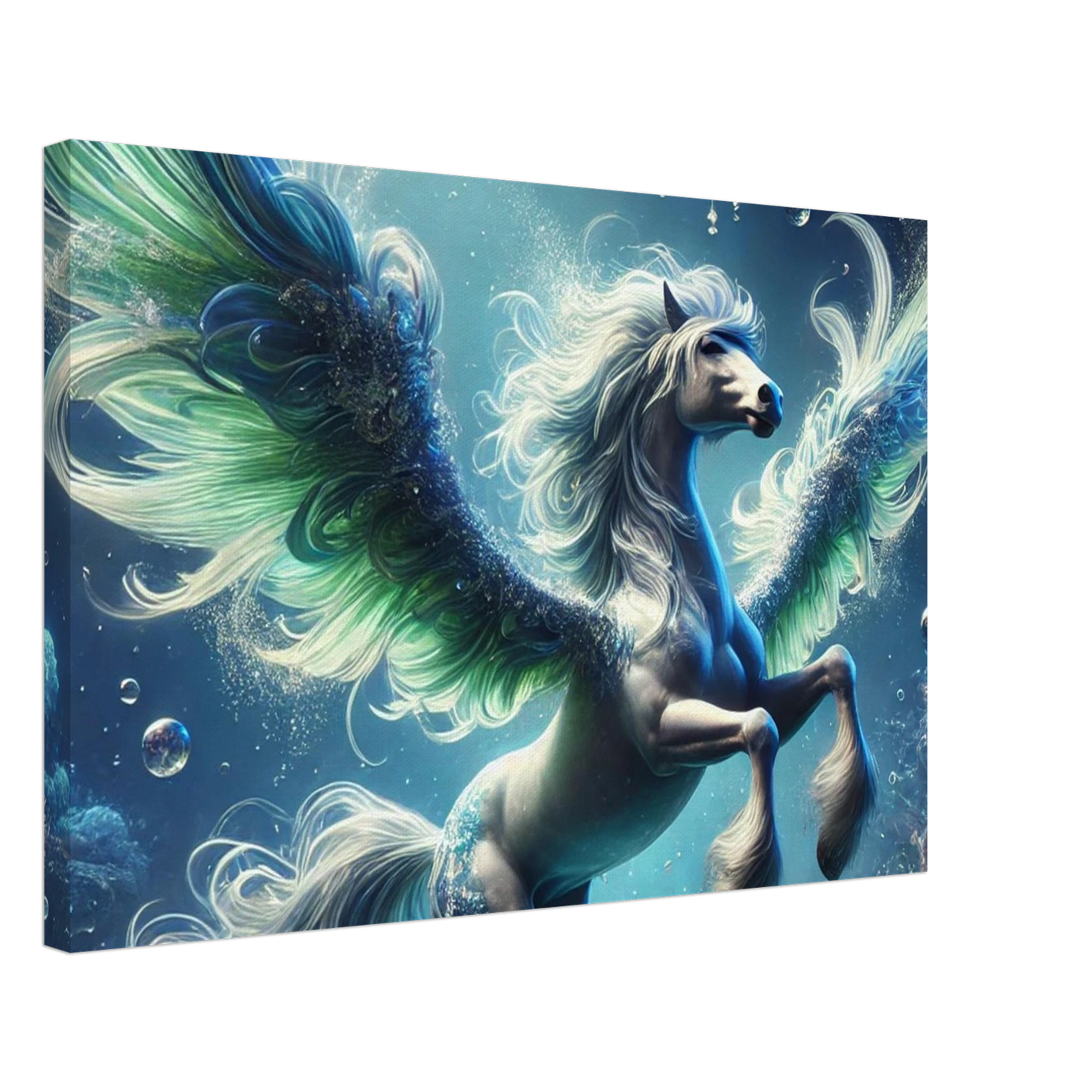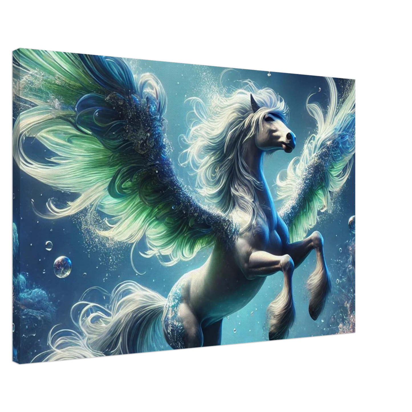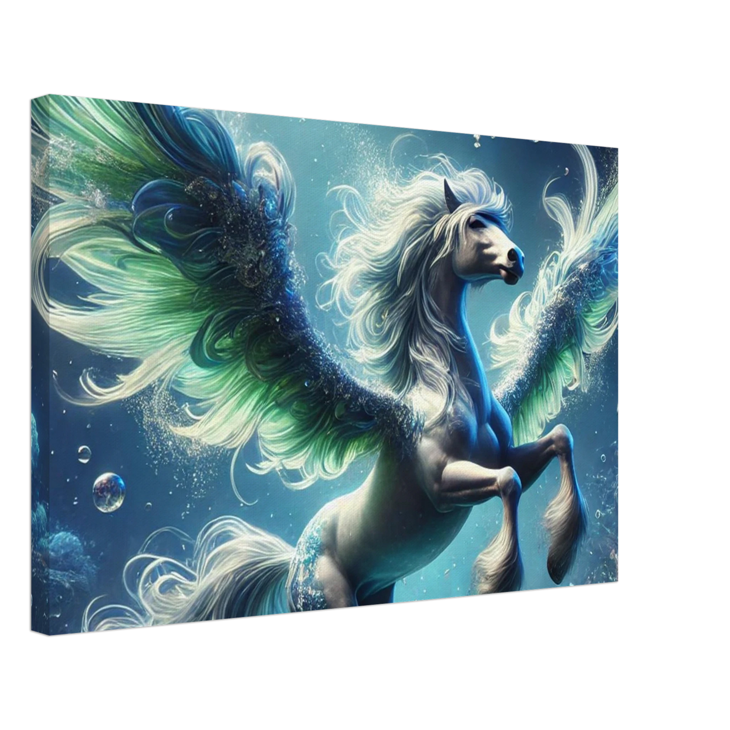 Mit schimmerndem Fell und kraftvollen Flügeln gleitet Nerion durch die Tiefen des Ozeans – geboren aus der Träne eines Seesterns und dem Atem der Meeresgöttin. Er ist der Hüter vergessener Träume und Wächter der Tiefe. Wer ihm begegnet, spürt die Magie des Wassers – still, sanft und voller Leben.