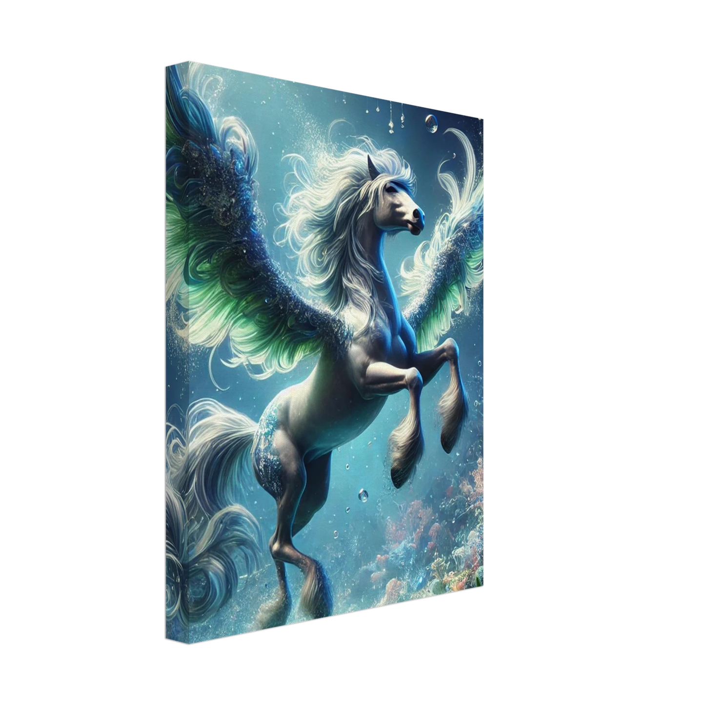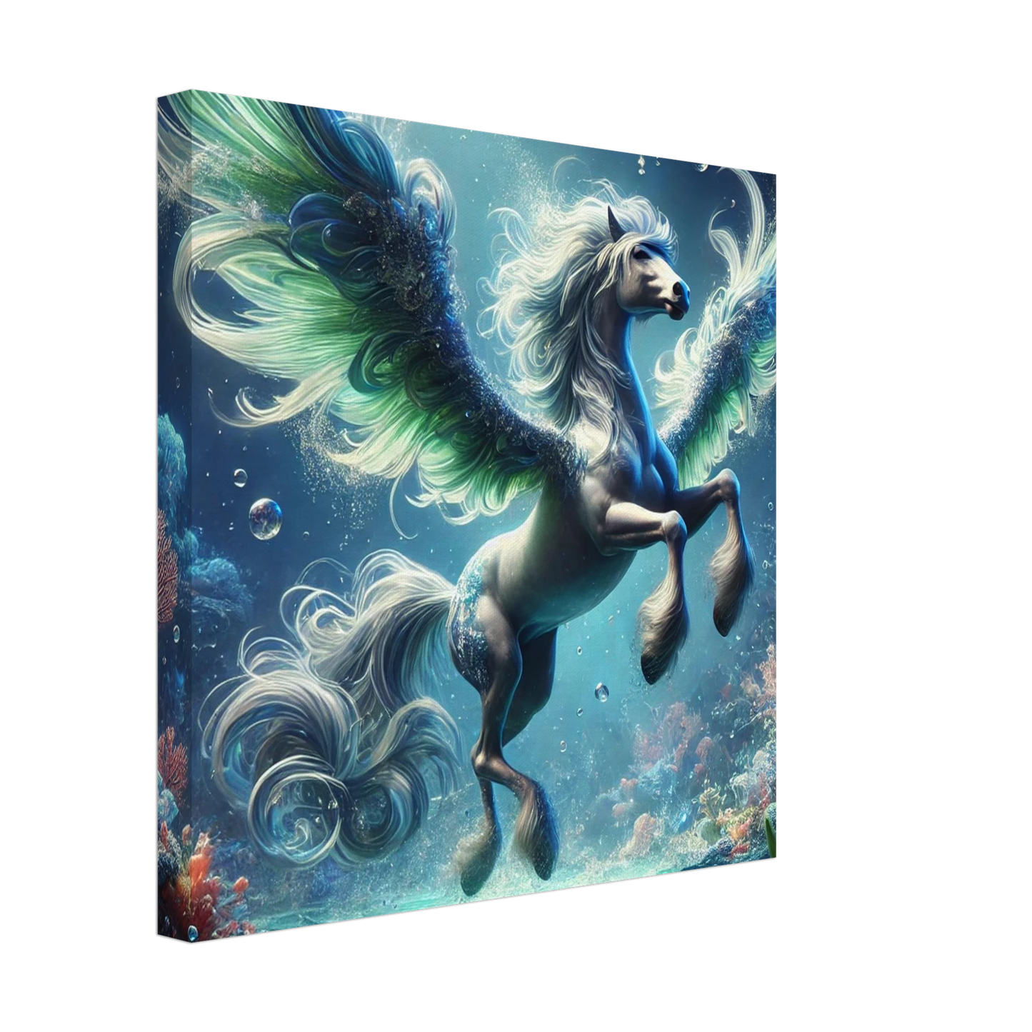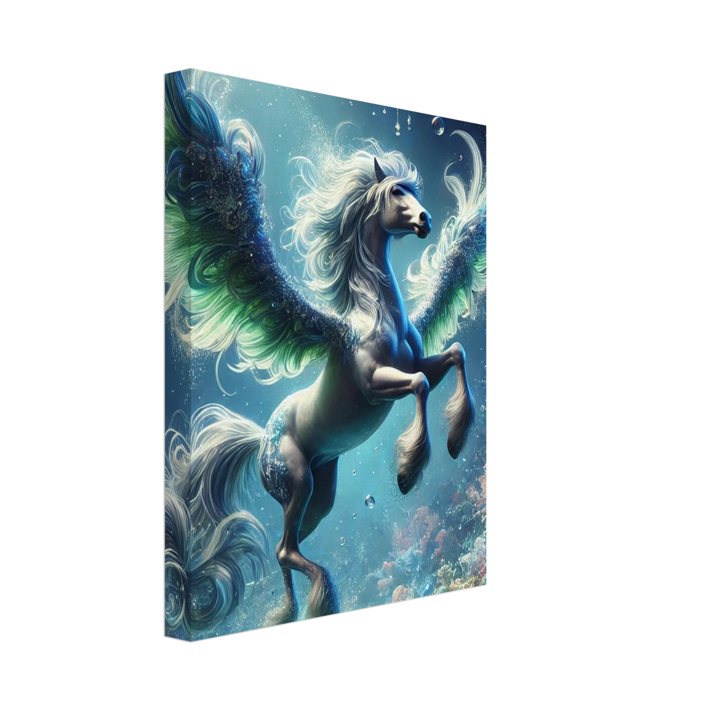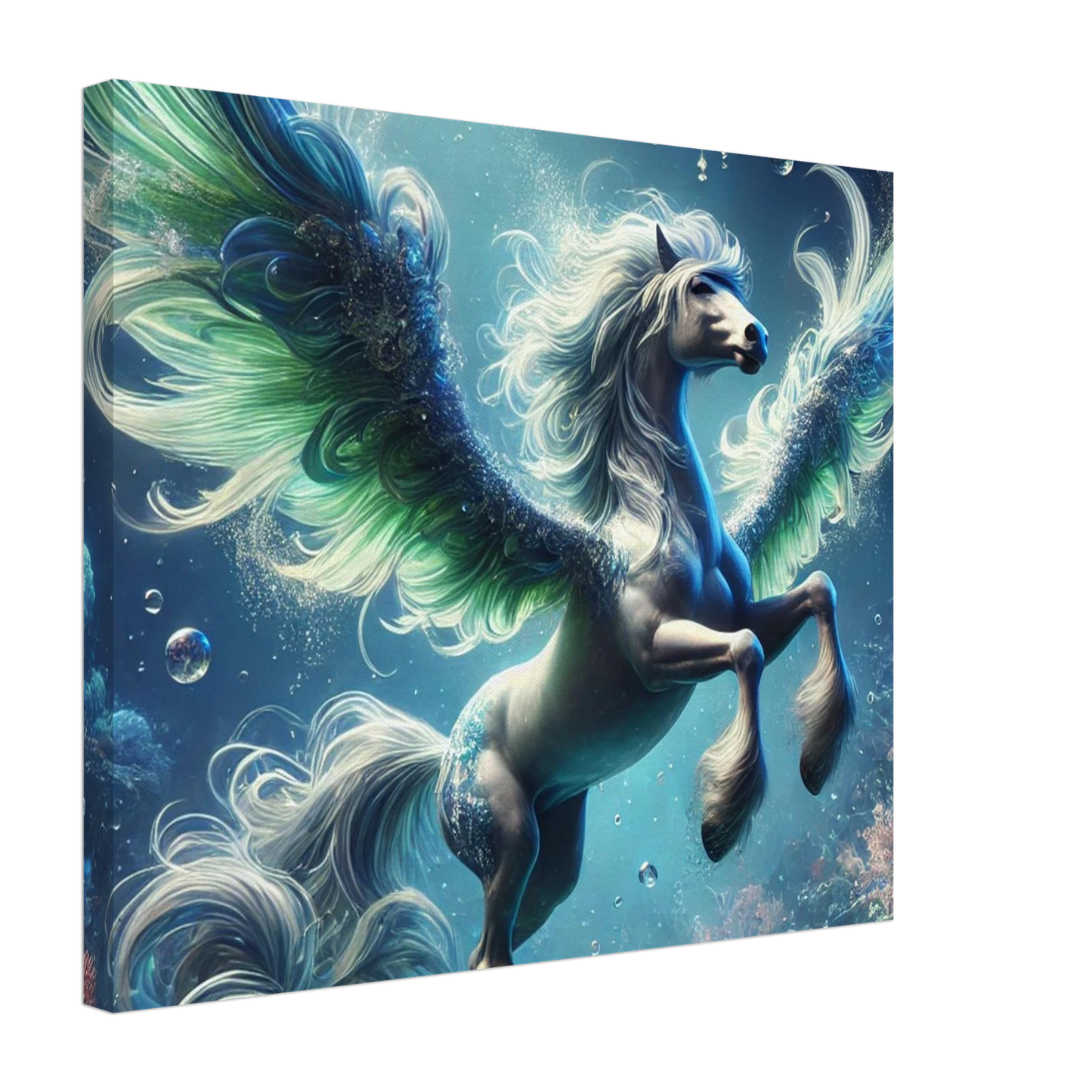 Mit schimmerndem Fell und kraftvollen Flügeln gleitet Nerion durch die Tiefen des Ozeans – geboren aus der Träne eines Seesterns und dem Atem der Meeresgöttin. Er ist der Hüter vergessener Träume und Wächter der Tiefe. Wer ihm begegnet, spürt die Magie des Wassers – still, sanft und voller Leben.