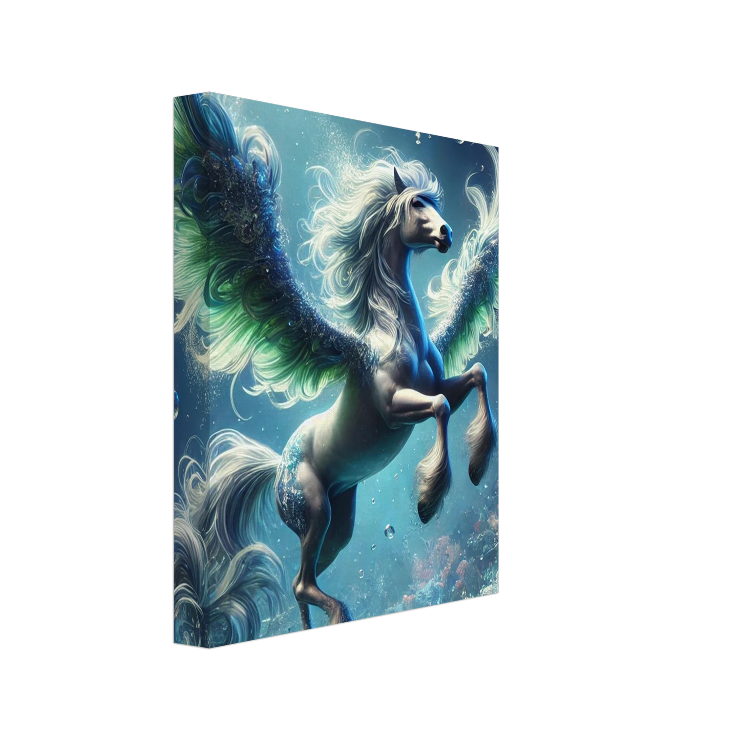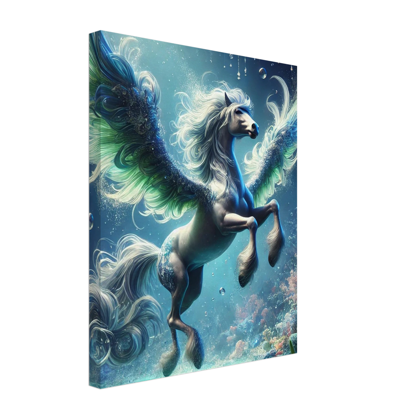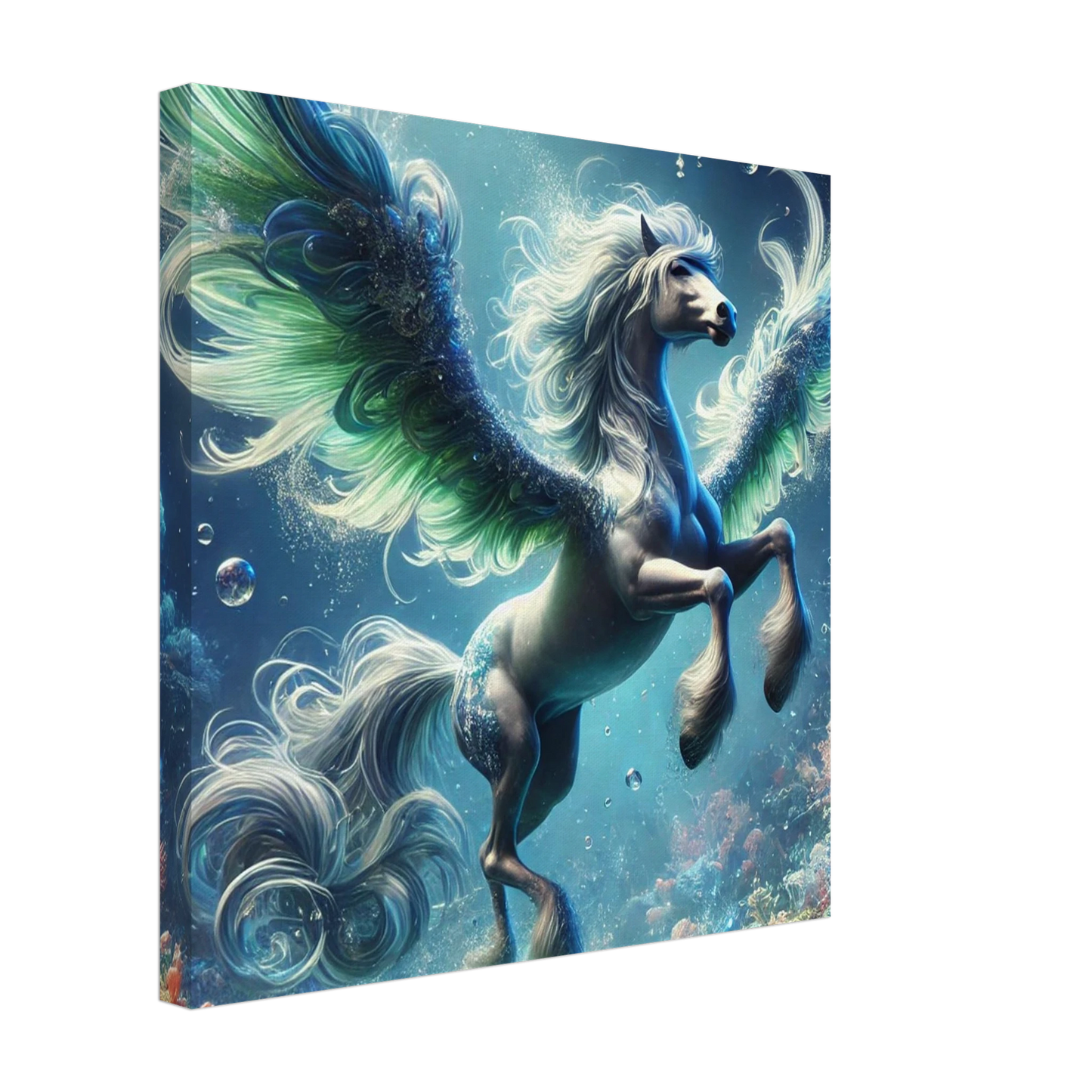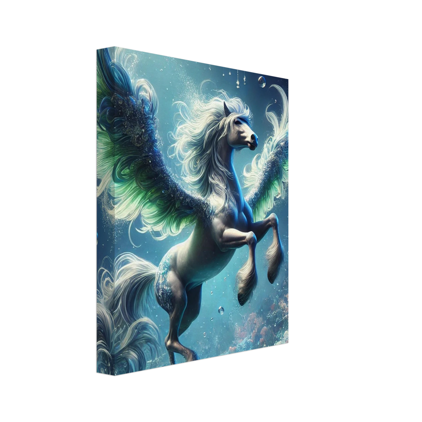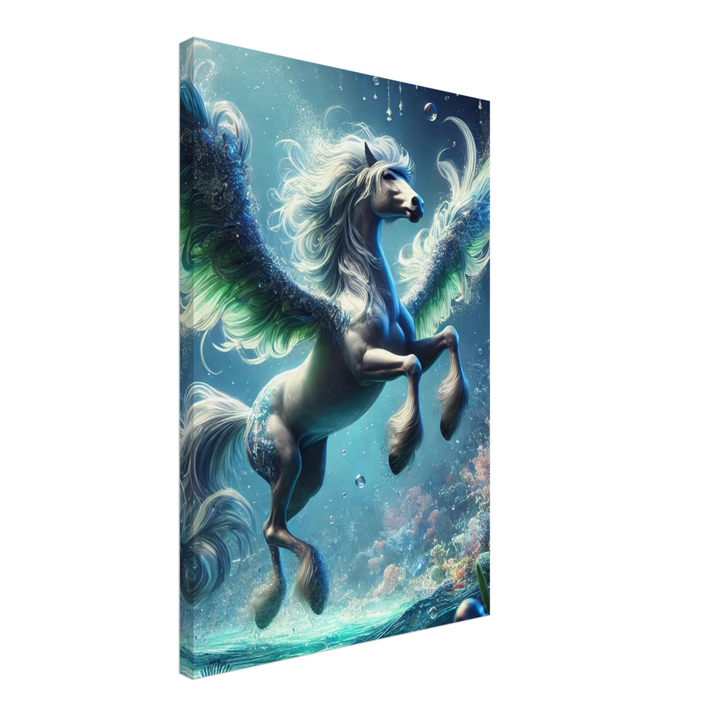 Mit schimmerndem Fell und kraftvollen Flügeln gleitet Nerion durch die Tiefen des Ozeans – geboren aus der Träne eines Seesterns und dem Atem der Meeresgöttin. Er ist der Hüter vergessener Träume und Wächter der Tiefe. Wer ihm begegnet, spürt die Magie des Wassers – still, sanft und voller Leben.
