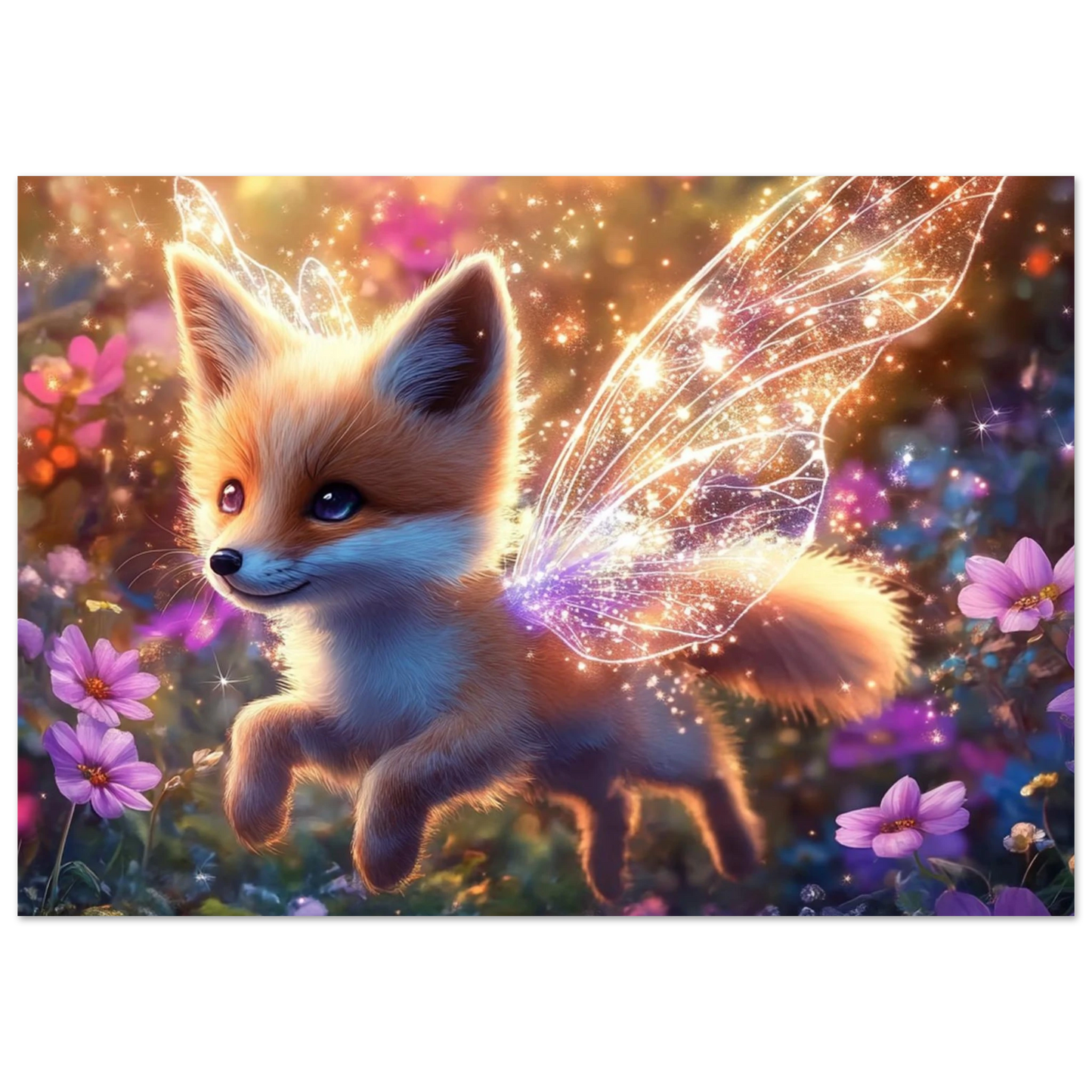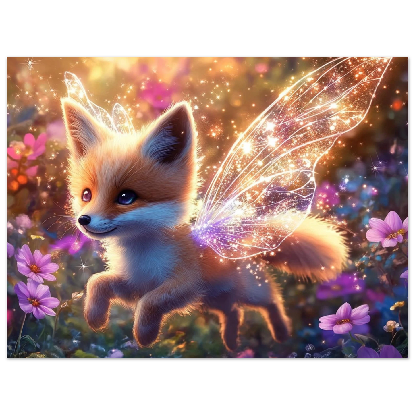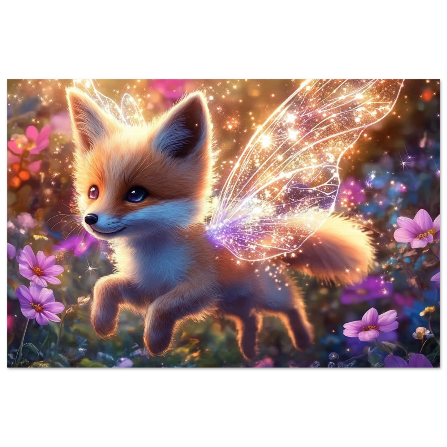 Nimmy, der kleine, leuchtende Fuchs mit funkelnden Feenflügeln, lebt in einem Tal voller ewiger Blüten. Geboren aus einem Tropfen Morgentau und einem verlorenen Lachen, bringt er Hoffnung in die Herzen derer, die ihn sehen – sanft, verspielt und voller Licht.