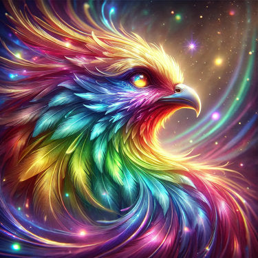 Niora ist ein majestätischer Vogel mit schillerndem Regenbogengefieder, das in jeder Bewegung in leuchtenden Farben fließt. Sie trägt das Licht der Sterne in ihren Augen und ist eine Verkörperung von Hoffnung, Vielfalt und strahlender Schönheit.