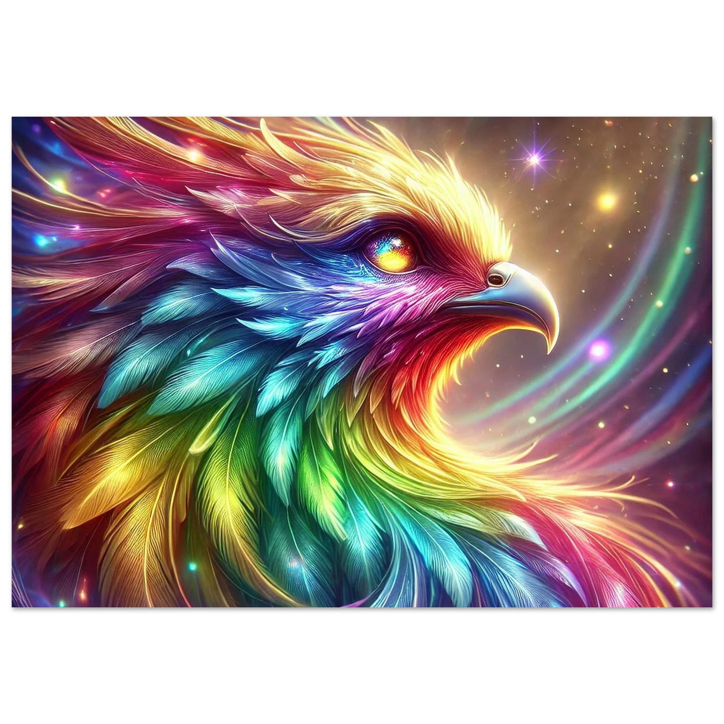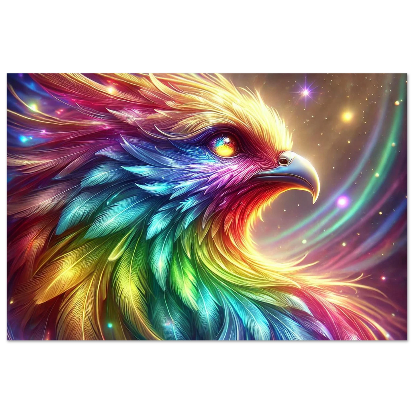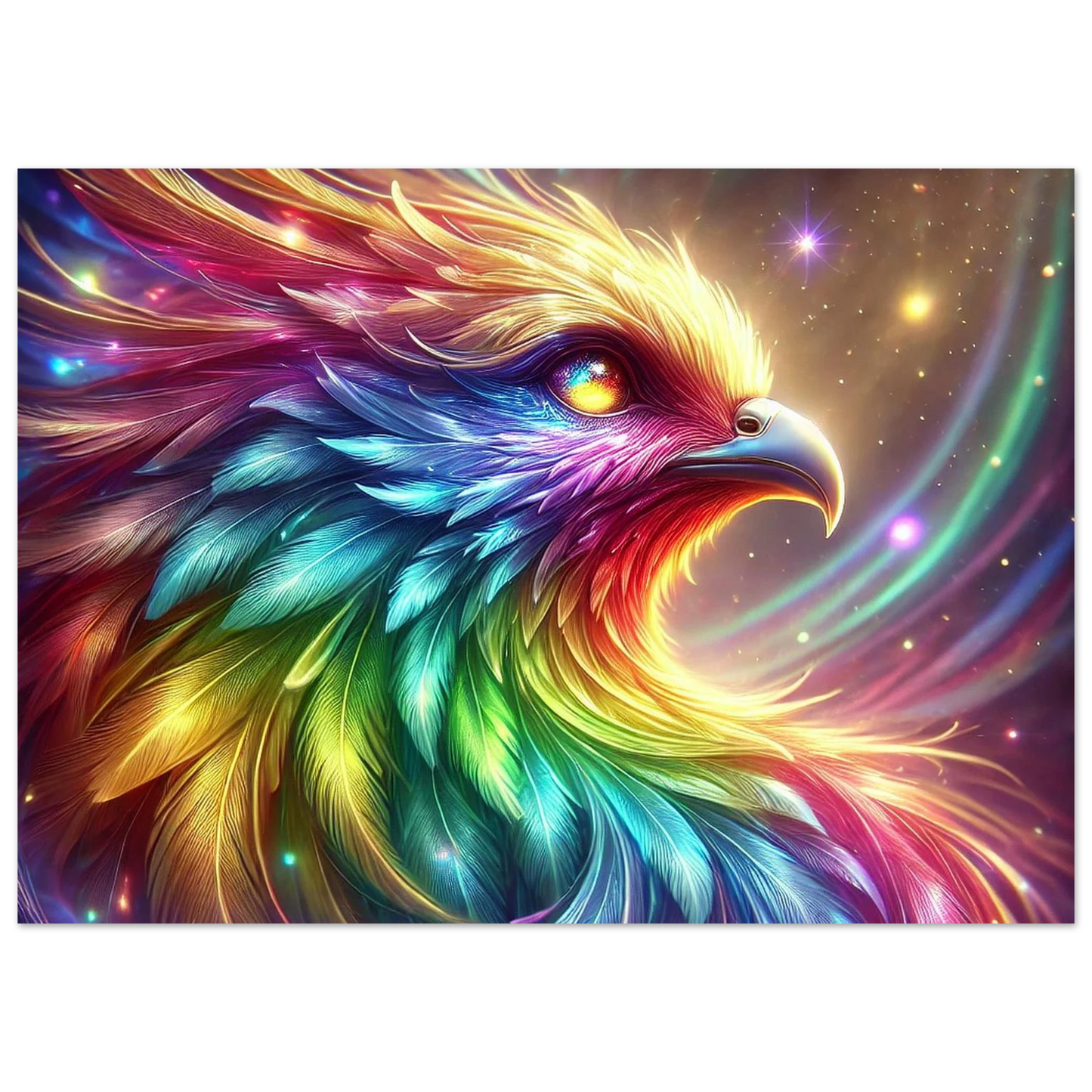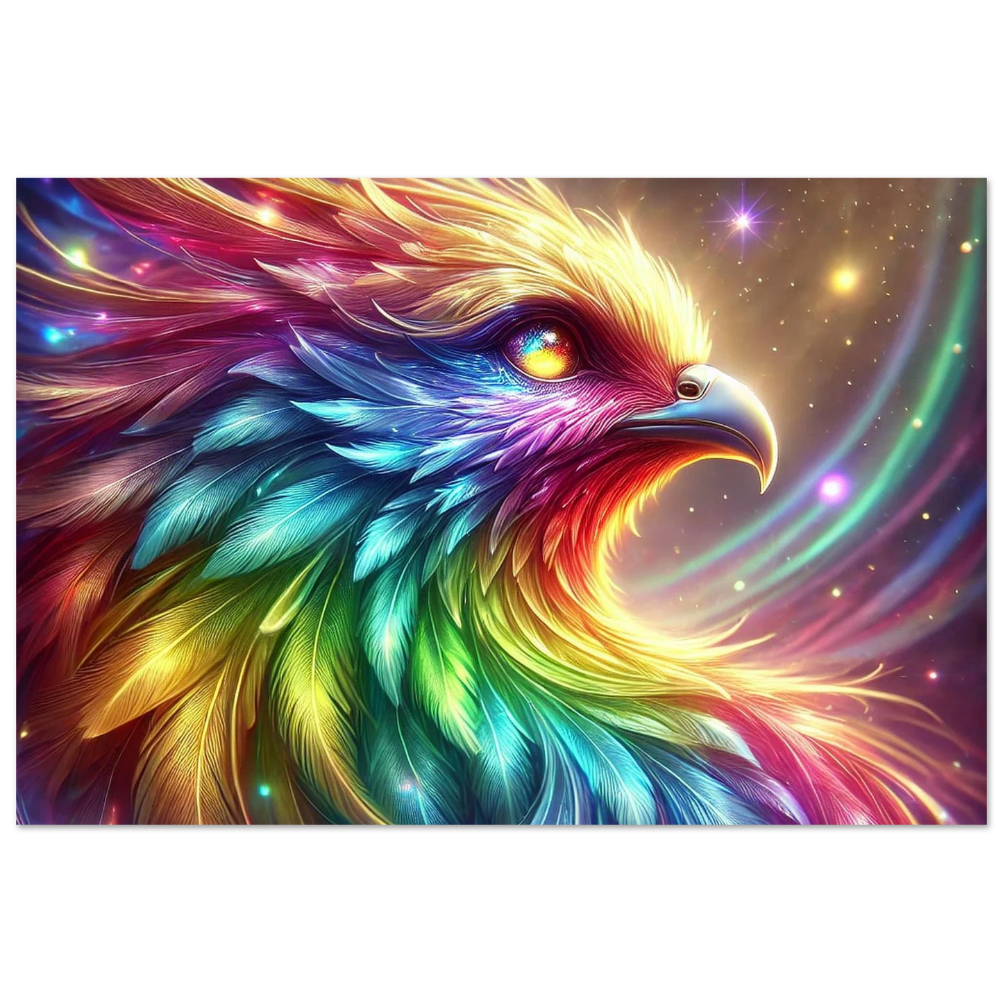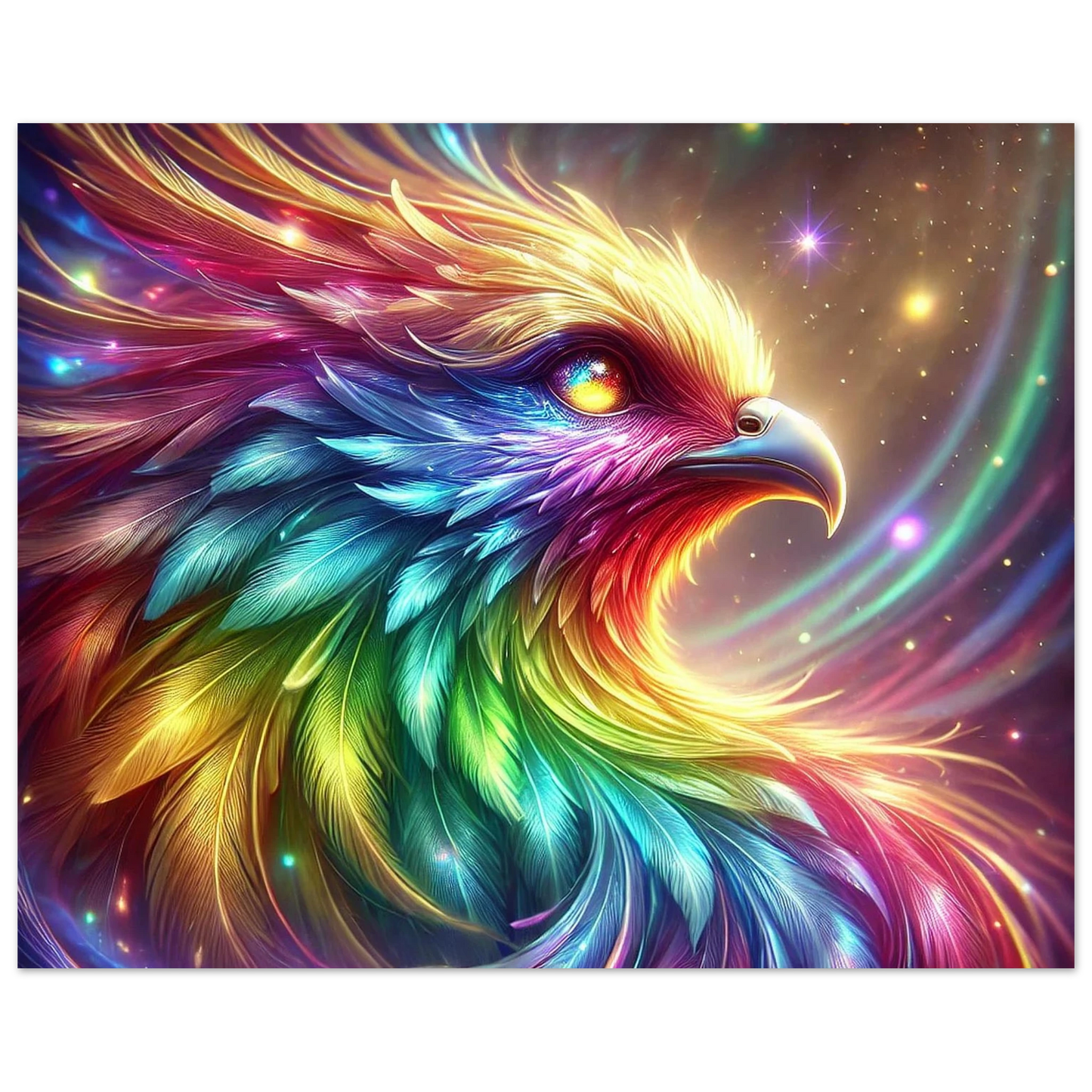 Geboren aus Regenbogenlicht und Sternenstaub, ist Niora mehr als nur ein Vogel – sie ist ein Symbol für Hoffnung, Vielfalt und das stille Leuchten in uns allen. Ihre Farben tanzen durch den Himmel, und ihr Blick erinnert daran, dass wahre Schönheit durch Unterschiede entsteht.