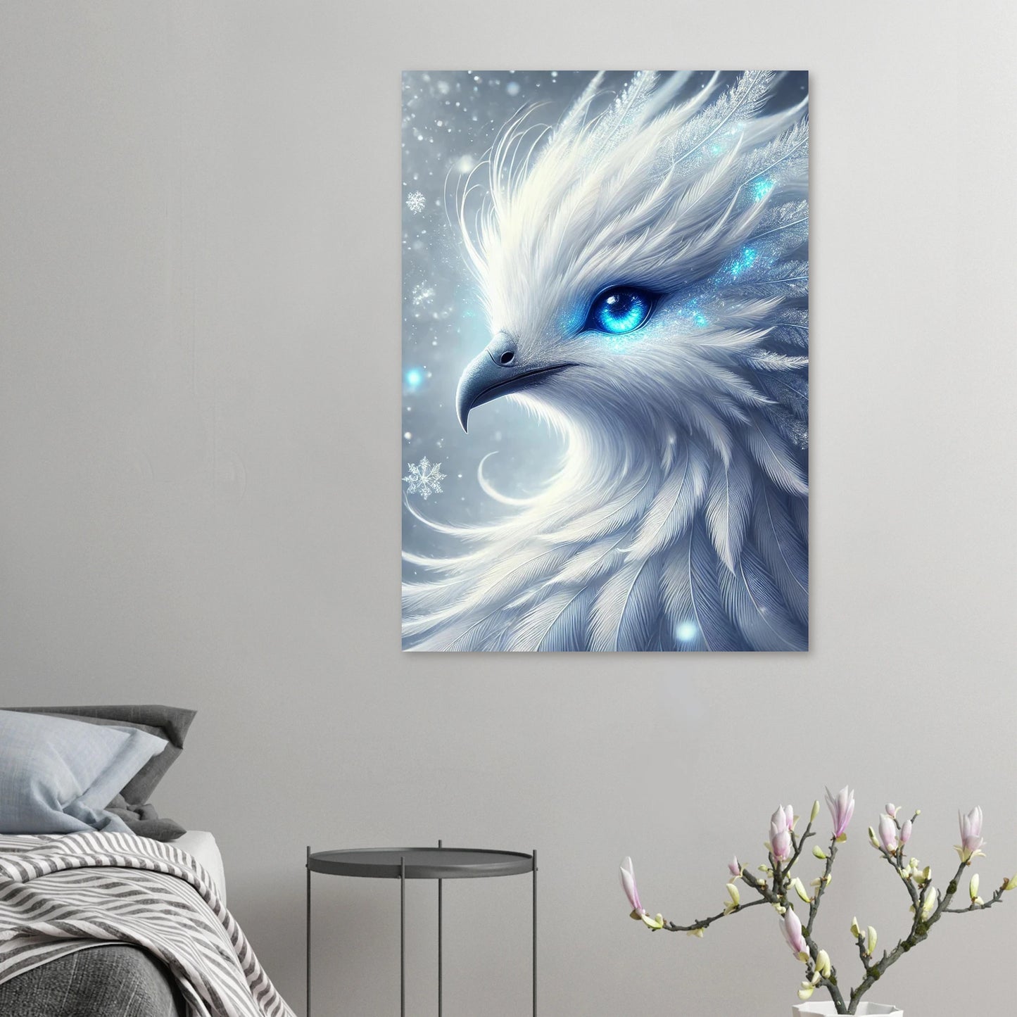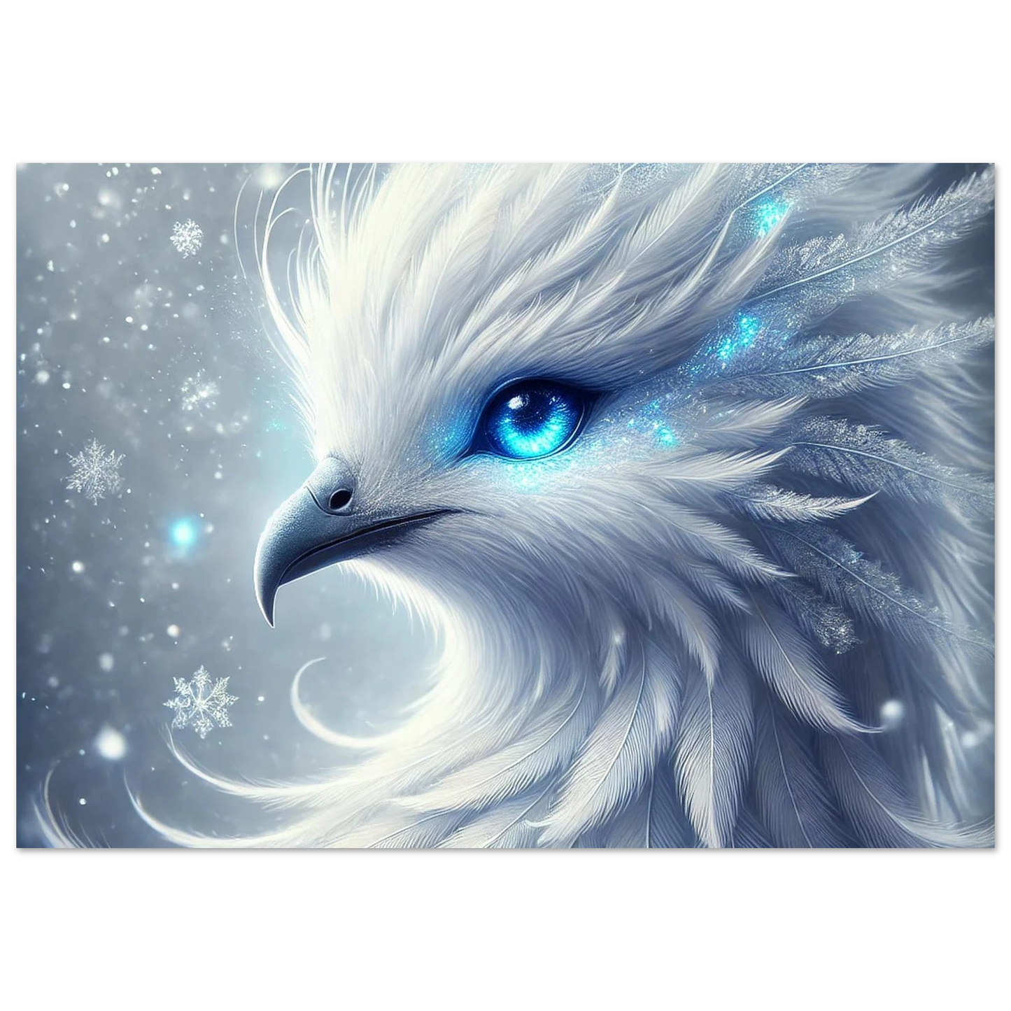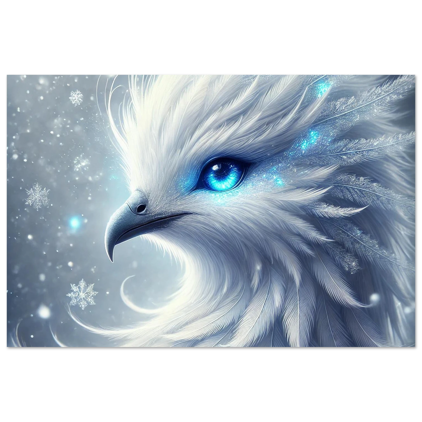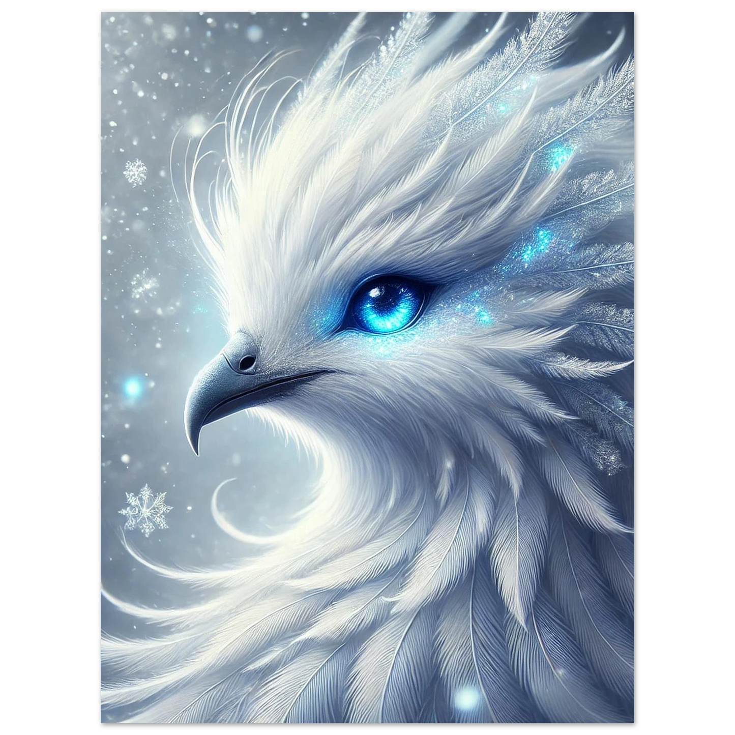 In den stillsten Stunden des Winters, wenn die Welt im Atem des Nordwinds verharrt, erscheint Nivara – eine Wesenheit aus kristallisiertem Licht und gefrorenem Traum. Ihre eisweißen Federn und leuchtenden Augen strahlen keine Wärme aus – sondern eine tiefgreifende Ruhe, Klarheit und stille Kraft.