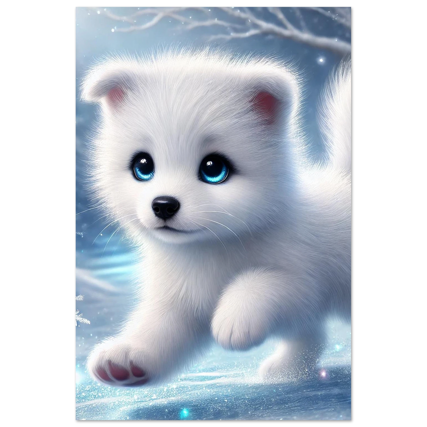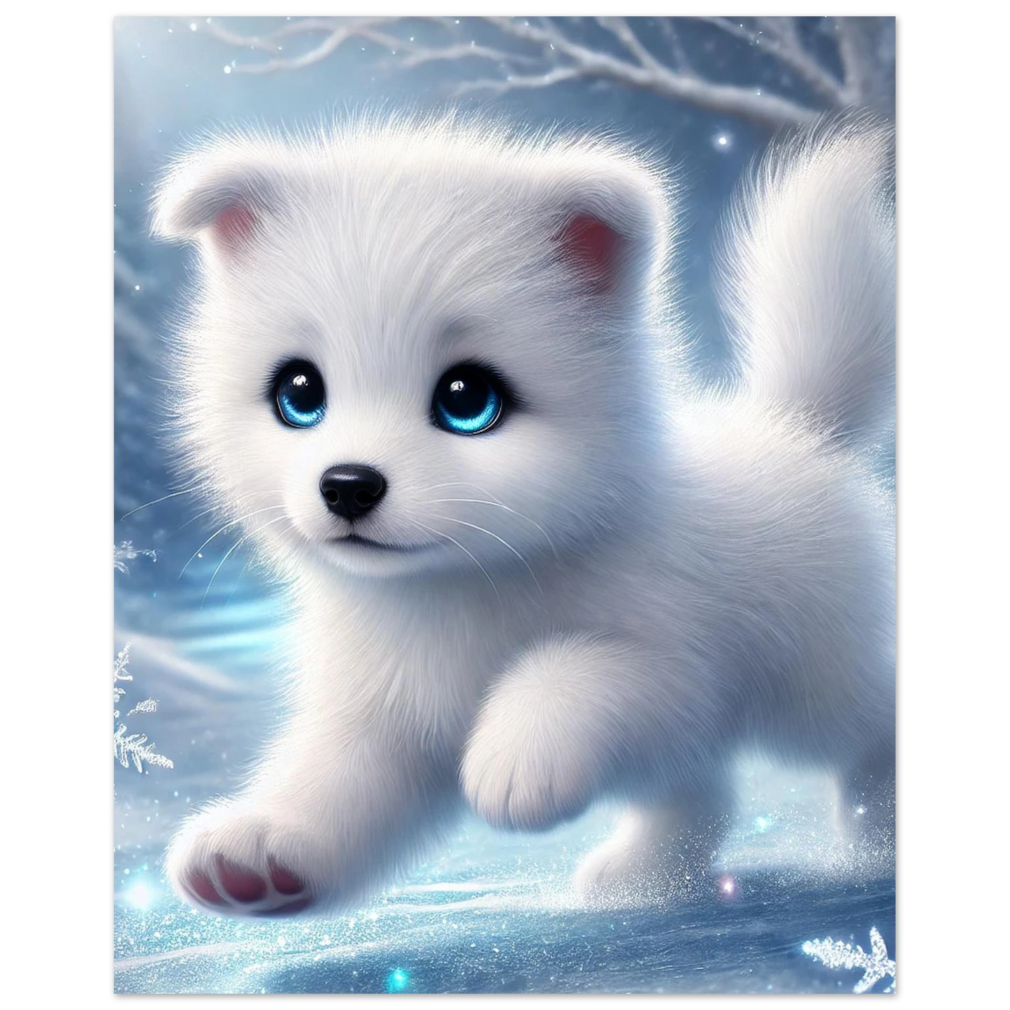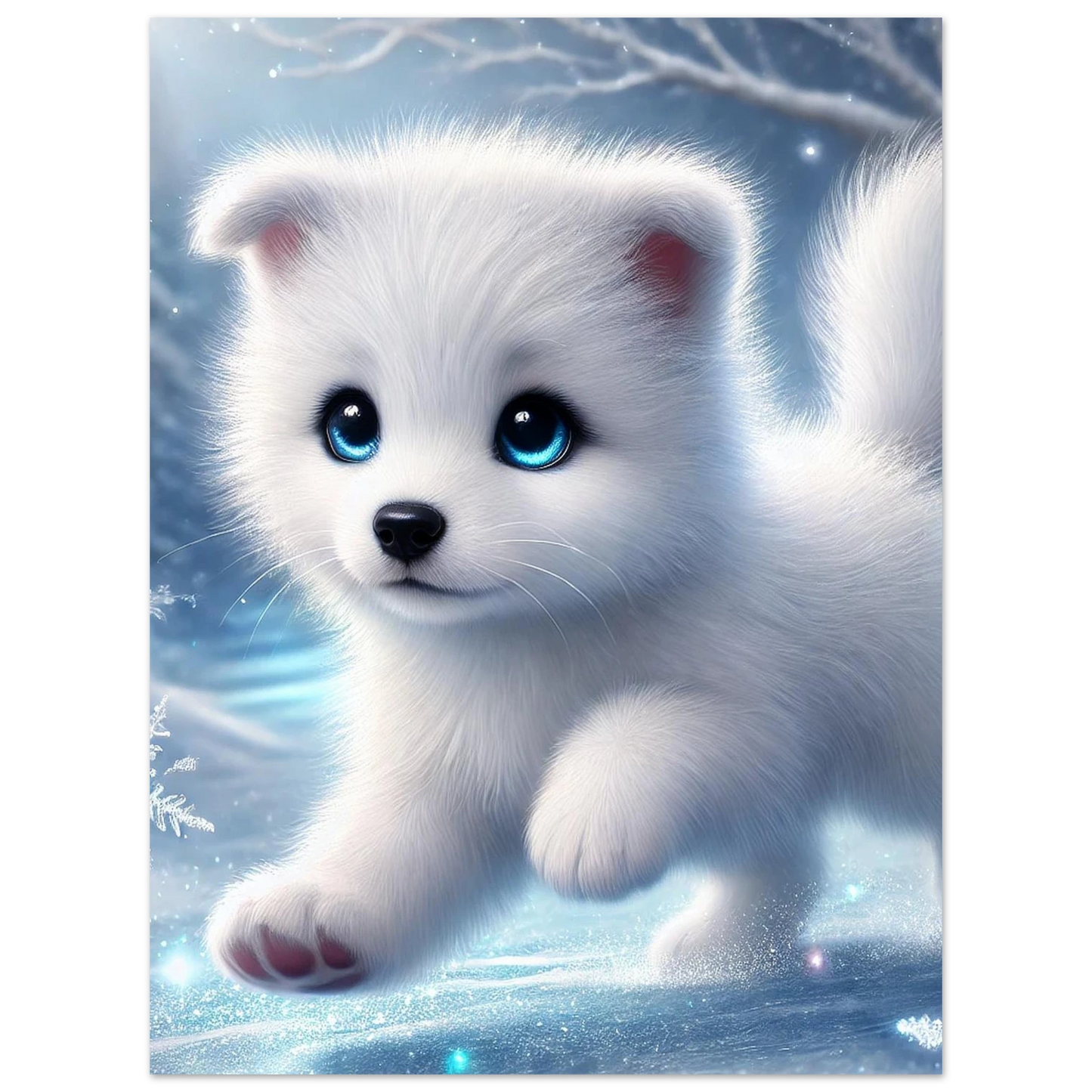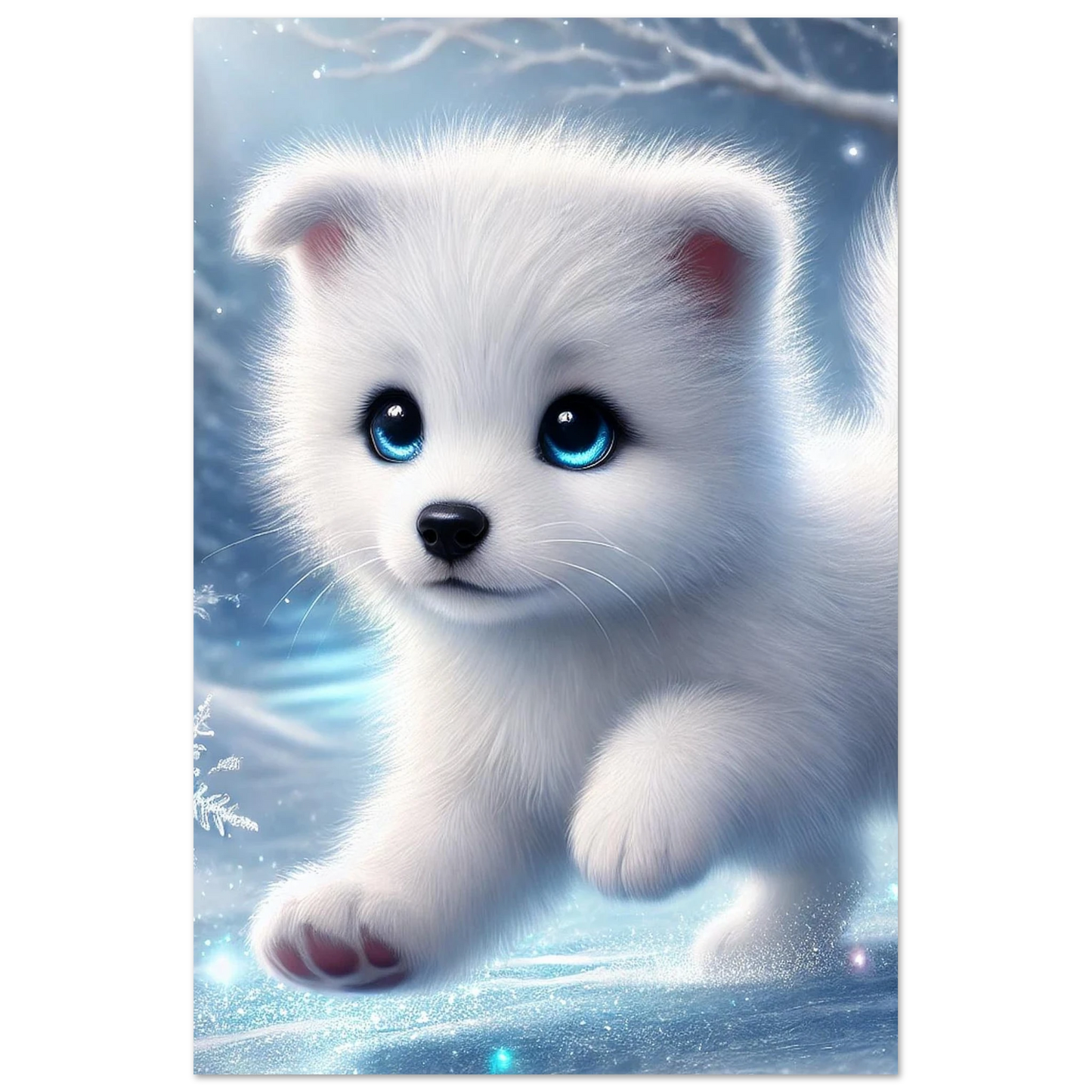 Jenseits der bekannten Wege, in einem Tal aus Licht und Eis, lebt Nivis – ein Winterwolf mit Fell so hell wie der erste Schnee und Augen wie eingefrorene Sterne. Er ist ein stiller Hüter, ein Symbol für Reinheit und Kraft, das in der Stille des Nordlichts geboren wurde.