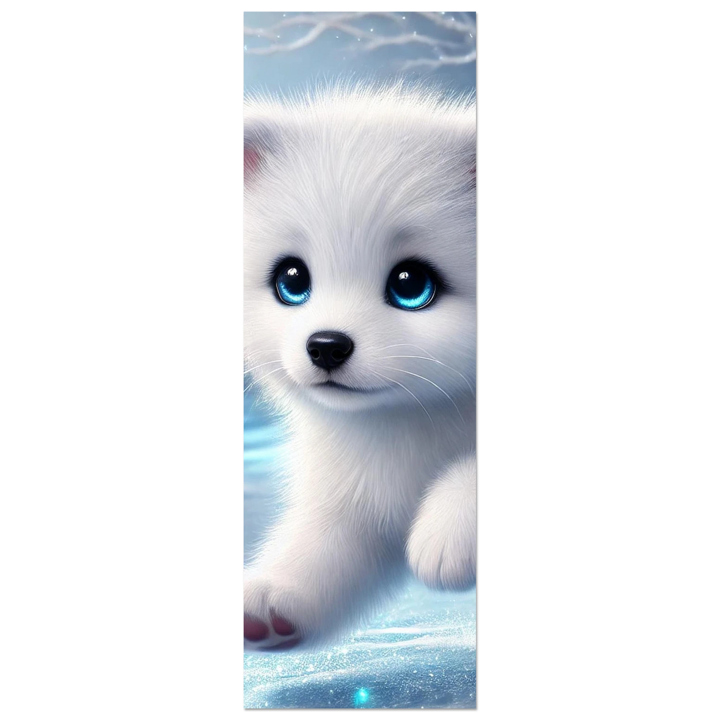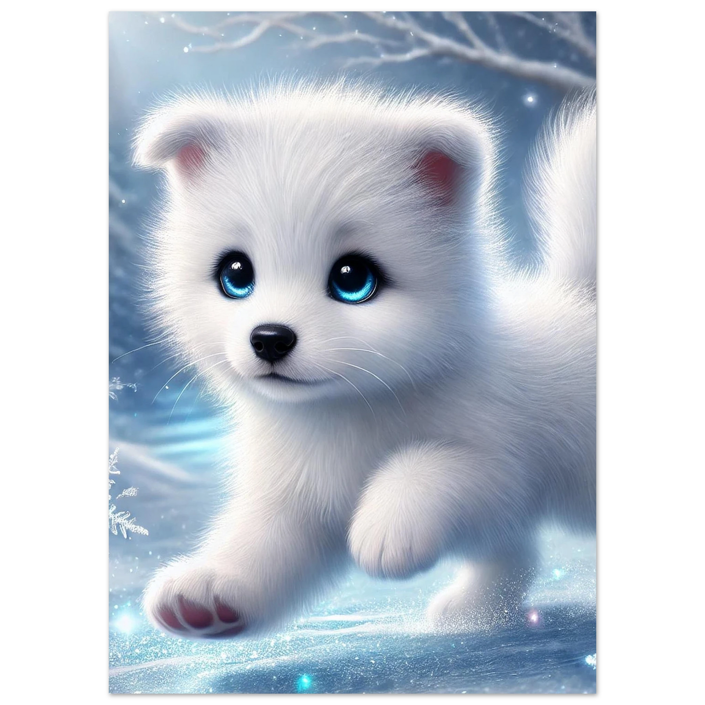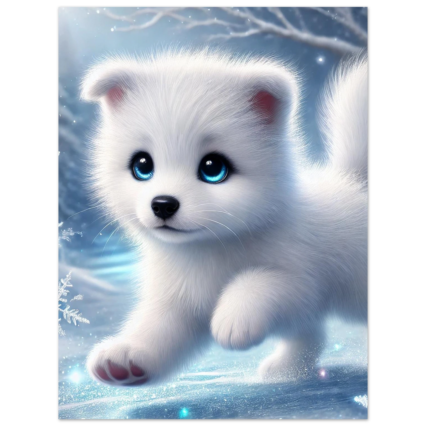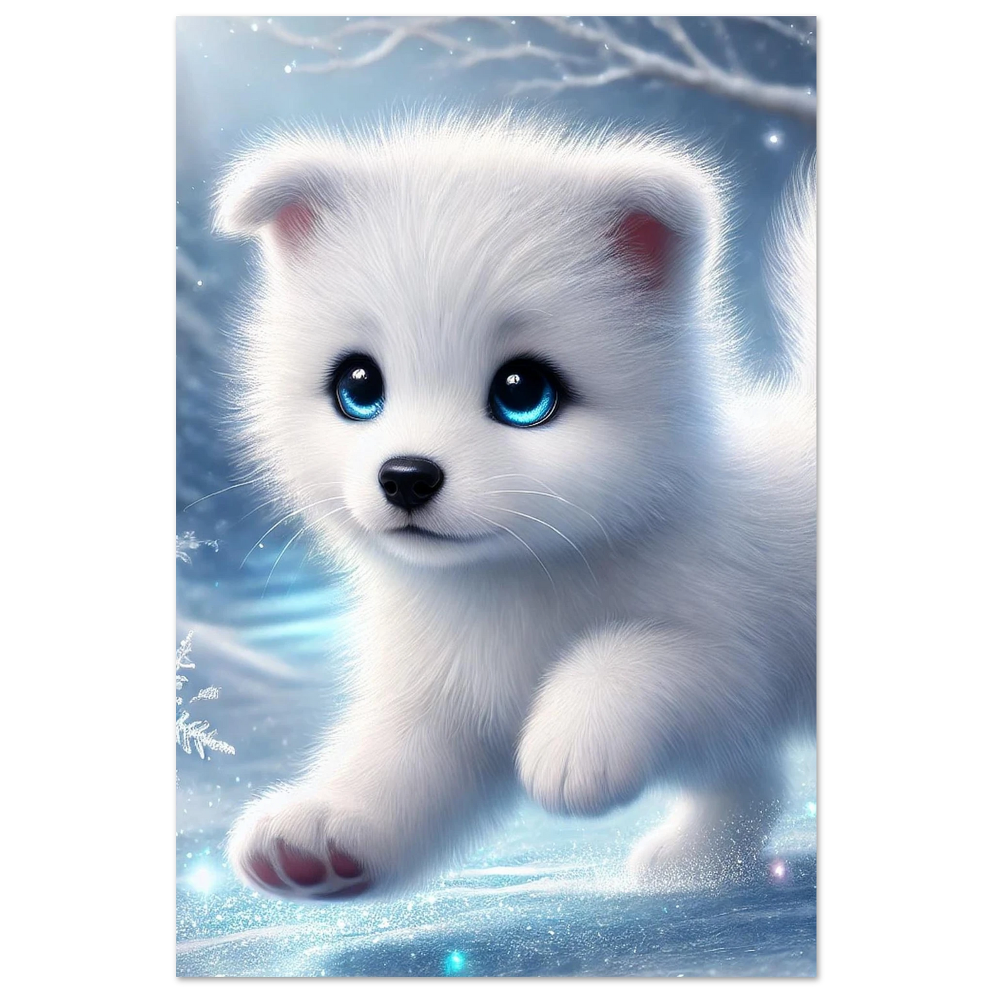 Jenseits der bekannten Wege, in einem Tal aus Licht und Eis, lebt Nivis – ein Winterwolf mit Fell so hell wie der erste Schnee und Augen wie eingefrorene Sterne. Er ist ein stiller Hüter, ein Symbol für Reinheit und Kraft, das in der Stille des Nordlichts geboren wurde.