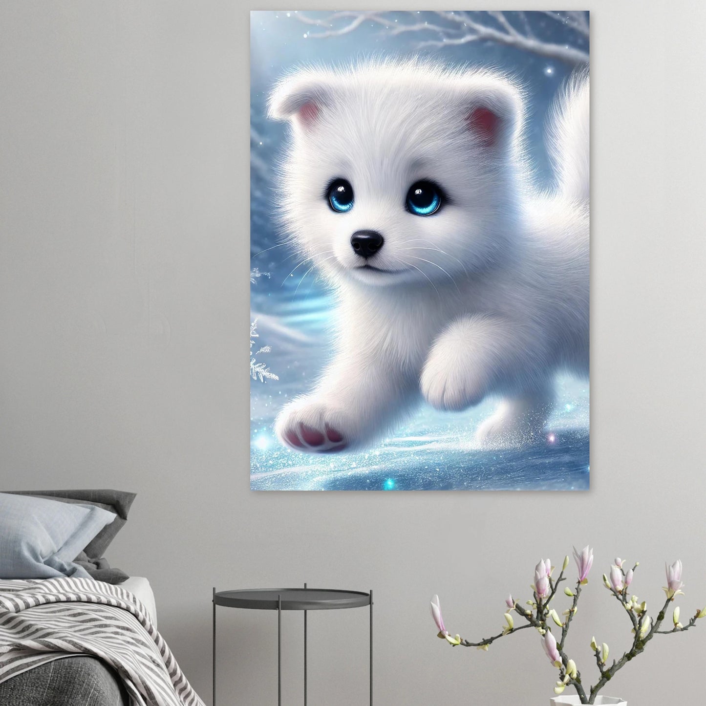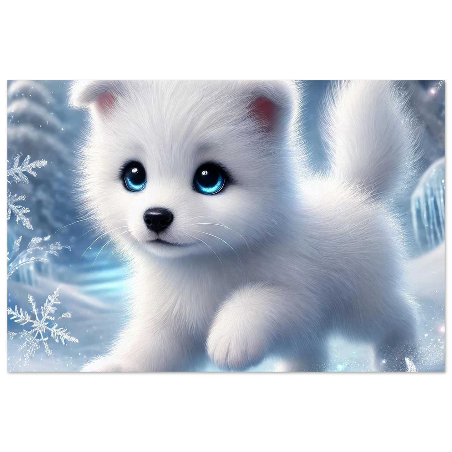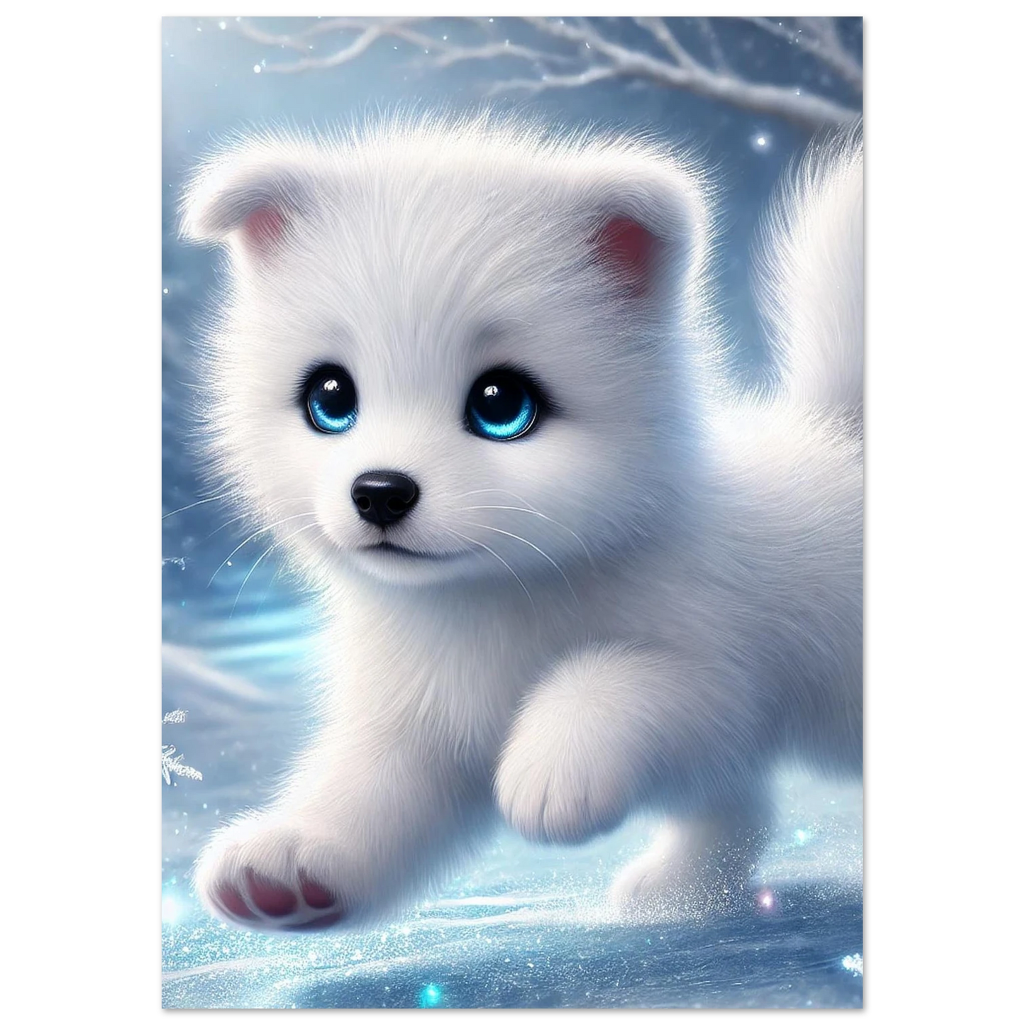 Fernab der Welt, dort wo das Nordlicht in Farben tanzt und der Schnee niemals schmilzt, wurde Nivis geboren – ein Winterwolf mit Augen wie gefrorene Sterne. Sein Fell spiegelt das kalte Licht des Nordens, seine stille Präsenz bringt Hoffnung in frostige Weiten.