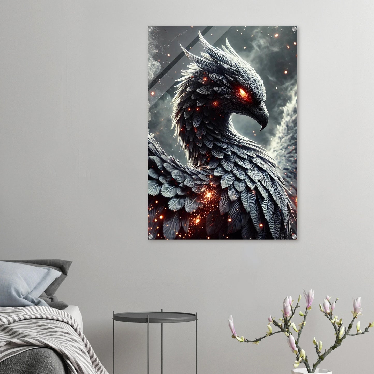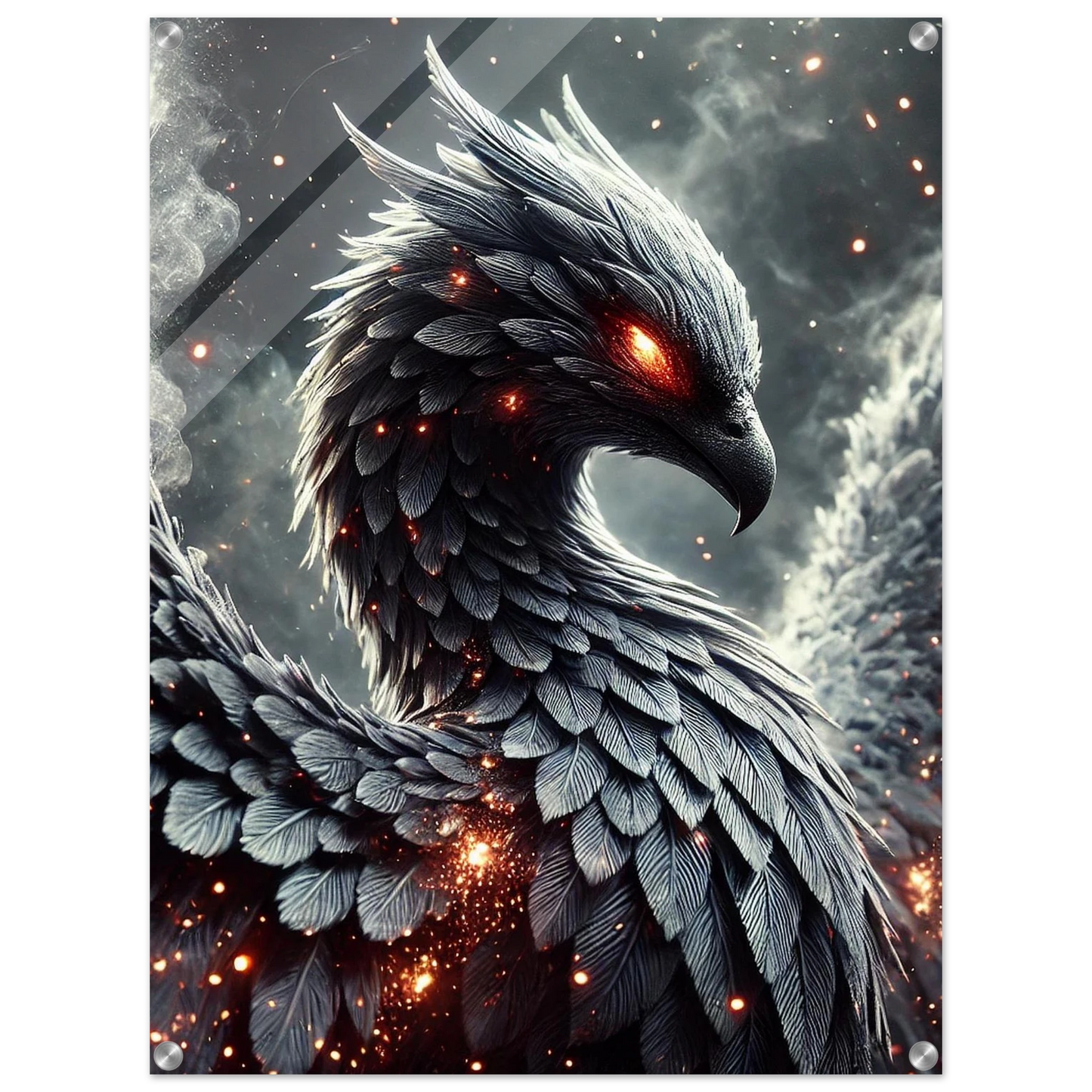 Acrylglas hebt Kontraste hervor und verleiht leuchtenden Farben eine gläserne Brillanz. Perfekt für die feurigen Adern, die Noctaryons Silhouette durchziehen – als würde Glut im Innern glimmen.