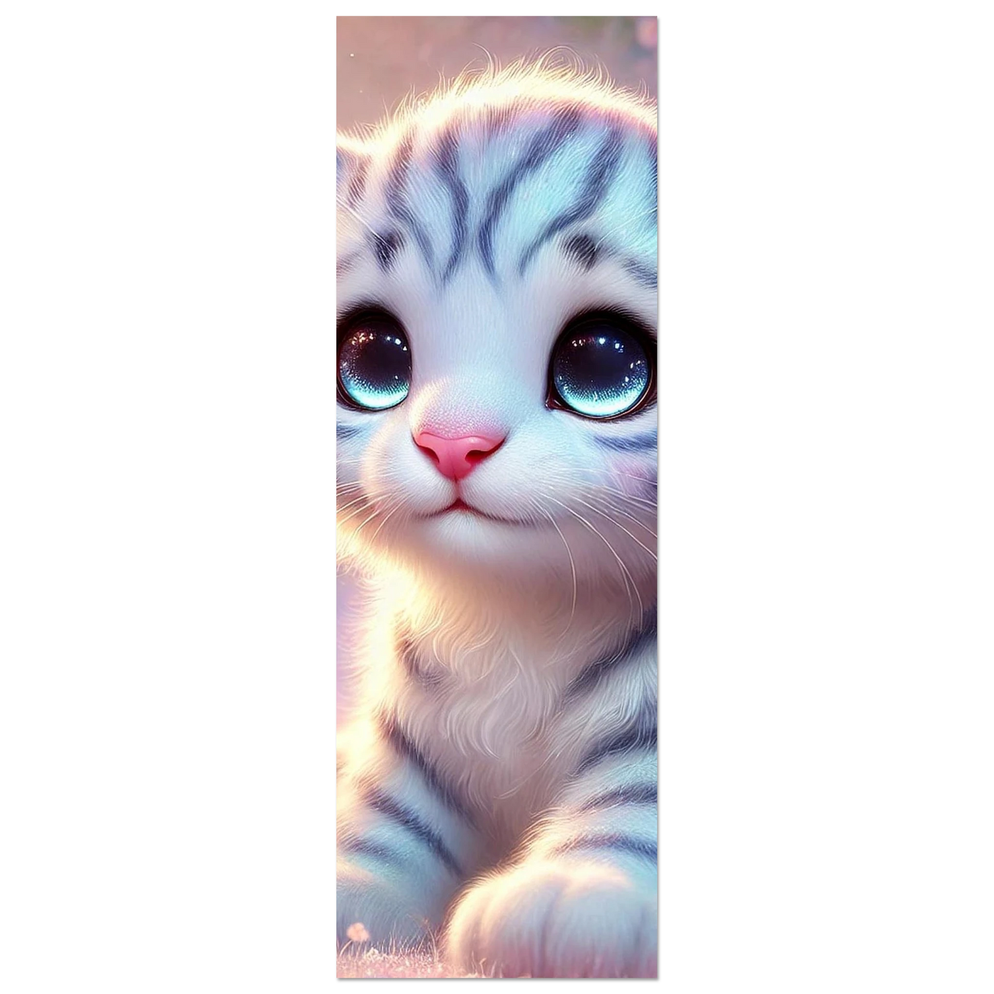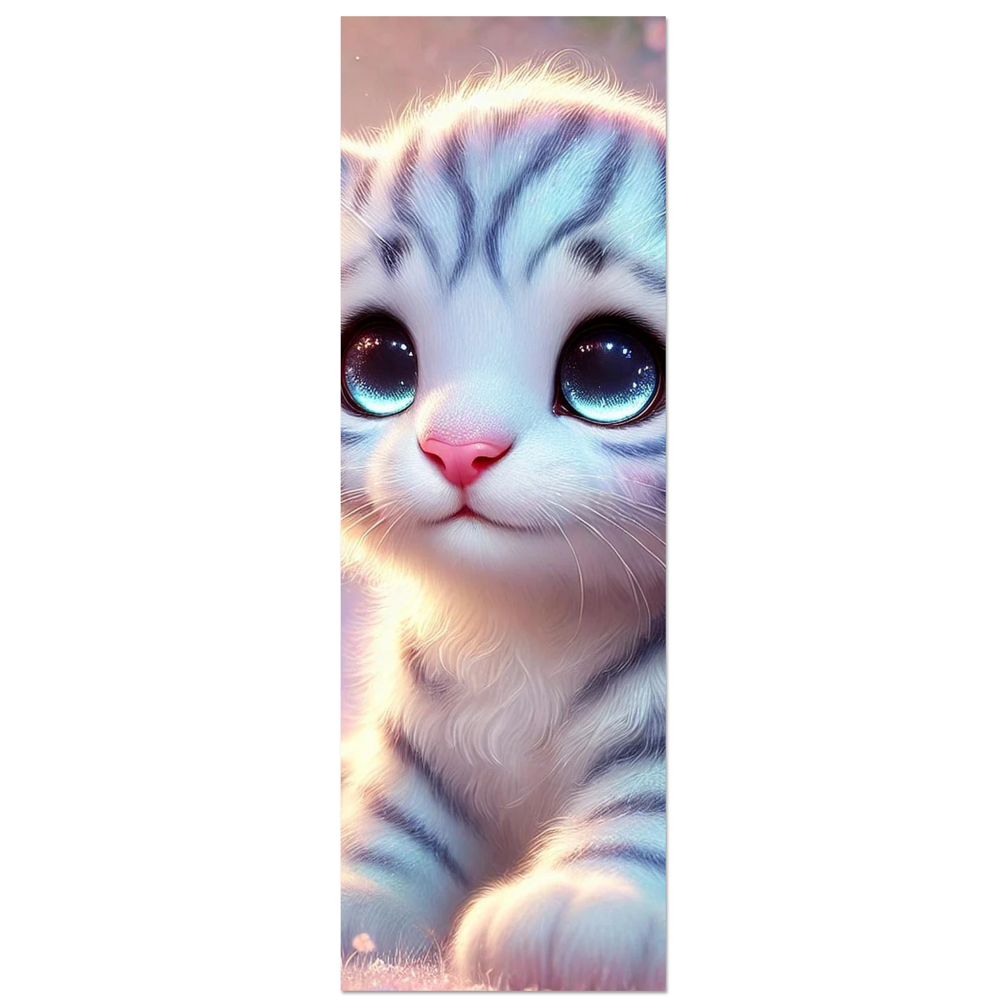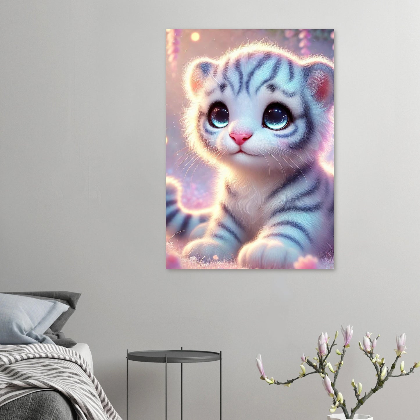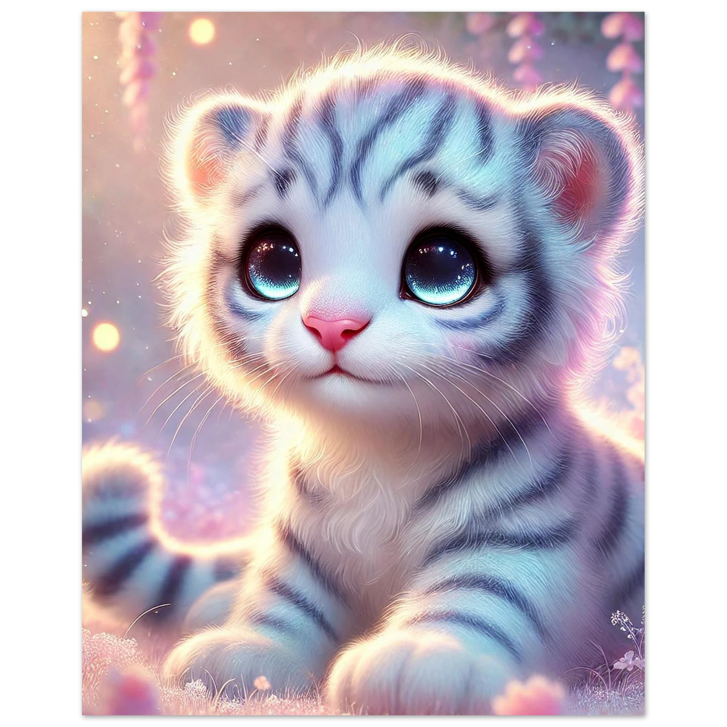 Nuala, das kleine weiße Tigerjunges mit lavendelfarbenen Streifen, ist wie ein lebendiges Frühlingsmärchen – sanft, neugierig und voller Hoffnung. Geboren in einem Tal ewiger Blüten, bringt sie mit jedem Blick Wärme und Leichtigkeit in dein Zuhause.