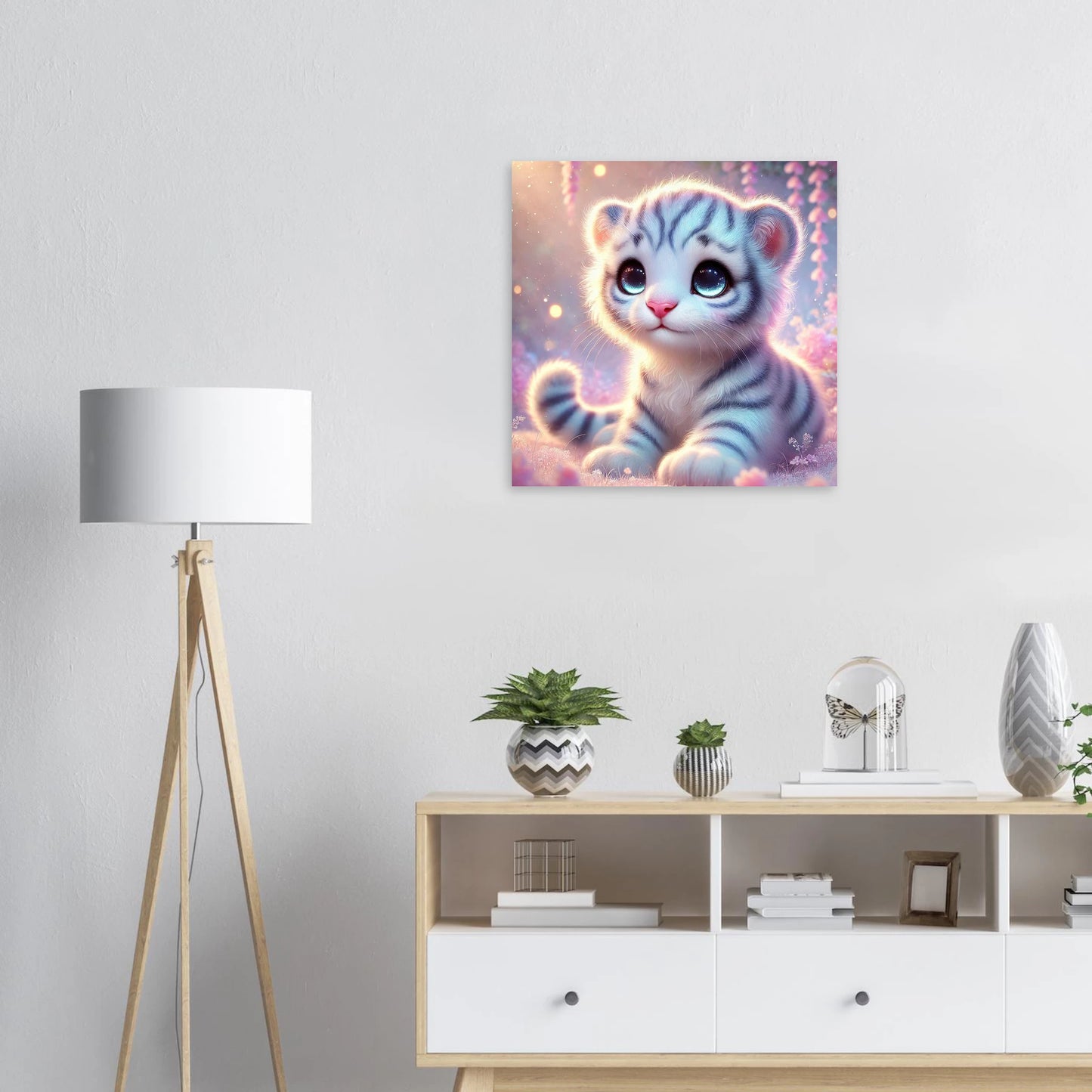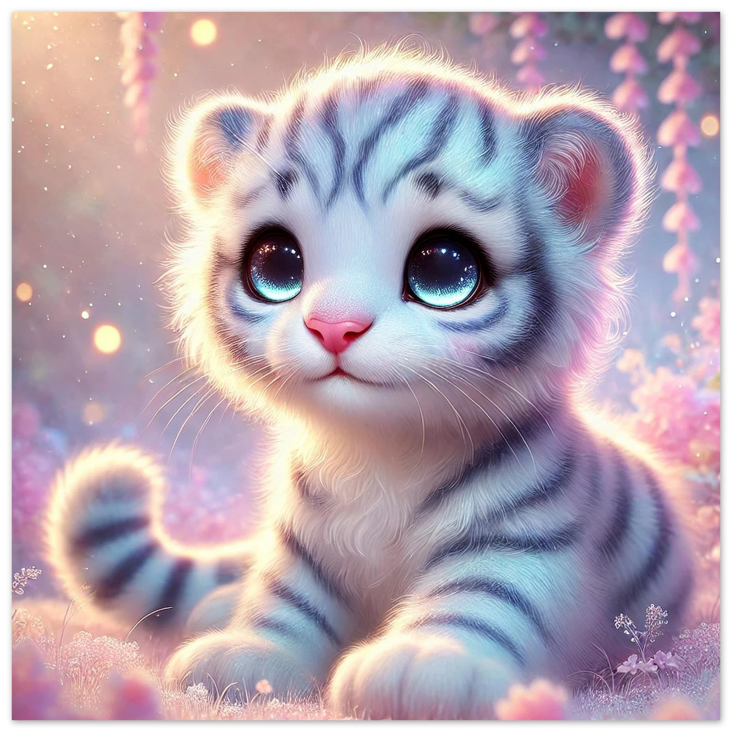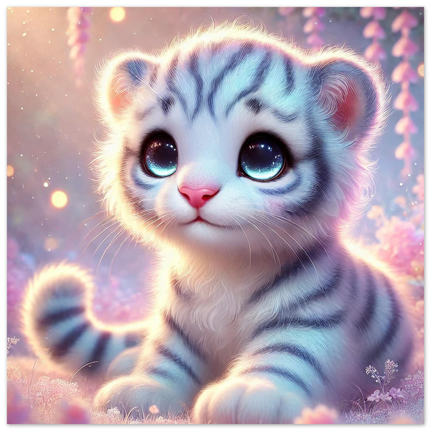 Nuala, das kleine weiße Tigerjunges mit lavendelfarbenen Streifen, ist wie ein lebendiges Frühlingsmärchen – sanft, neugierig und voller Hoffnung. Geboren in einem Tal ewiger Blüten, bringt sie mit jedem Blick Wärme und Leichtigkeit in dein Zuhause.