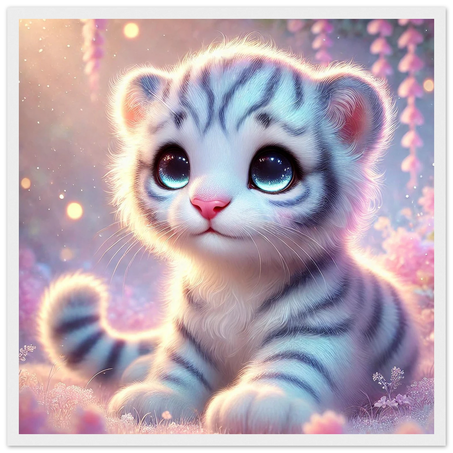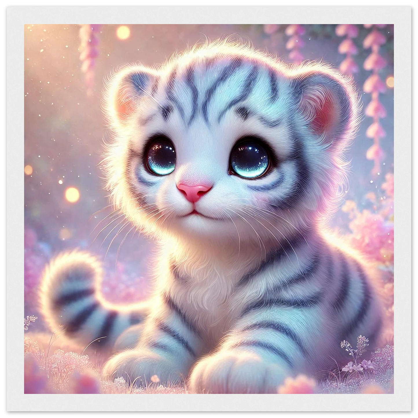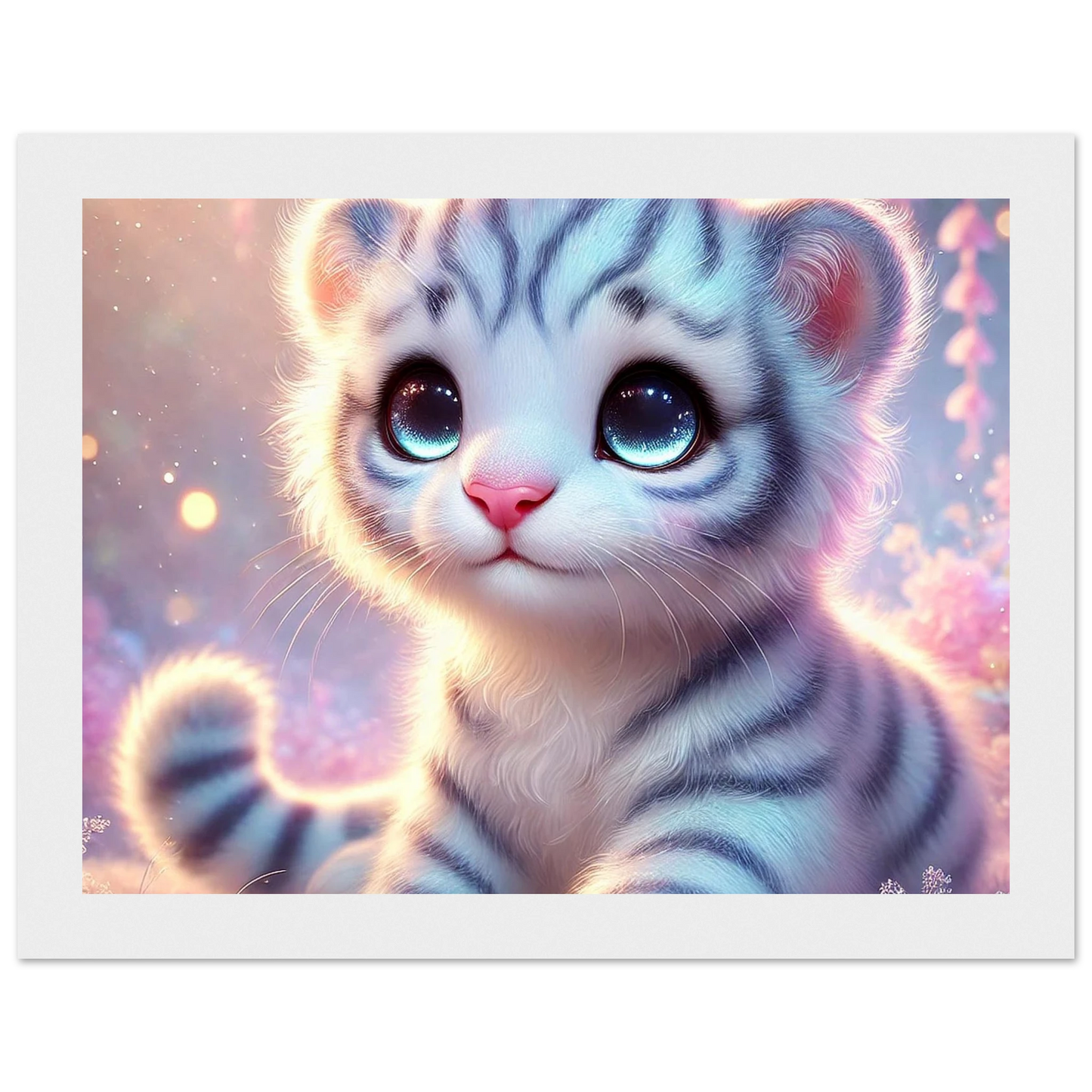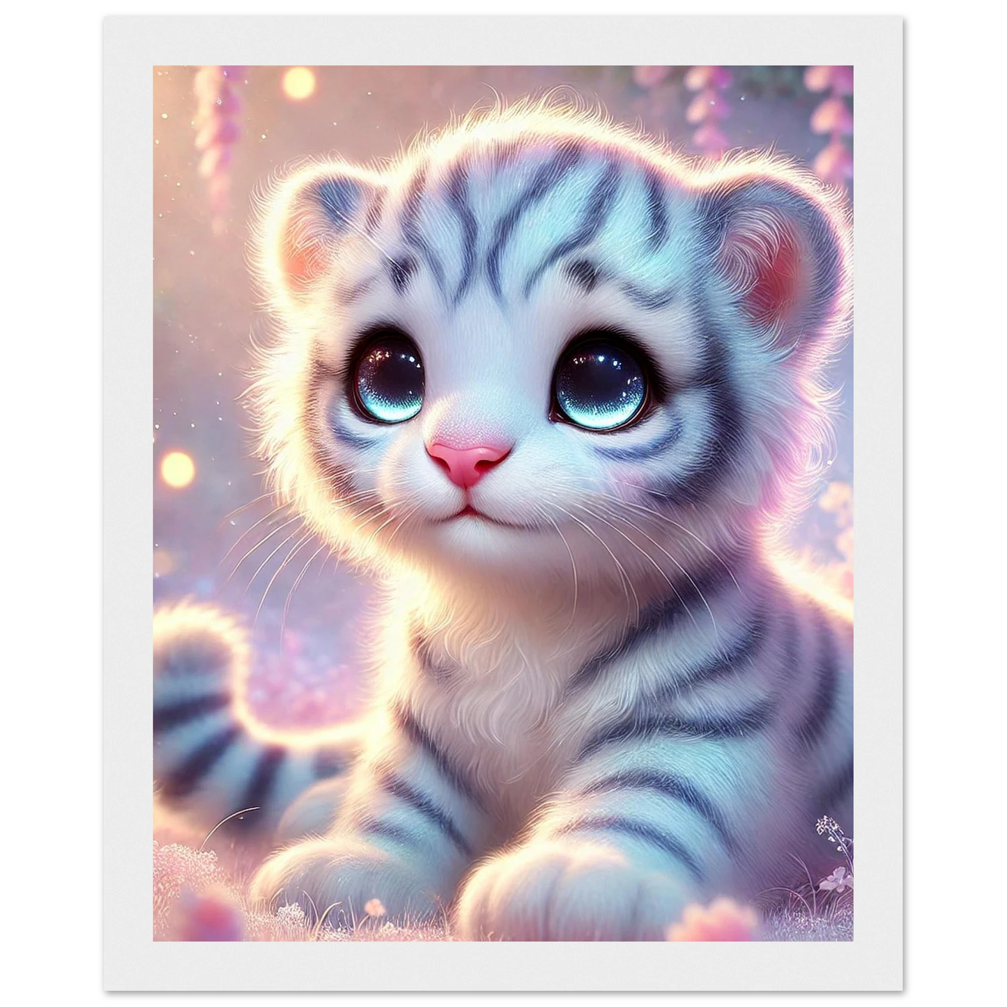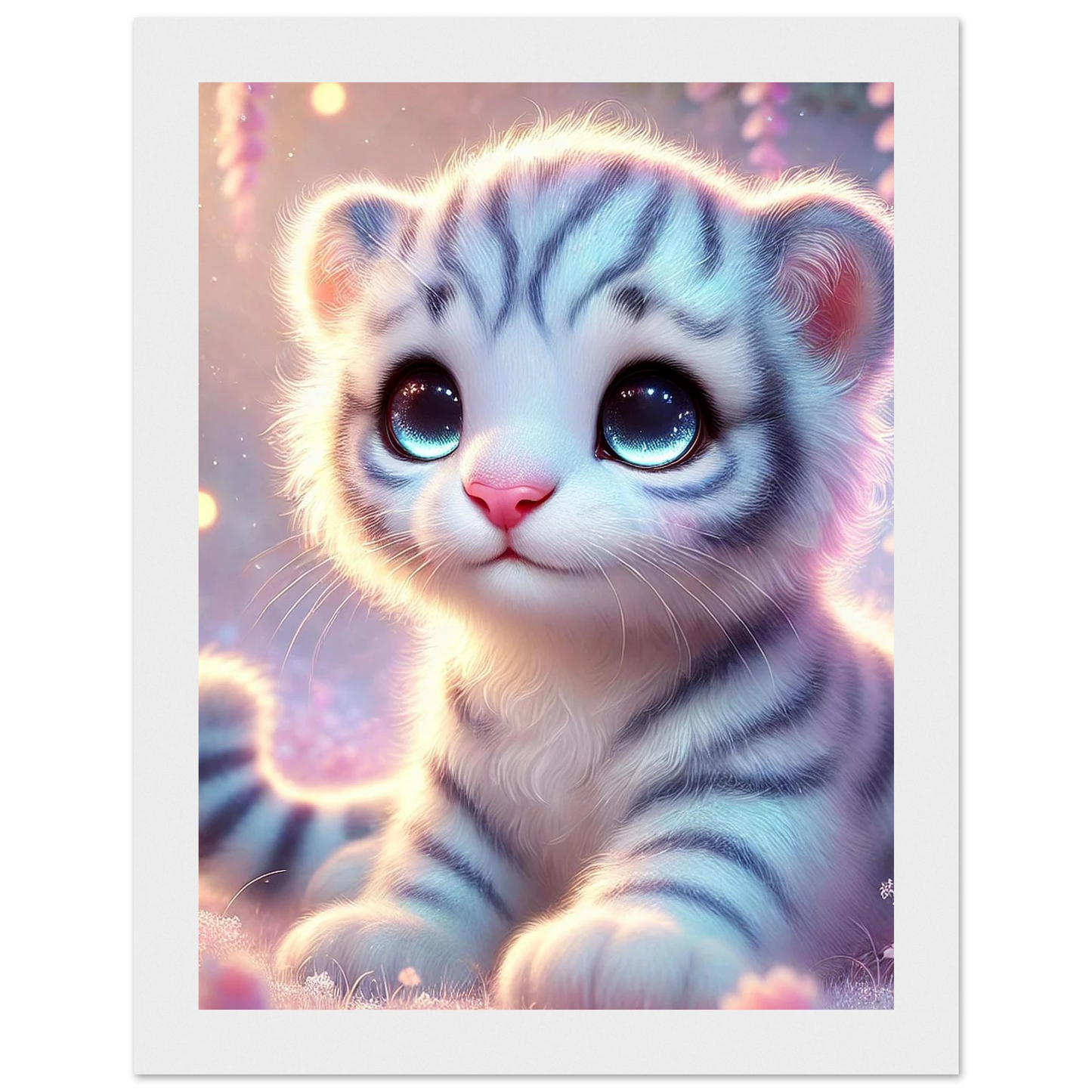 Nuala ist ein kleines, weißes Tigerjunges mit zarten, lavendelfarbenen Streifen und Augen, die wie der erste Morgentau im Frühling leuchten. Geboren in einem Tal voller ewiger Blüten, trägt sie die Leichtigkeit und das Strahlen des Neubeginns in sich. Sie schenkt Mut in dunklen Momenten und erinnert daran, dass selbst leise Pfoten Spuren voller Hoffnung hinterlassen können.