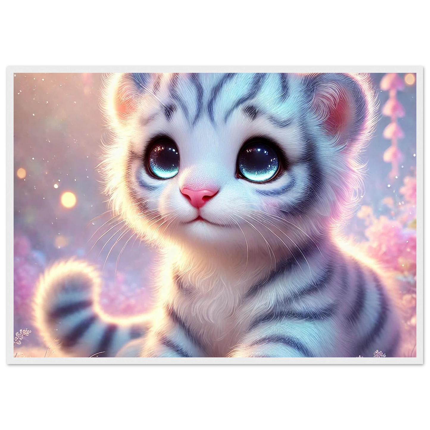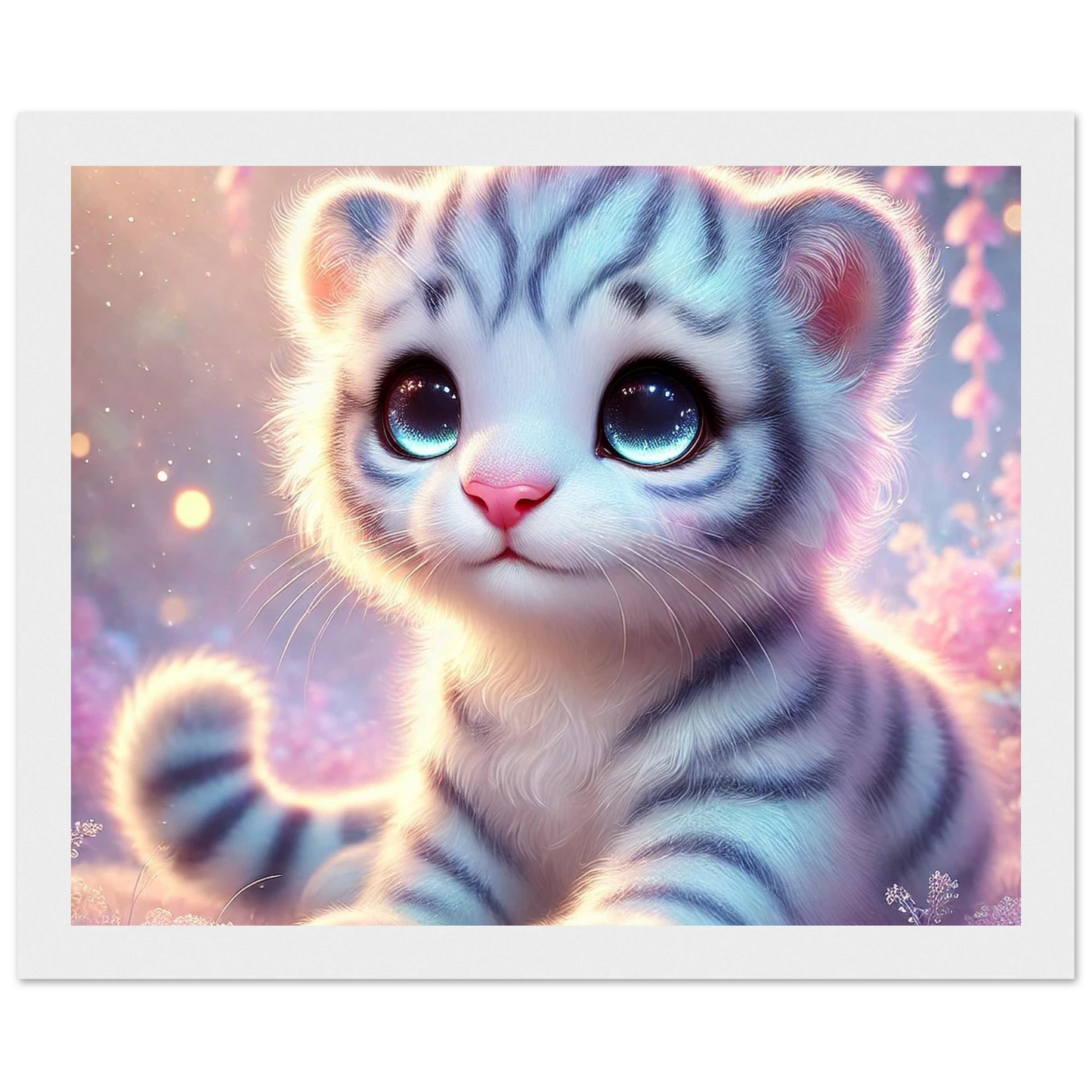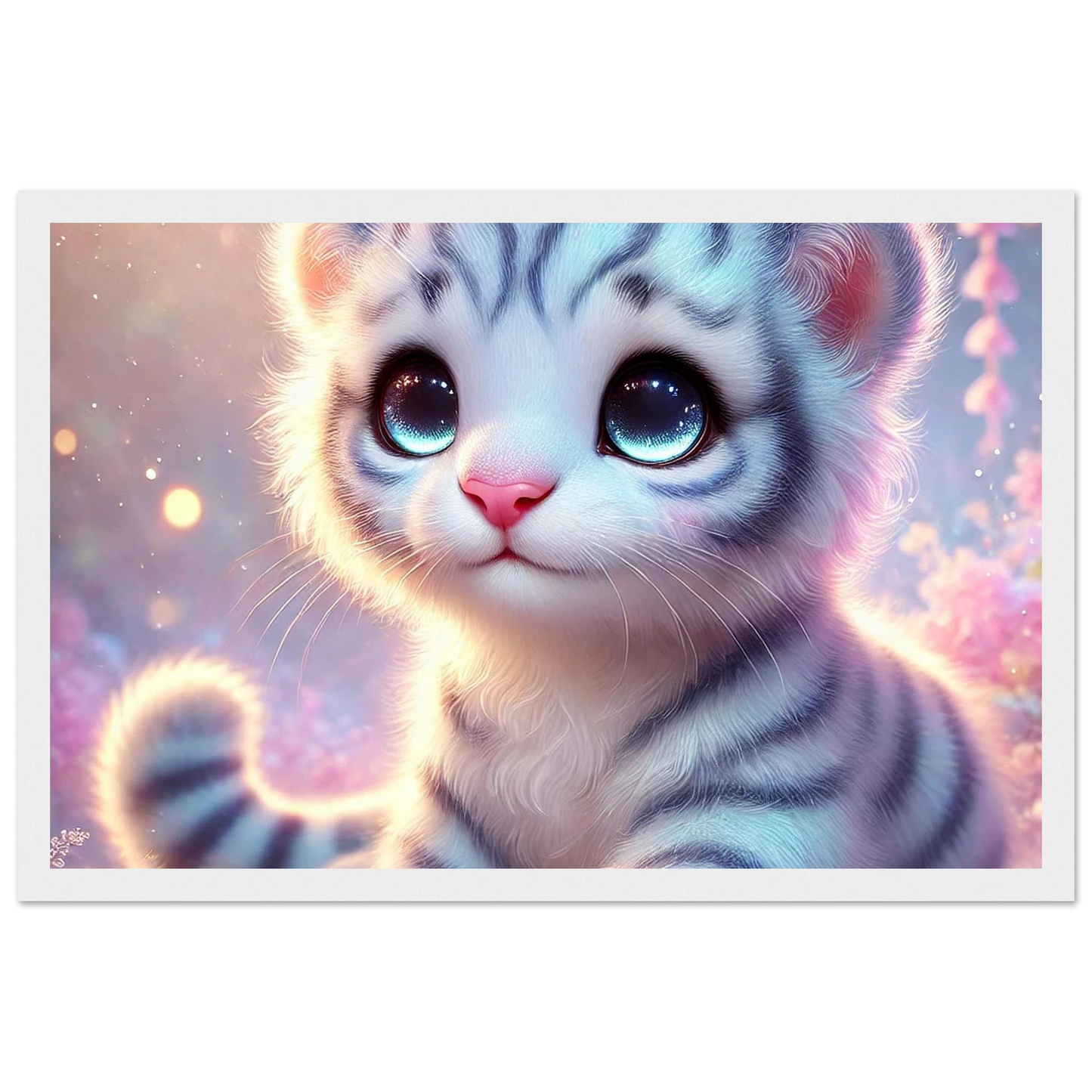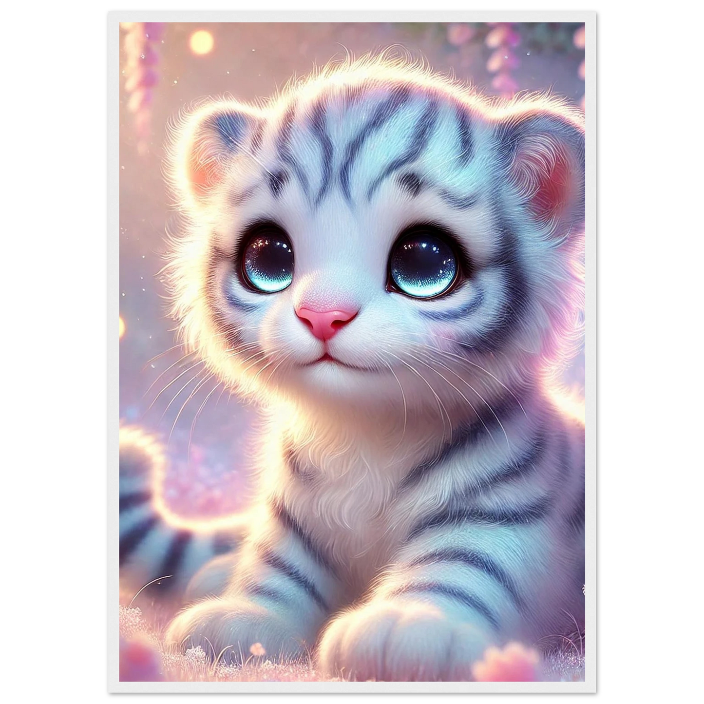 Nuala ist ein kleines, weißes Tigerjunges mit zarten, lavendelfarbenen Streifen und Augen, die wie der erste Morgentau im Frühling leuchten. Geboren in einem Tal voller ewiger Blüten, trägt sie die Leichtigkeit und das Strahlen des Neubeginns in sich. Sie schenkt Mut in dunklen Momenten und erinnert daran, dass selbst leise Pfoten Spuren voller Hoffnung hinterlassen können.