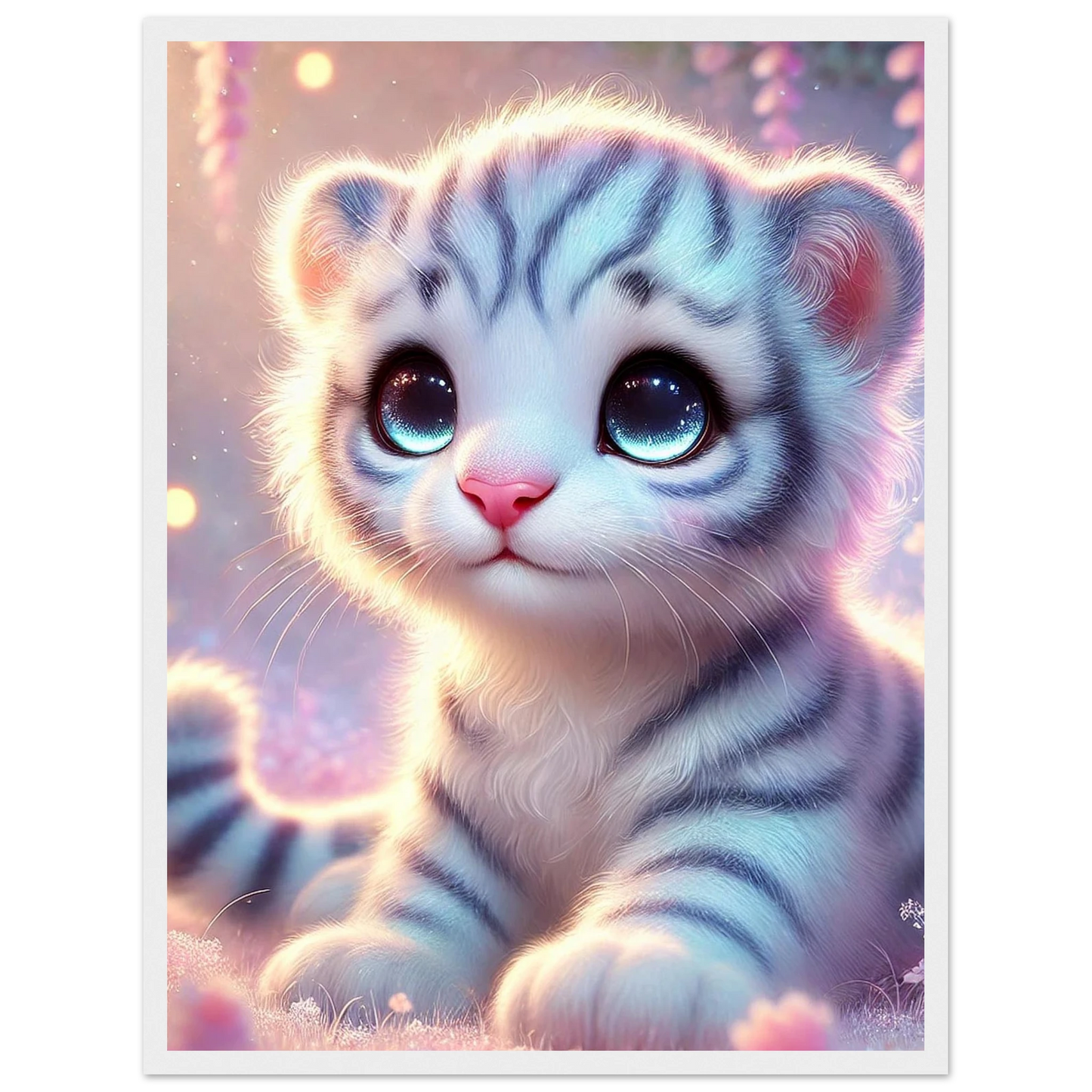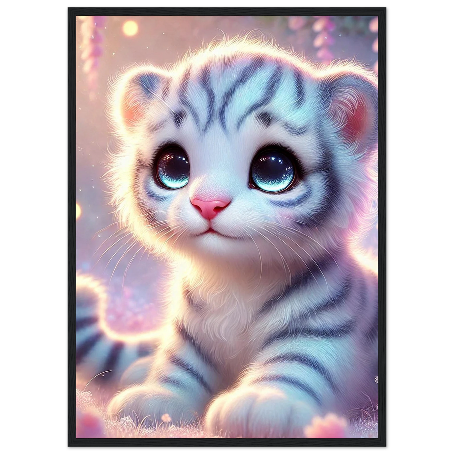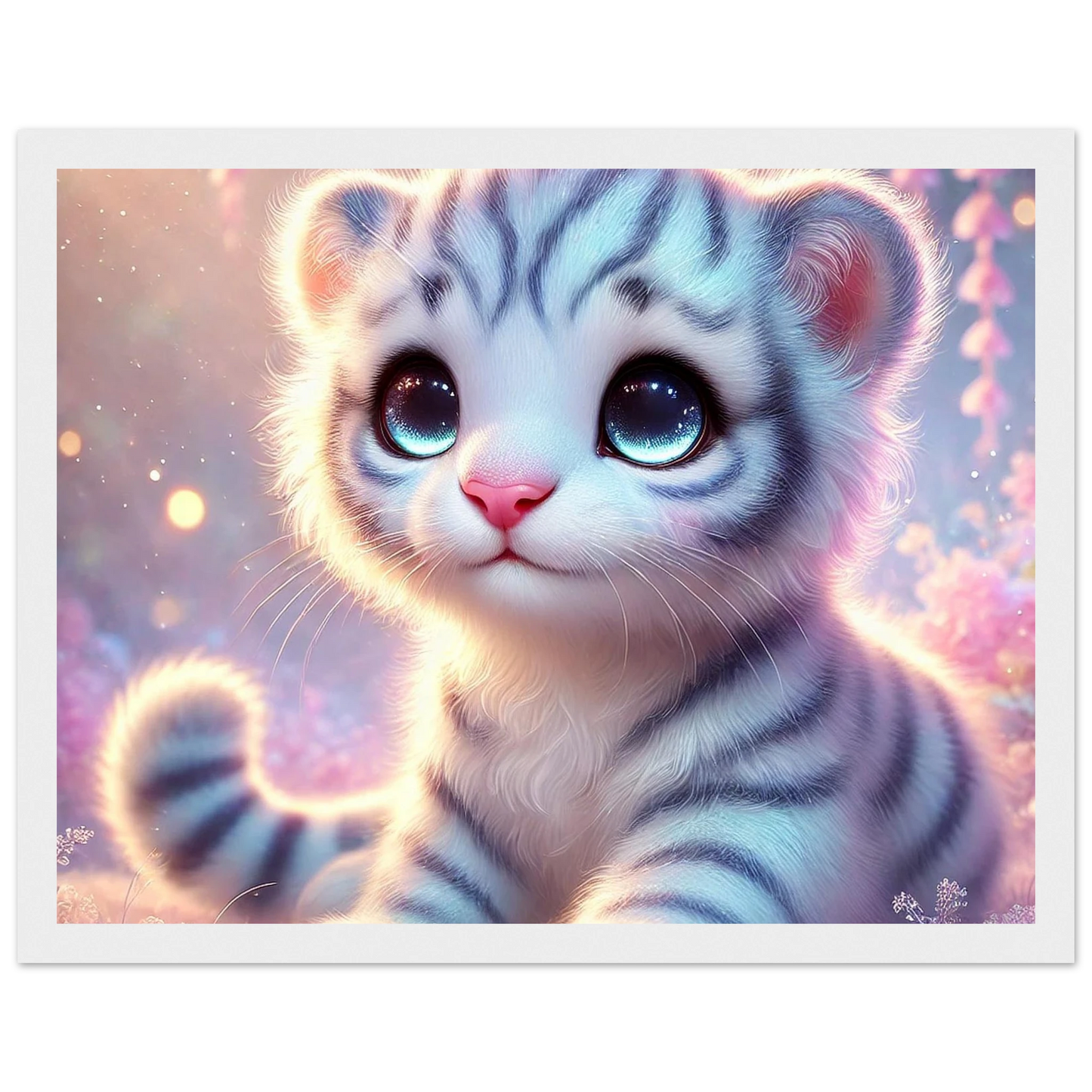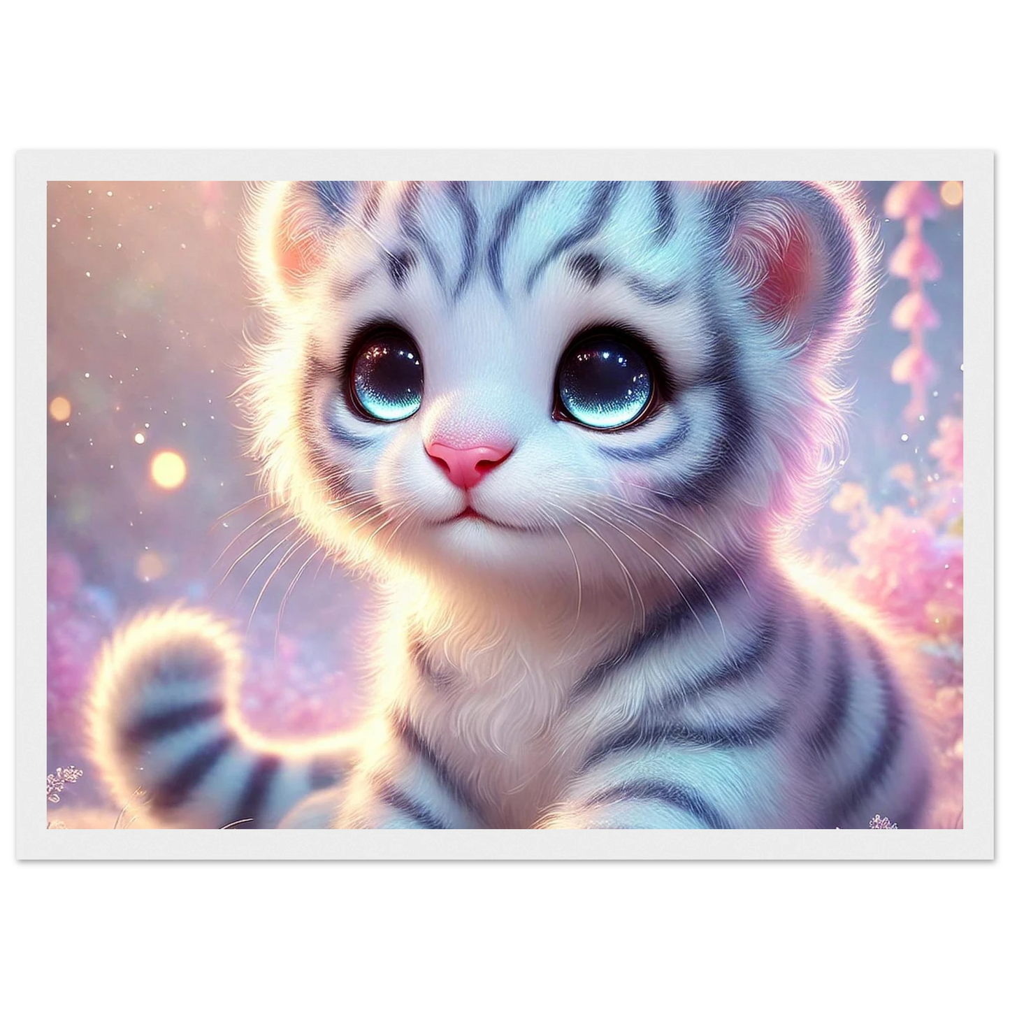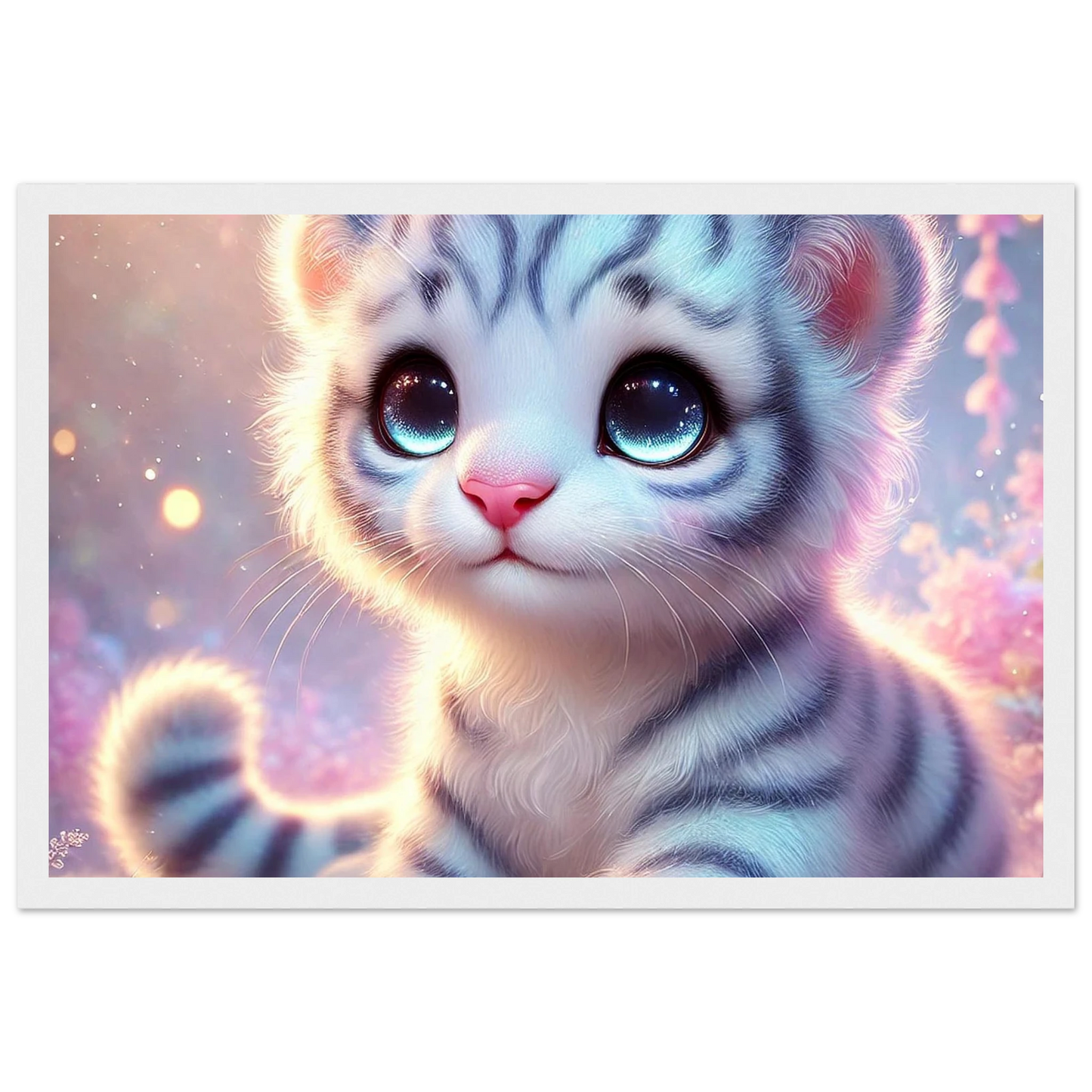 Nuala ist ein kleines, weißes Tigerjunges mit zarten, lavendelfarbenen Streifen und Augen, die wie der erste Morgentau im Frühling leuchten. Geboren in einem Tal voller ewiger Blüten, trägt sie die Leichtigkeit und das Strahlen des Neubeginns in sich. Sie schenkt Mut in dunklen Momenten und erinnert daran, dass selbst leise Pfoten Spuren voller Hoffnung hinterlassen können.