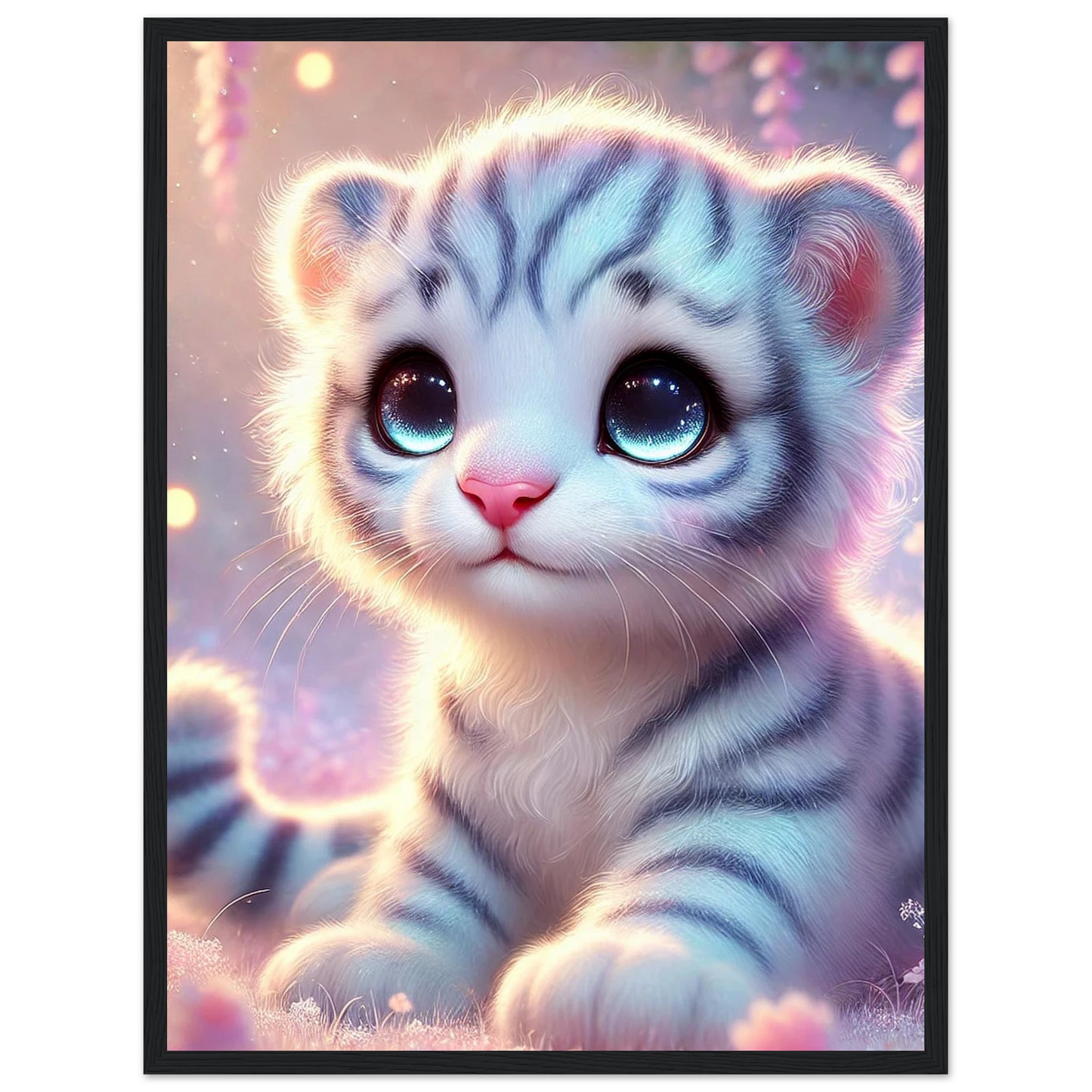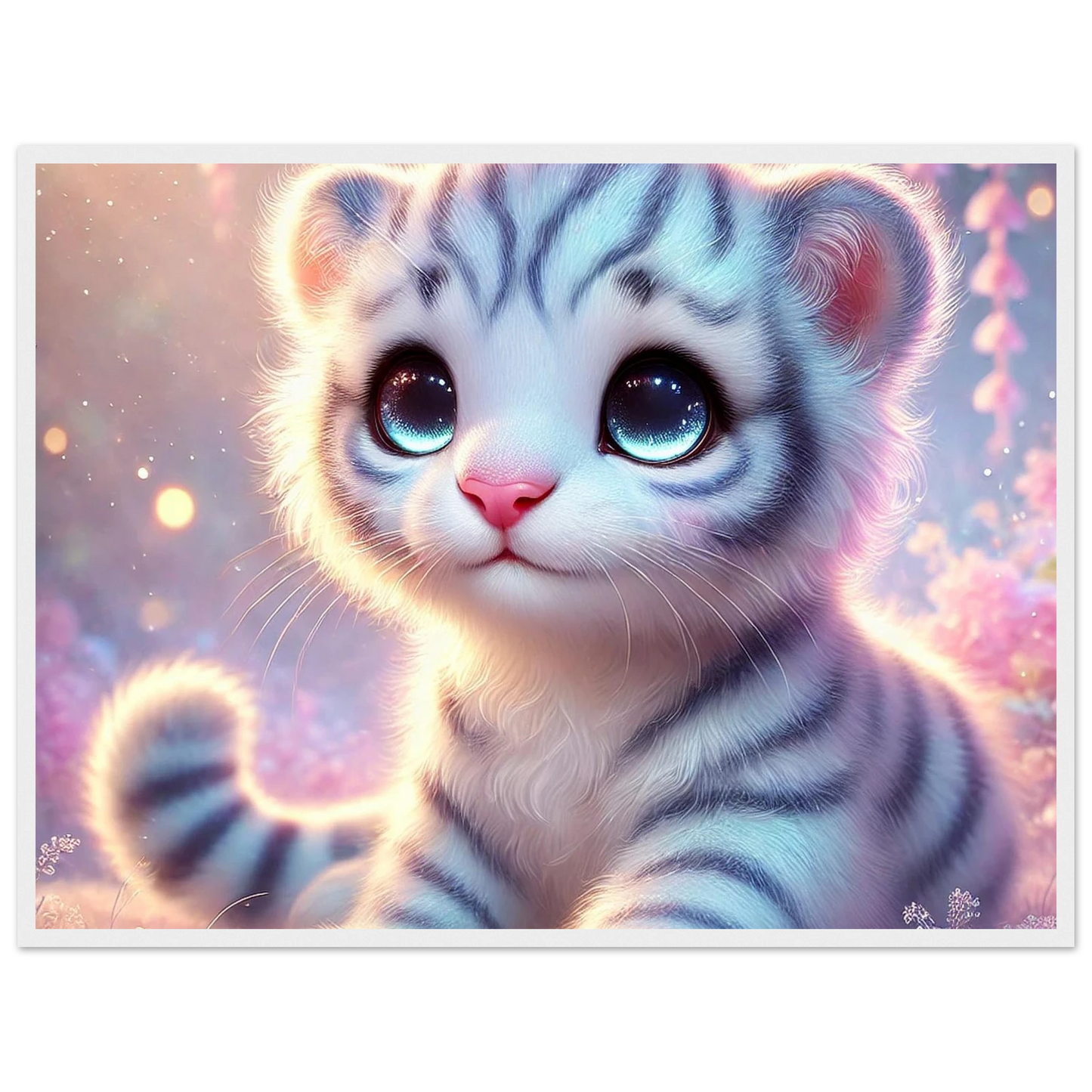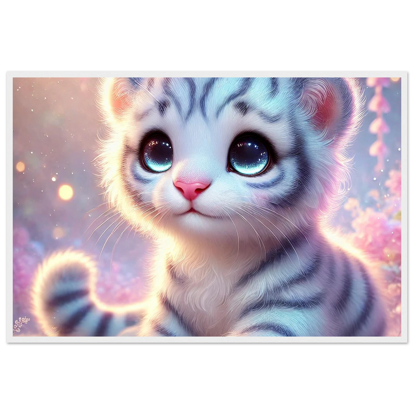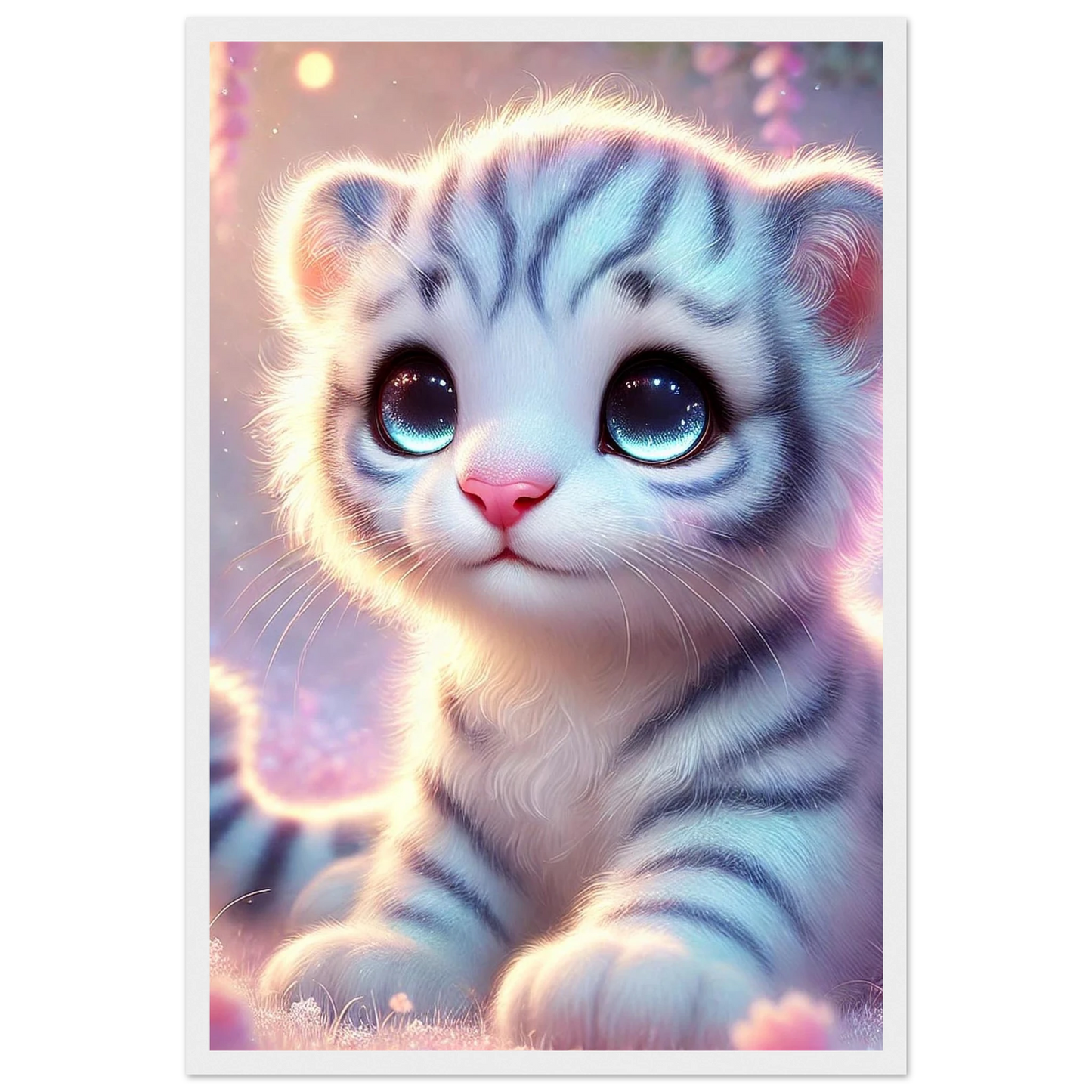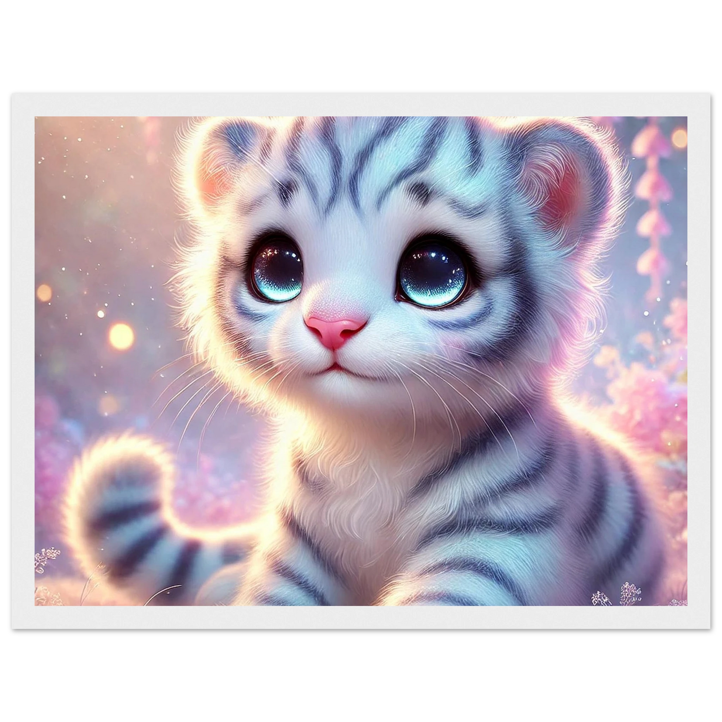 Nuala ist ein kleines, weißes Tigerjunges mit zarten, lavendelfarbenen Streifen und Augen, die wie der erste Morgentau im Frühling leuchten. Geboren in einem Tal voller ewiger Blüten, trägt sie die Leichtigkeit und das Strahlen des Neubeginns in sich. Sie schenkt Mut in dunklen Momenten und erinnert daran, dass selbst leise Pfoten Spuren voller Hoffnung hinterlassen können.
