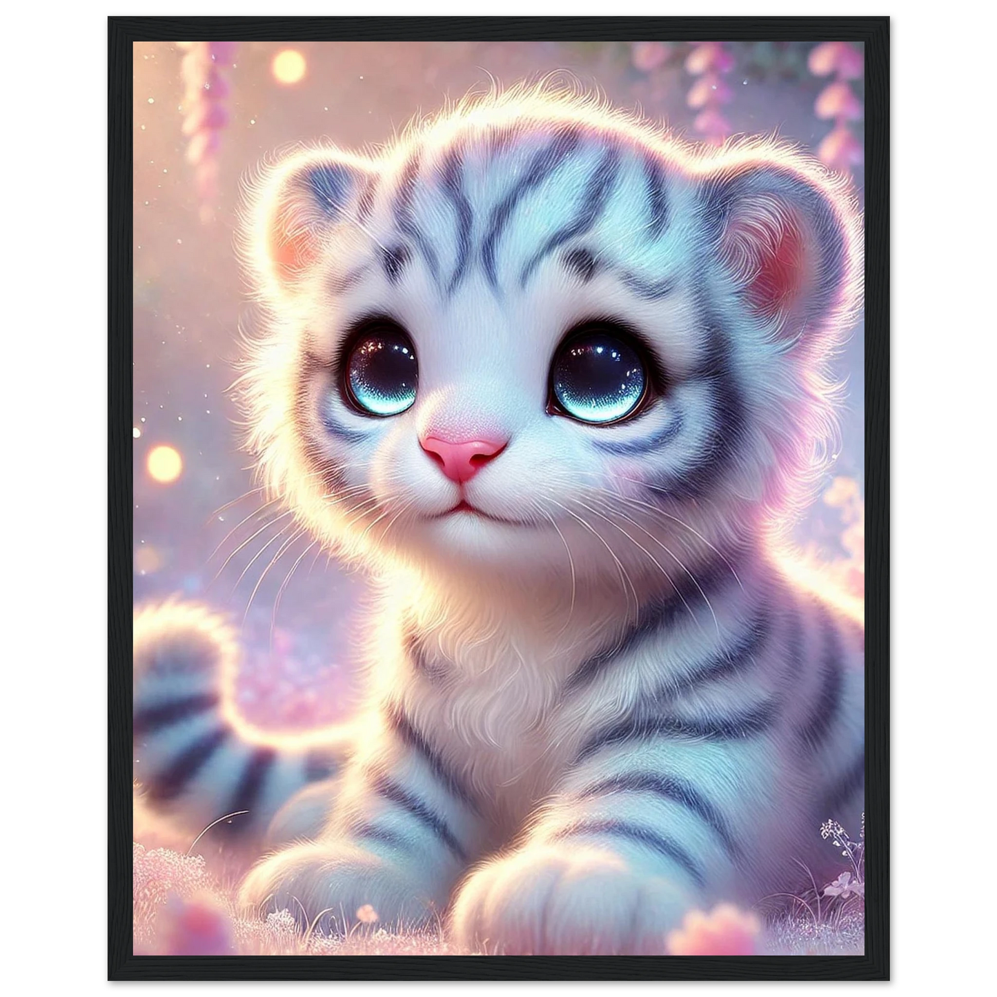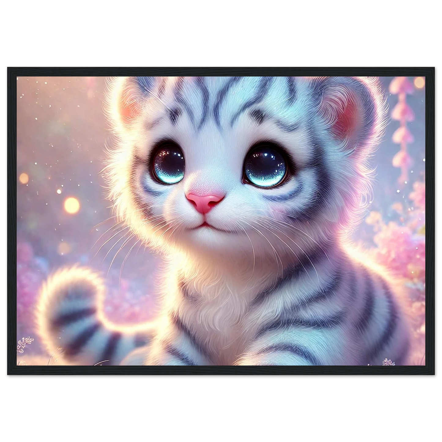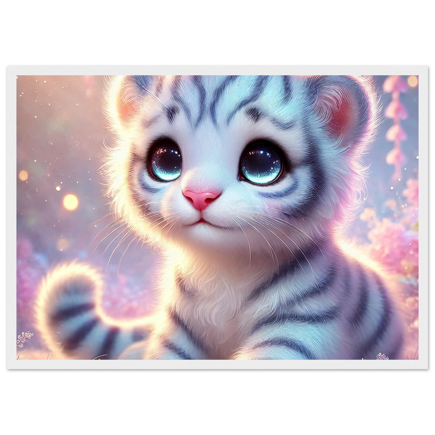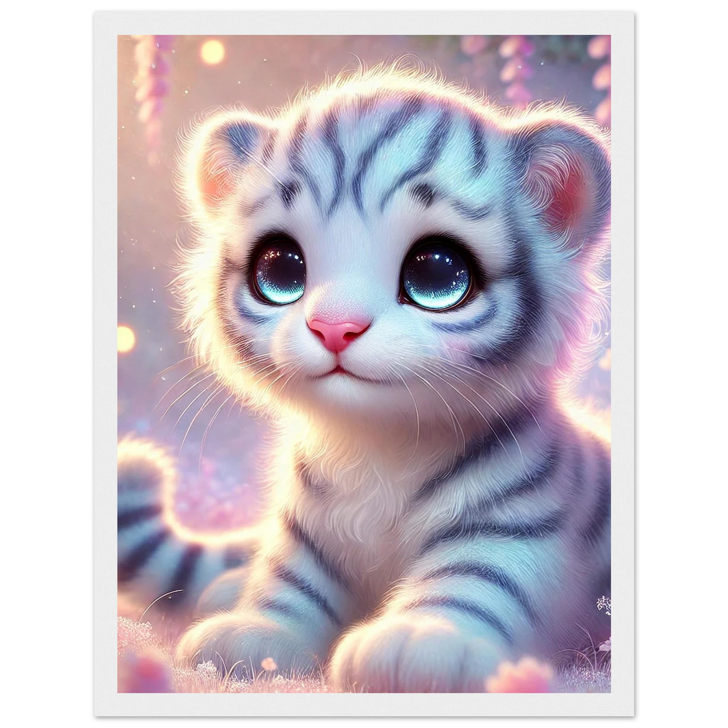 Nuala ist ein kleines, weißes Tigerjunges mit zarten, lavendelfarbenen Streifen und Augen, die wie der erste Morgentau im Frühling leuchten. Geboren in einem Tal voller ewiger Blüten, trägt sie die Leichtigkeit und das Strahlen des Neubeginns in sich. Sie schenkt Mut in dunklen Momenten und erinnert daran, dass selbst leise Pfoten Spuren voller Hoffnung hinterlassen können.
