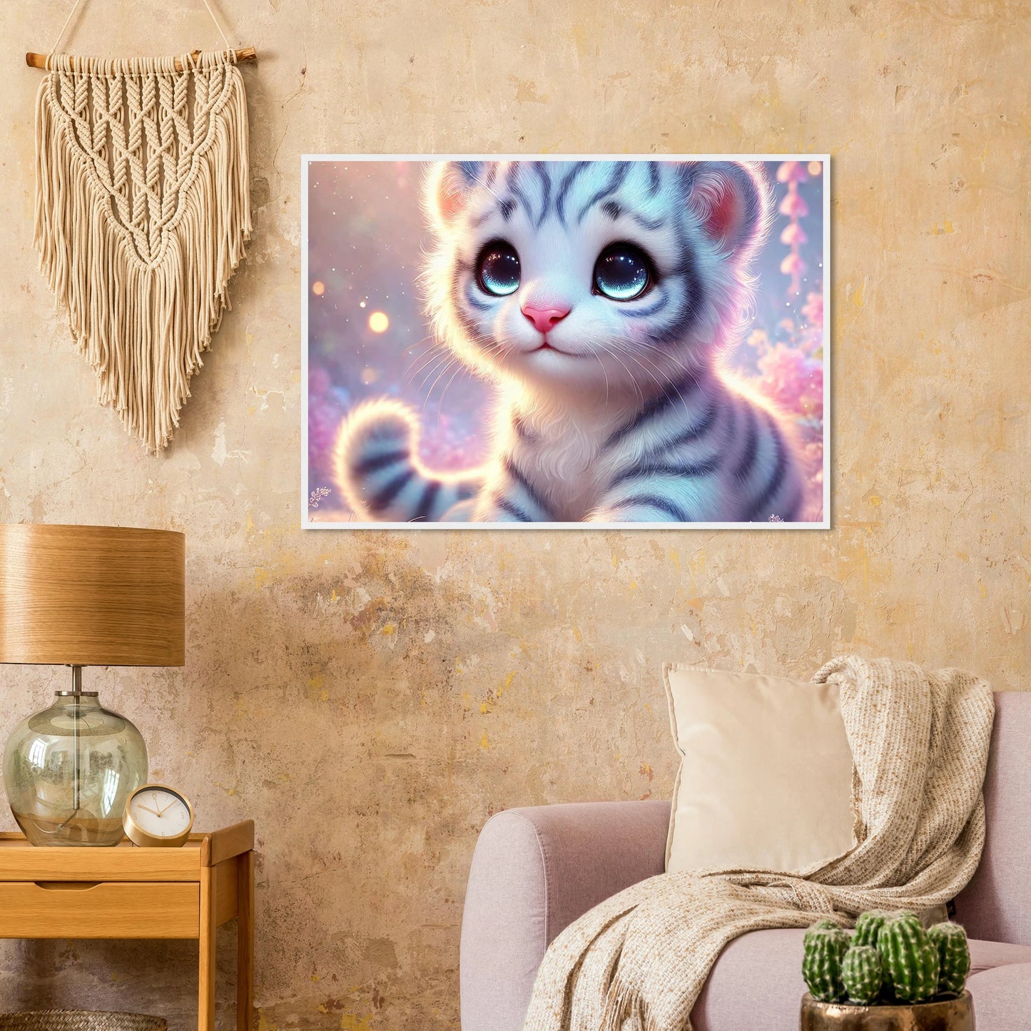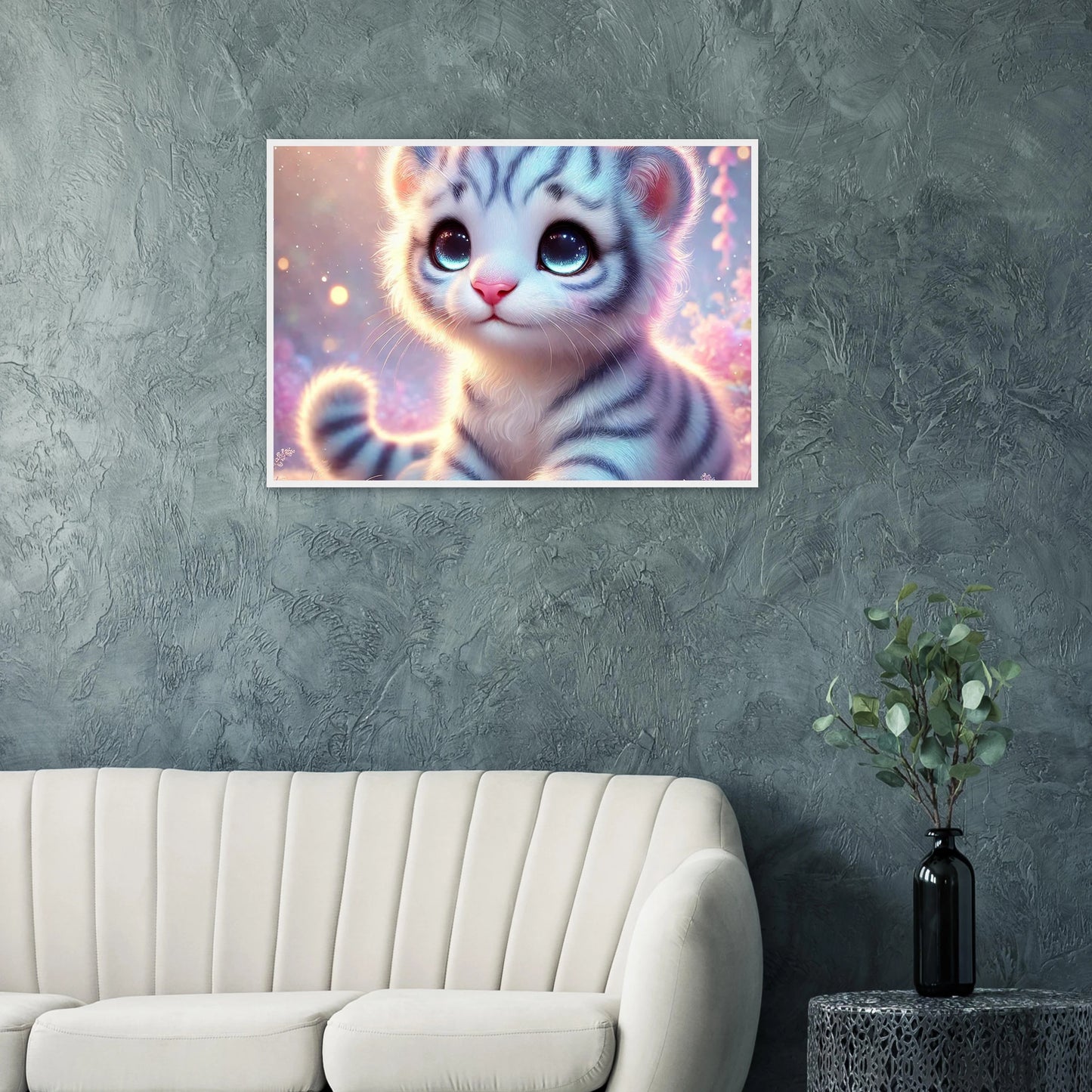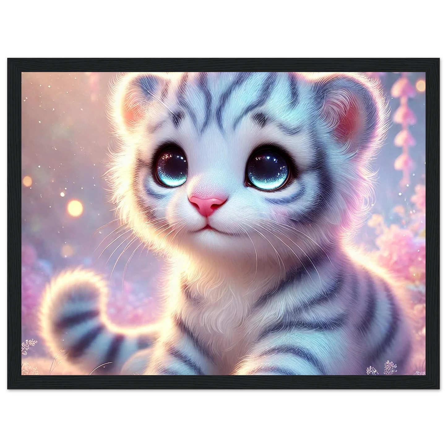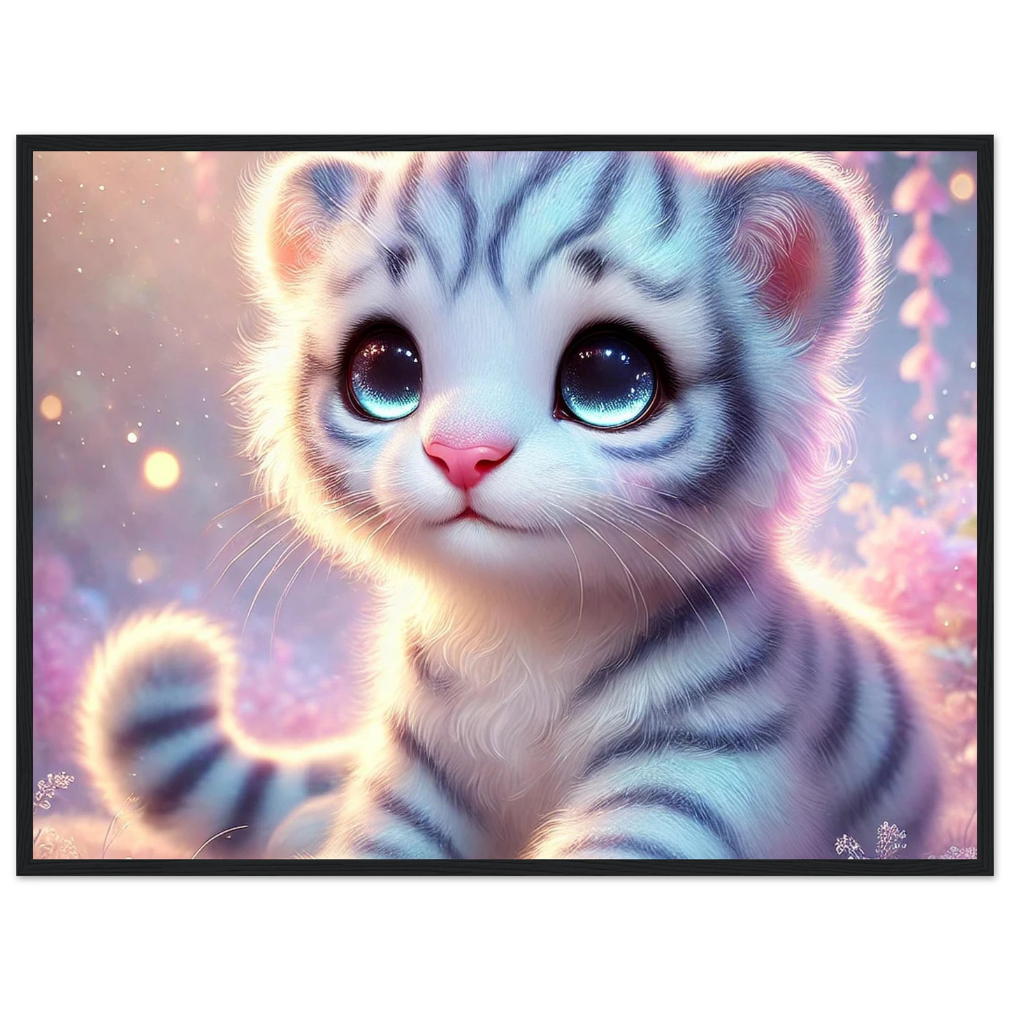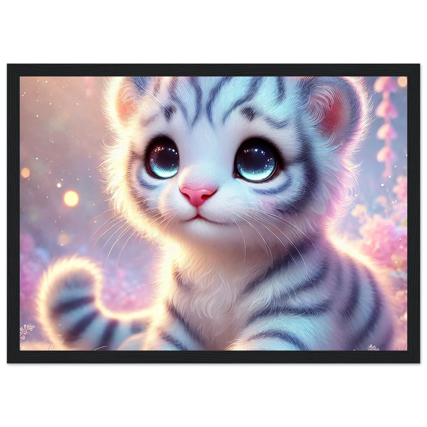 Nuala ist ein kleines, weißes Tigerjunges mit zarten, lavendelfarbenen Streifen und Augen, die wie der erste Morgentau im Frühling leuchten. Geboren in einem Tal voller ewiger Blüten, trägt sie die Leichtigkeit und das Strahlen des Neubeginns in sich. Sie schenkt Mut in dunklen Momenten und erinnert daran, dass selbst leise Pfoten Spuren voller Hoffnung hinterlassen können.