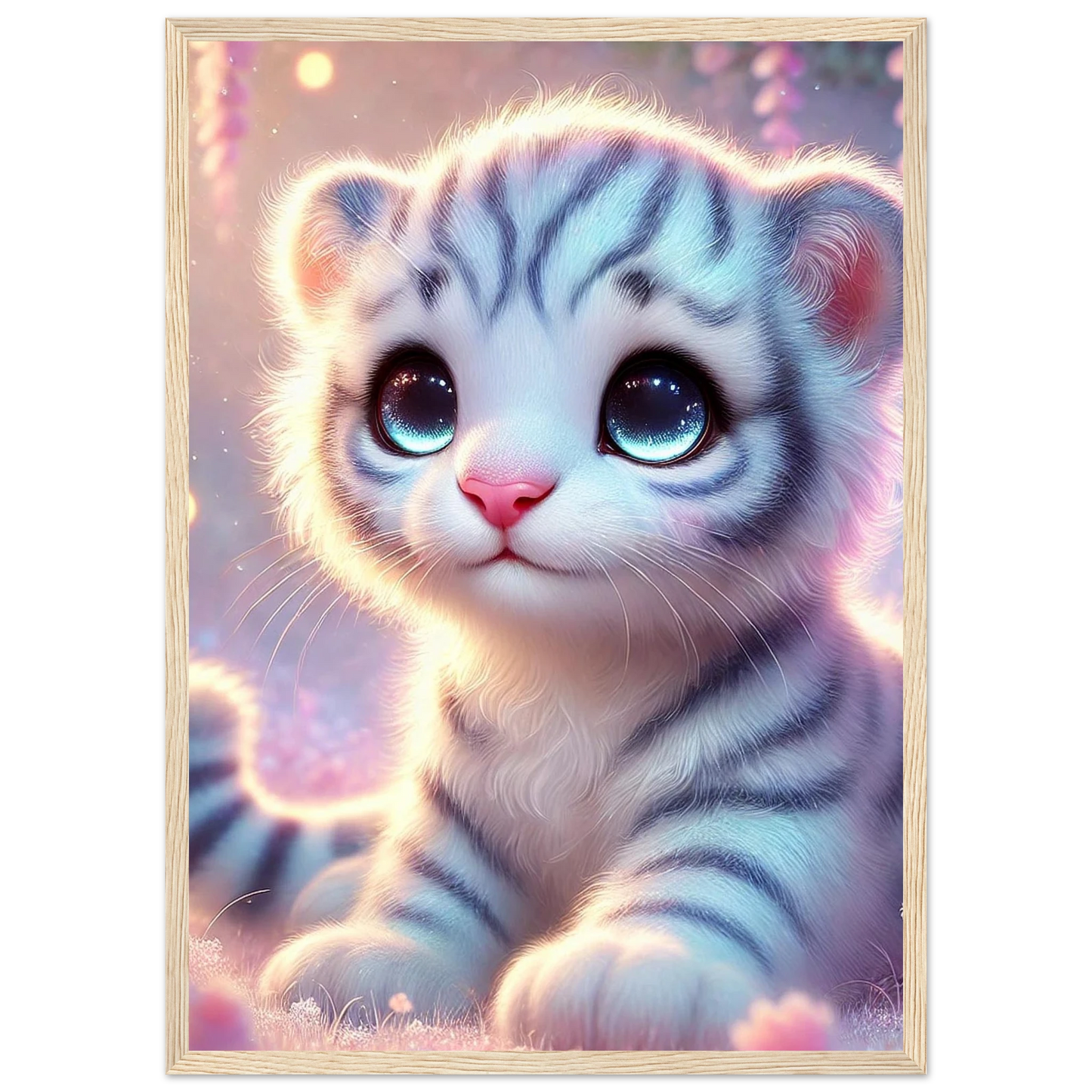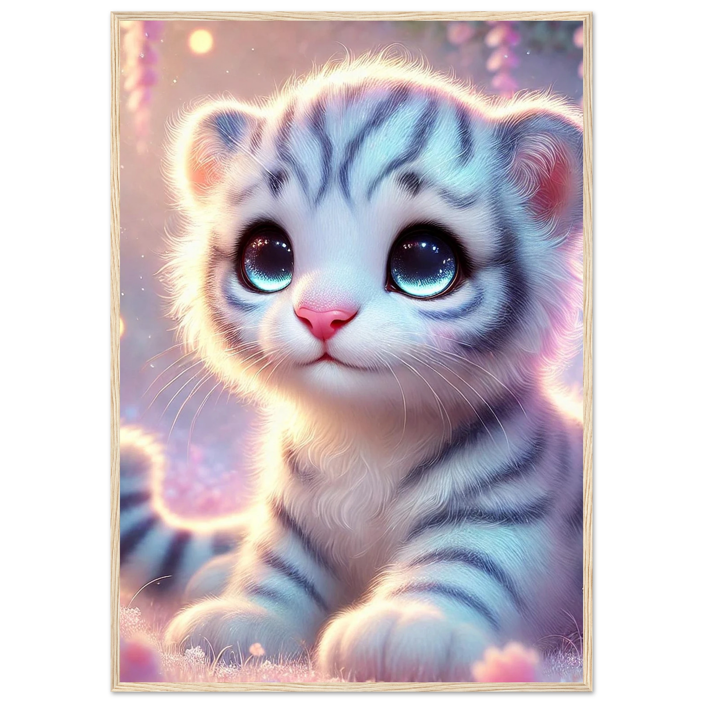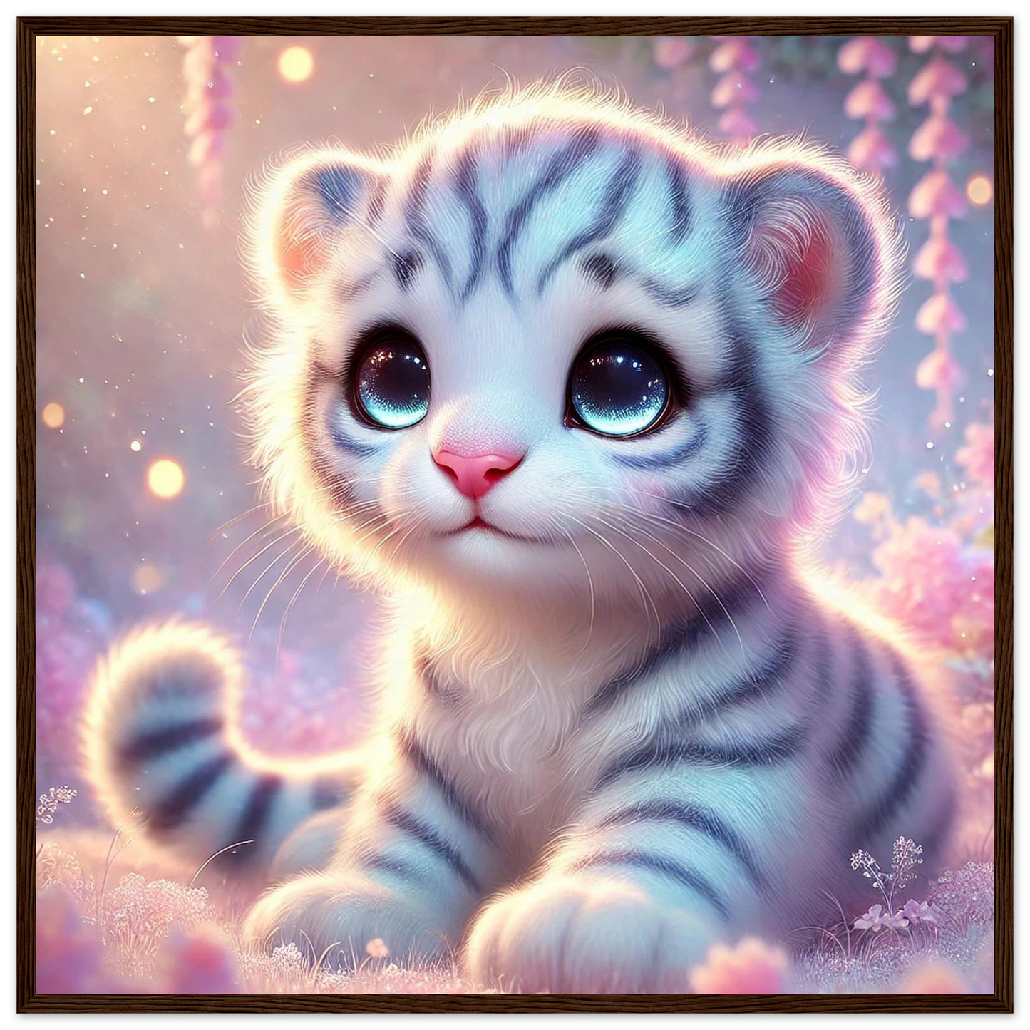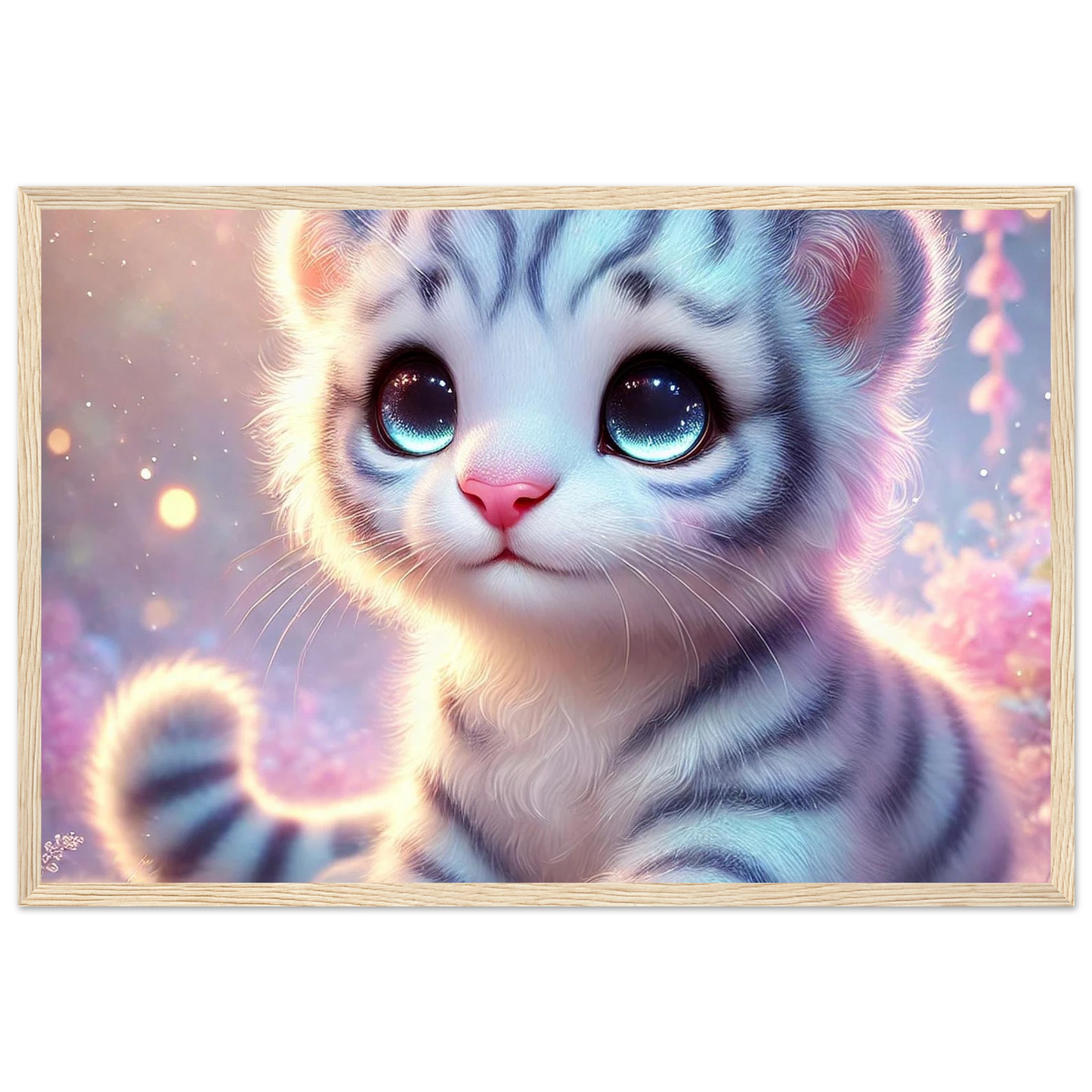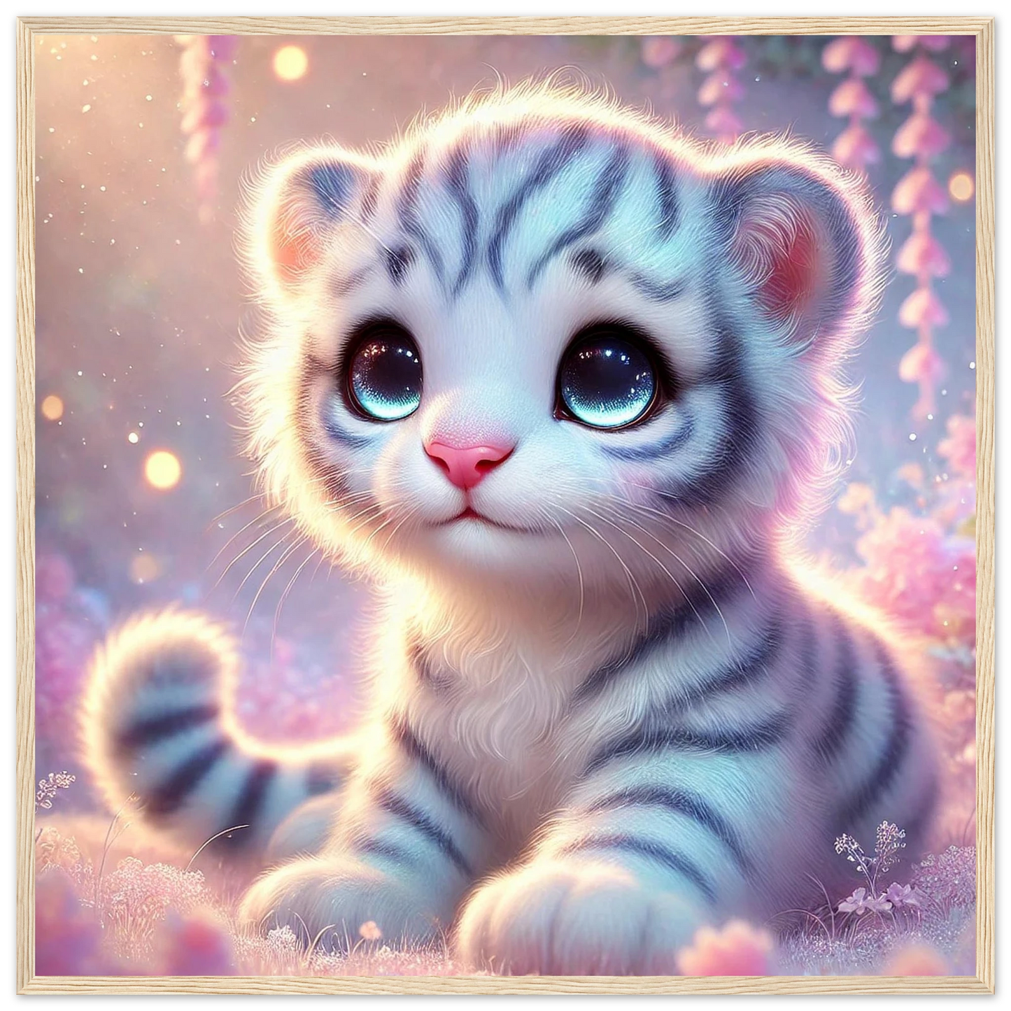 Nuala ist ein kleines, weißes Tigerjunges mit feinen, lavendelfarbenen Streifen und Augen, die den Glanz des Frühlings tragen. Geboren in einem Tal voller ewiger Blüten, bringt sie Leichtigkeit und Hoffnung in jedes Herz. Mit jedem Blick erinnert sie daran, dass selbst in stillen Momenten Schönheit erblüht und kleine Wunder auf leisen Pfoten kommen.