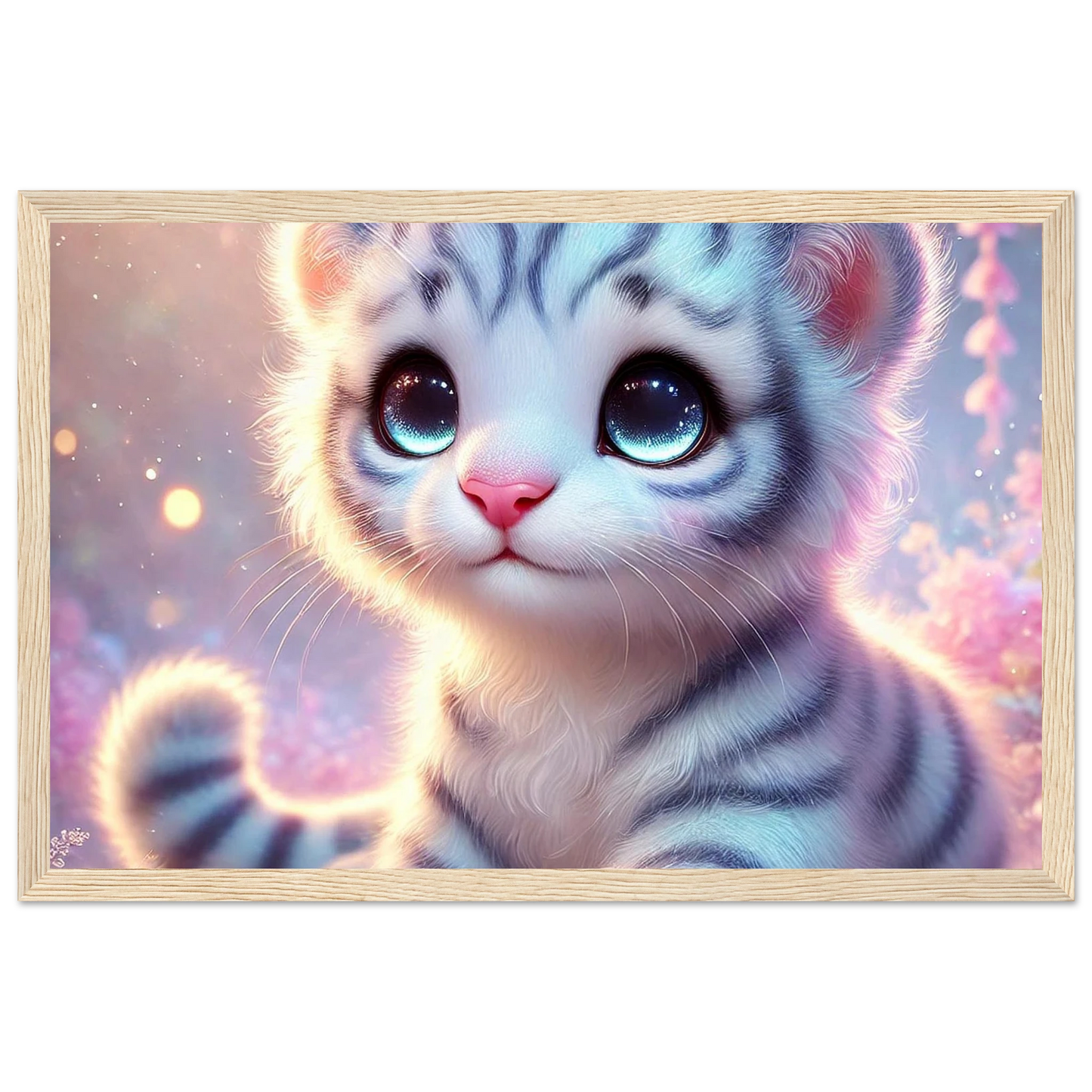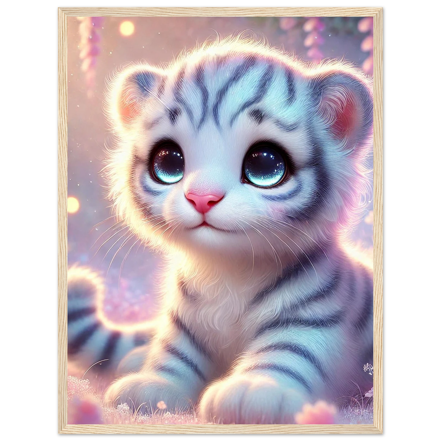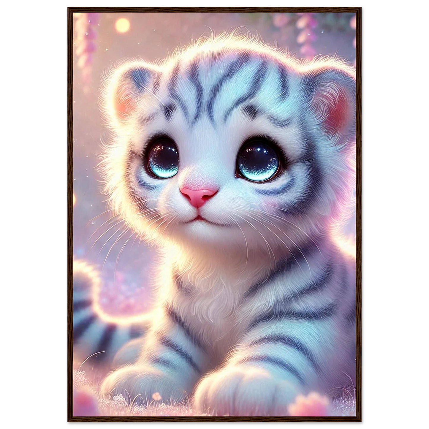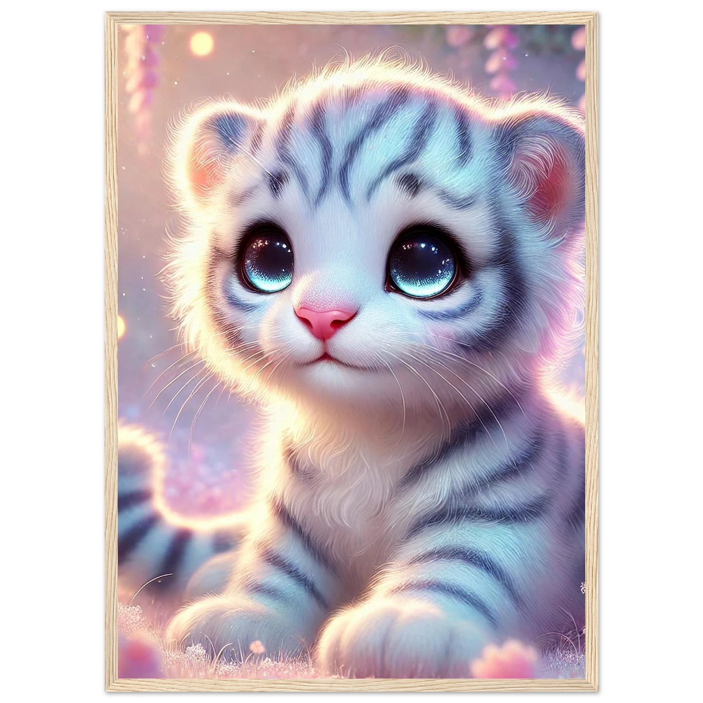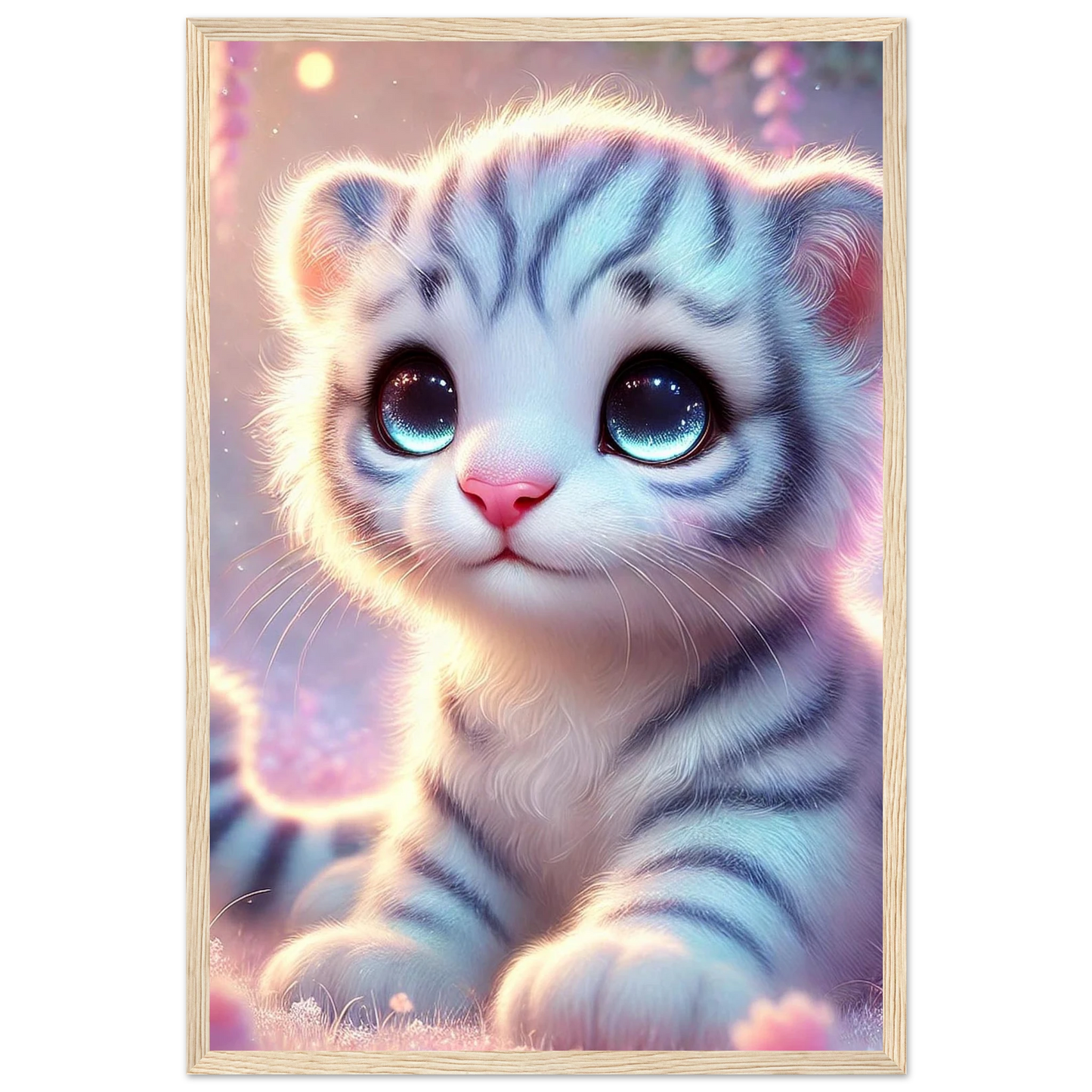 Nuala ist ein kleines, weißes Tigerjunges mit feinen, lavendelfarbenen Streifen und Augen, die den Glanz des Frühlings tragen. Geboren in einem Tal voller ewiger Blüten, bringt sie Leichtigkeit und Hoffnung in jedes Herz. Mit jedem Blick erinnert sie daran, dass selbst in stillen Momenten Schönheit erblüht und kleine Wunder auf leisen Pfoten kommen.