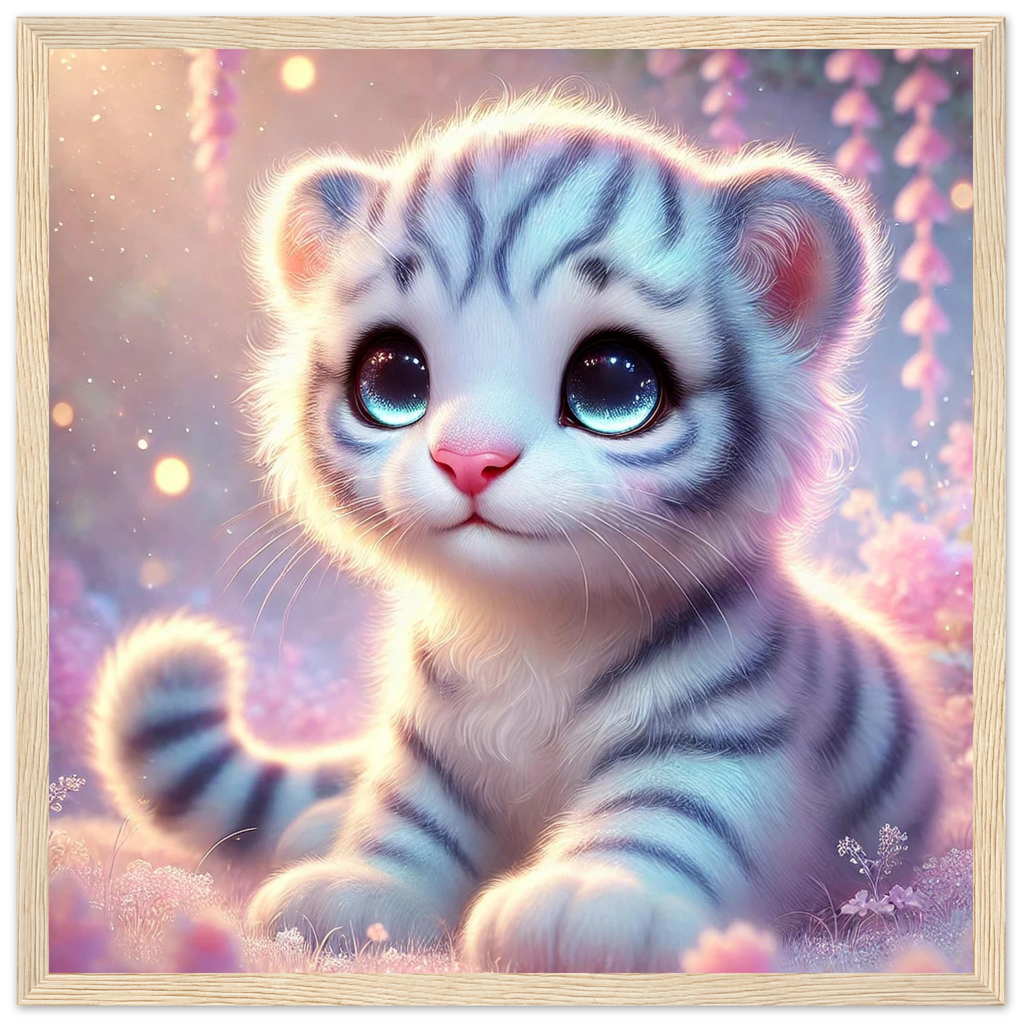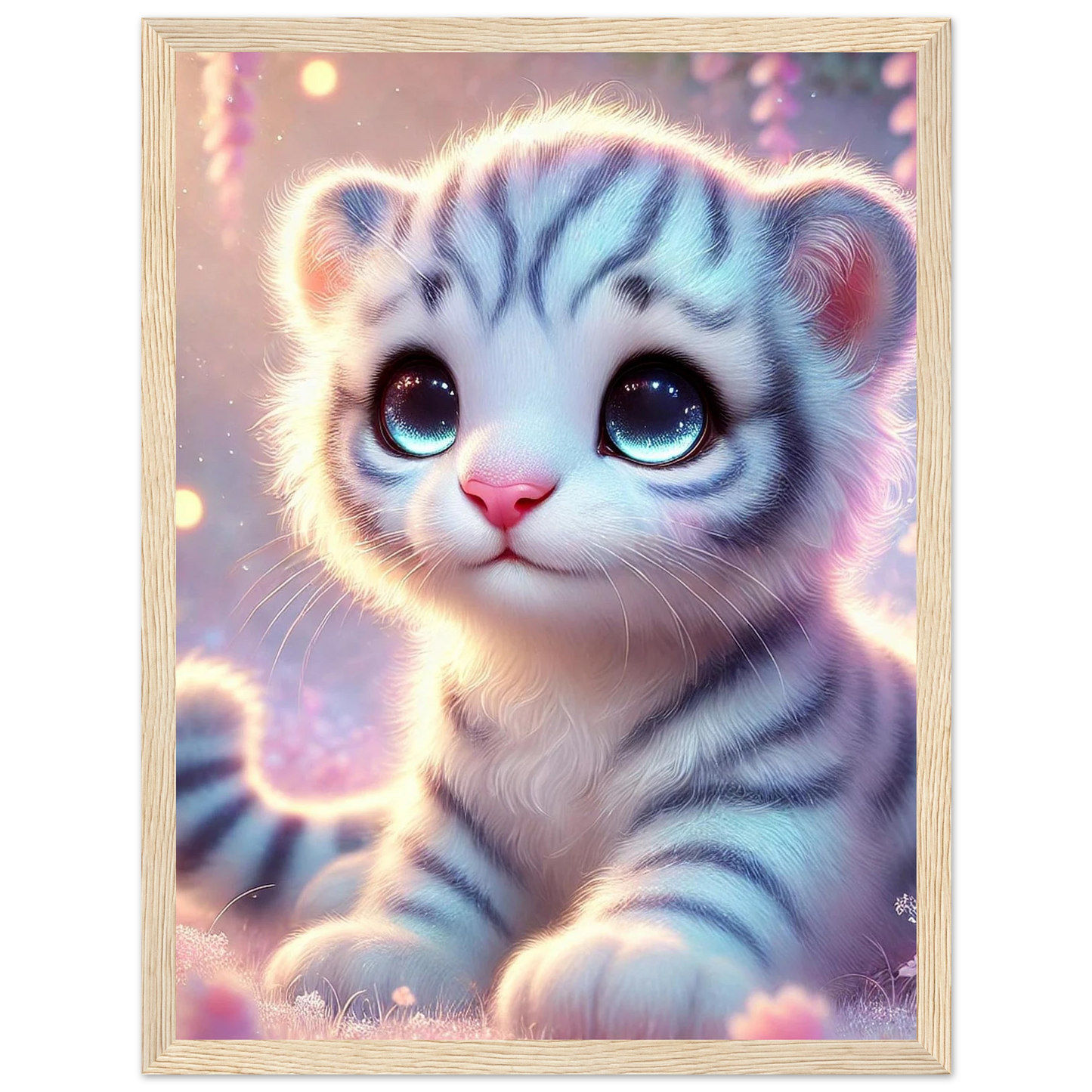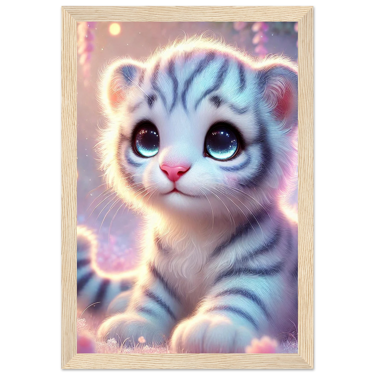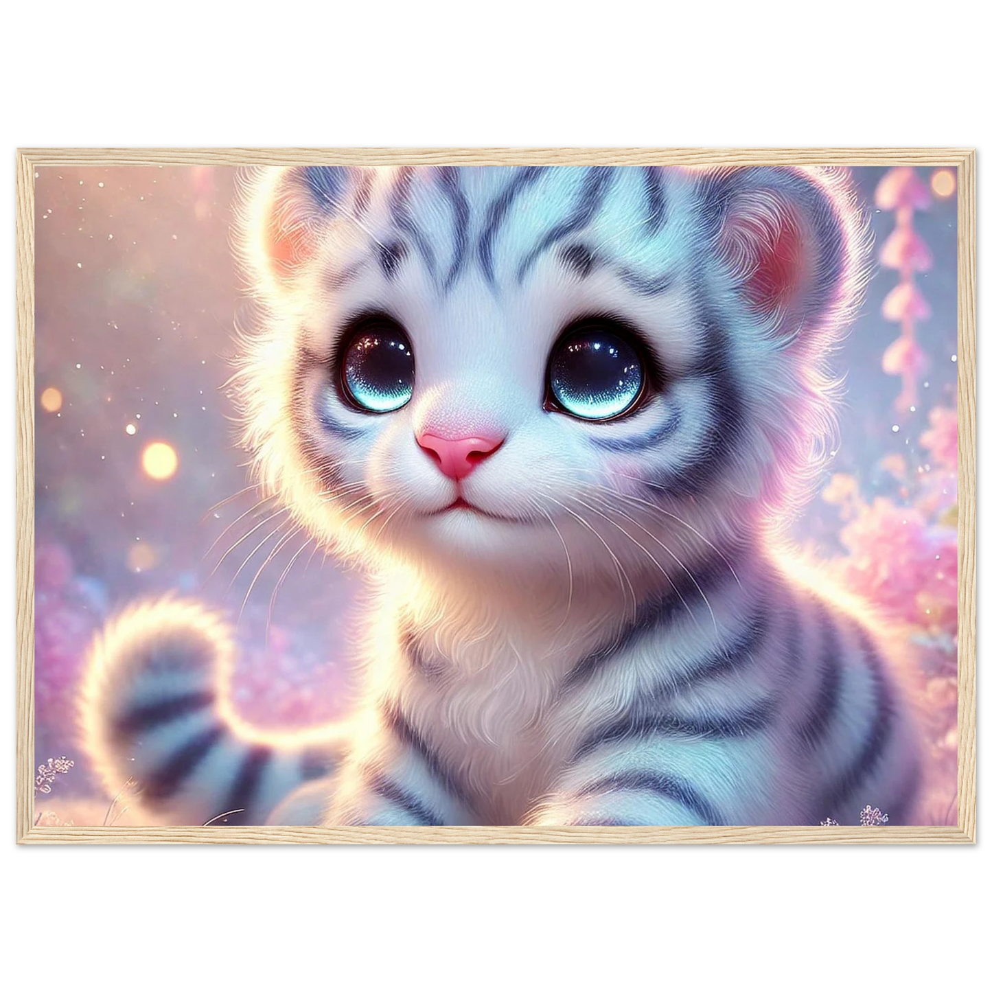 Nuala ist ein kleines, weißes Tigerjunges mit feinen, lavendelfarbenen Streifen und Augen, die den Glanz des Frühlings tragen. Geboren in einem Tal voller ewiger Blüten, bringt sie Leichtigkeit und Hoffnung in jedes Herz. Mit jedem Blick erinnert sie daran, dass selbst in stillen Momenten Schönheit erblüht und kleine Wunder auf leisen Pfoten kommen.