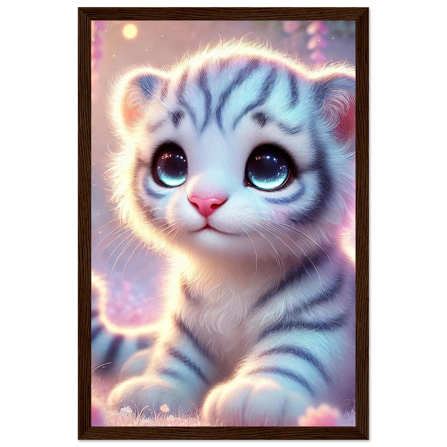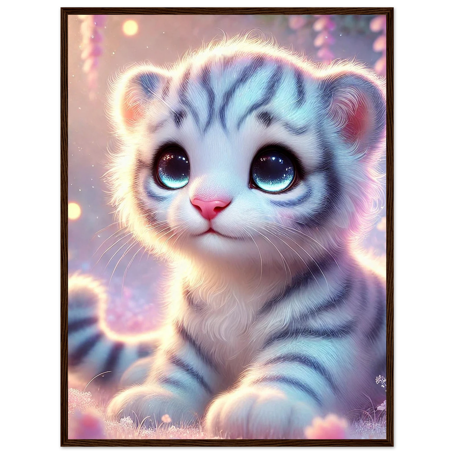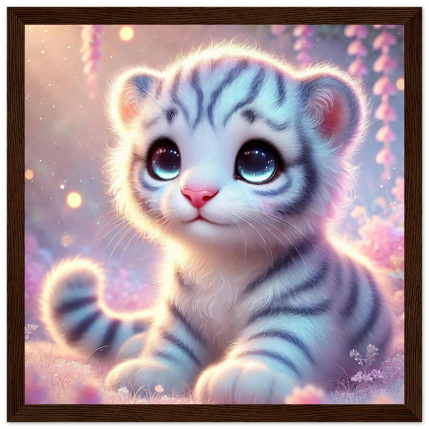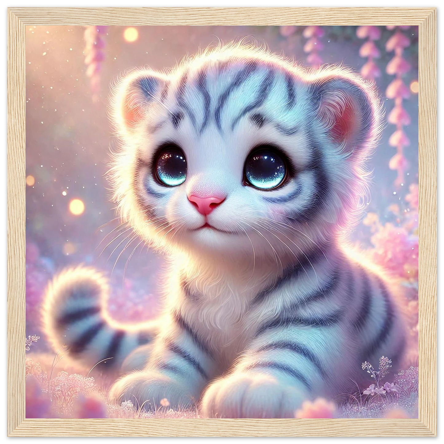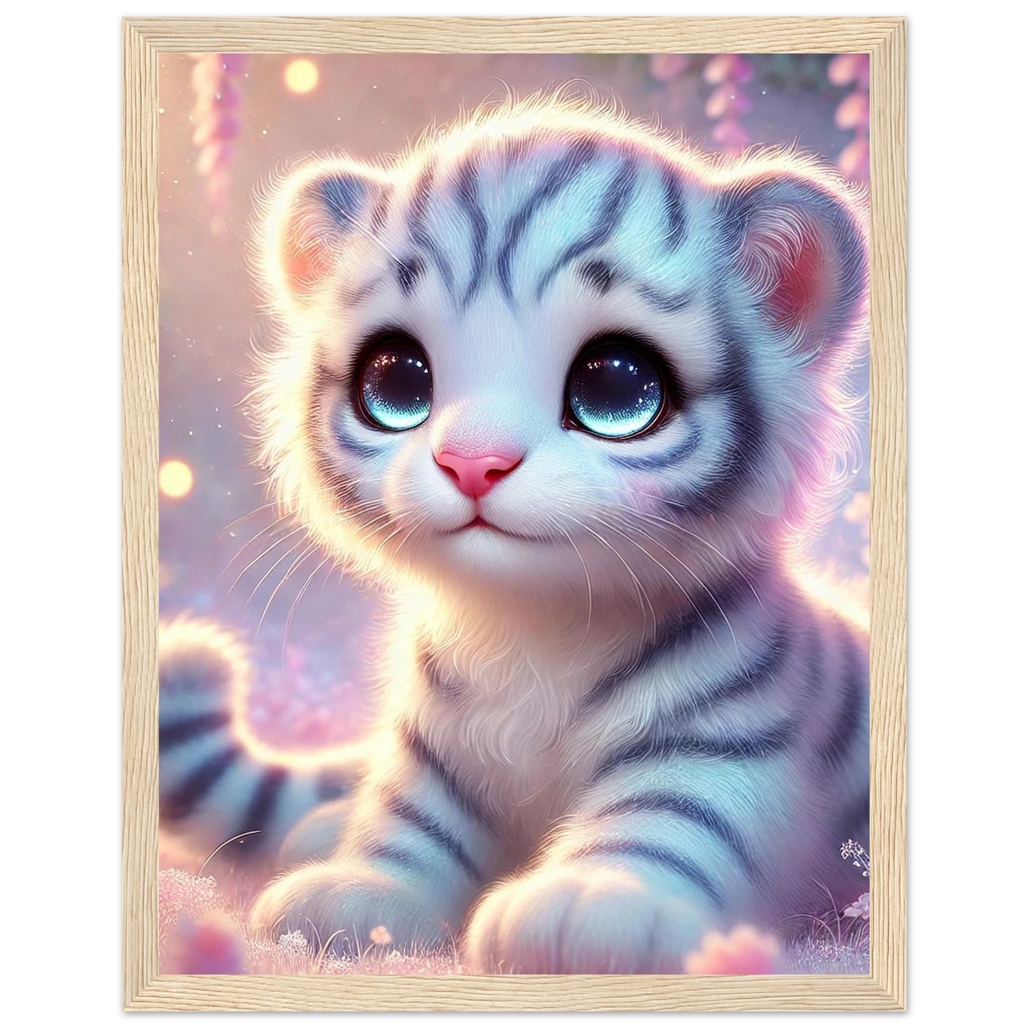 Nuala ist ein kleines, weißes Tigerjunges mit feinen, lavendelfarbenen Streifen und Augen, die den Glanz des Frühlings tragen. Geboren in einem Tal voller ewiger Blüten, bringt sie Leichtigkeit und Hoffnung in jedes Herz. Mit jedem Blick erinnert sie daran, dass selbst in stillen Momenten Schönheit erblüht und kleine Wunder auf leisen Pfoten kommen.
