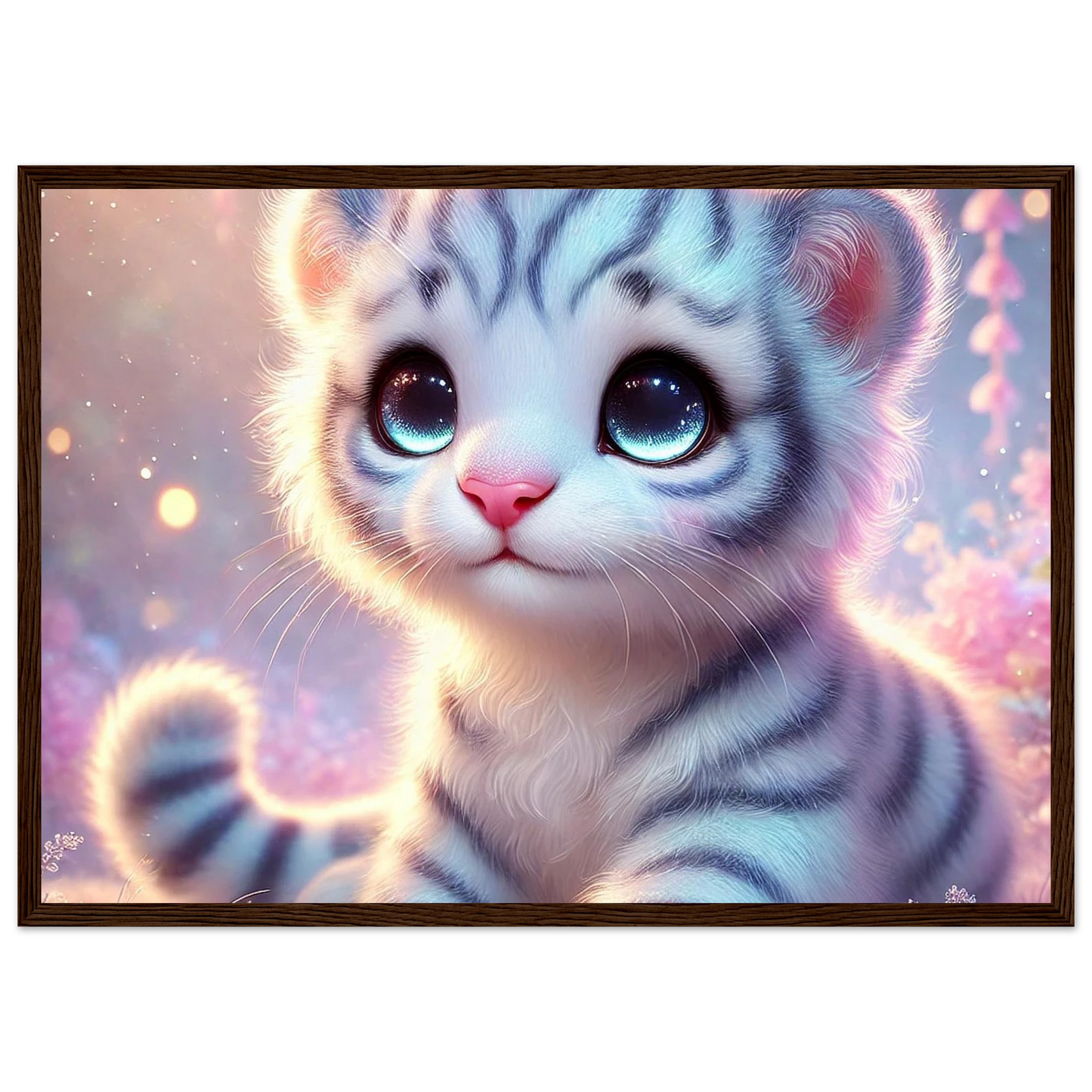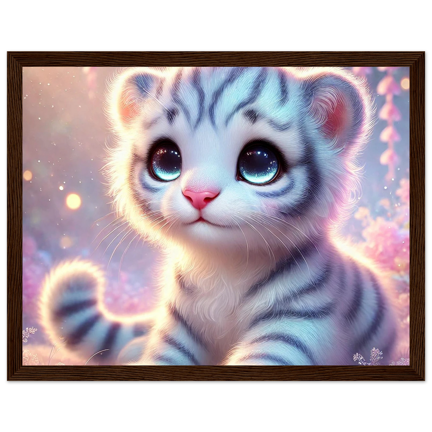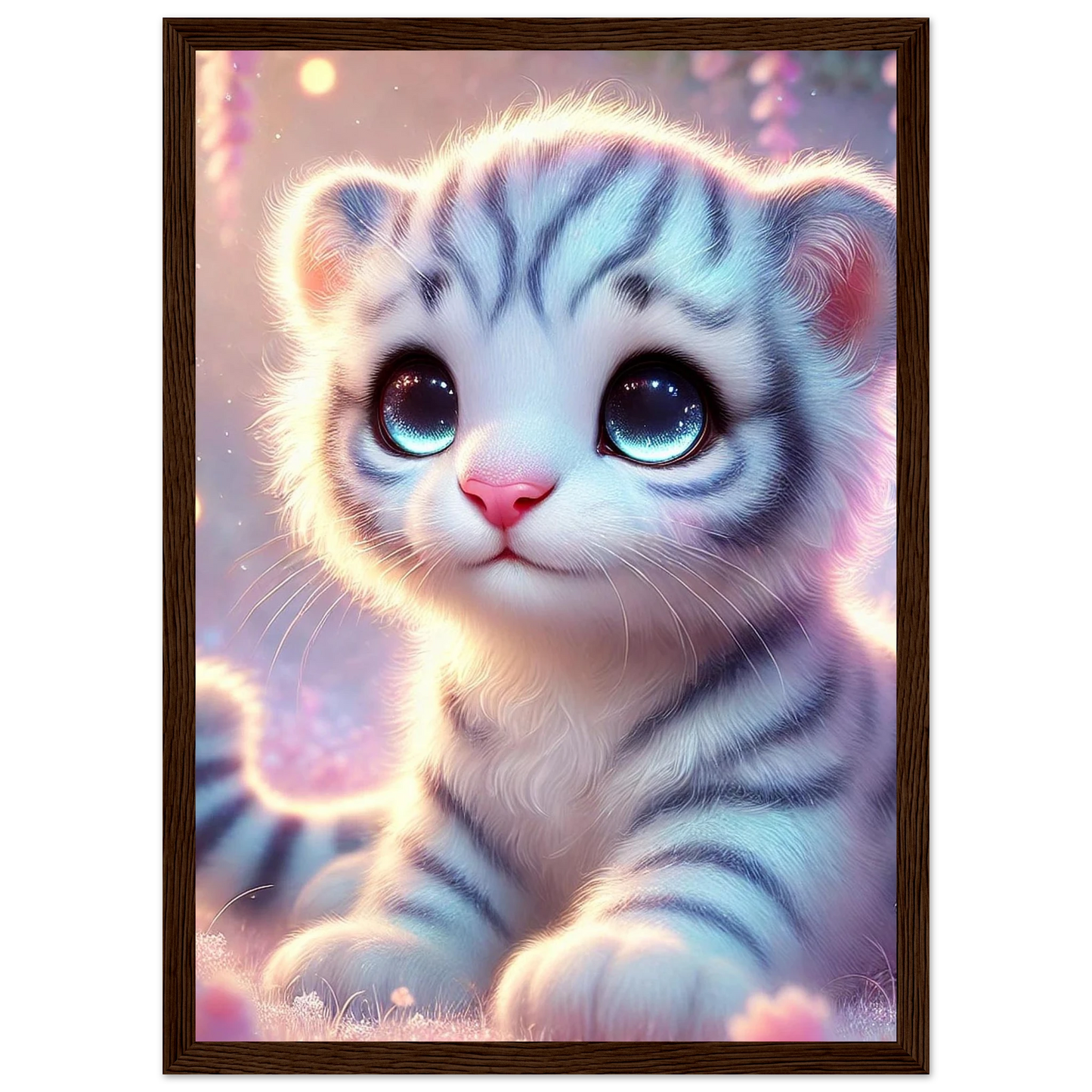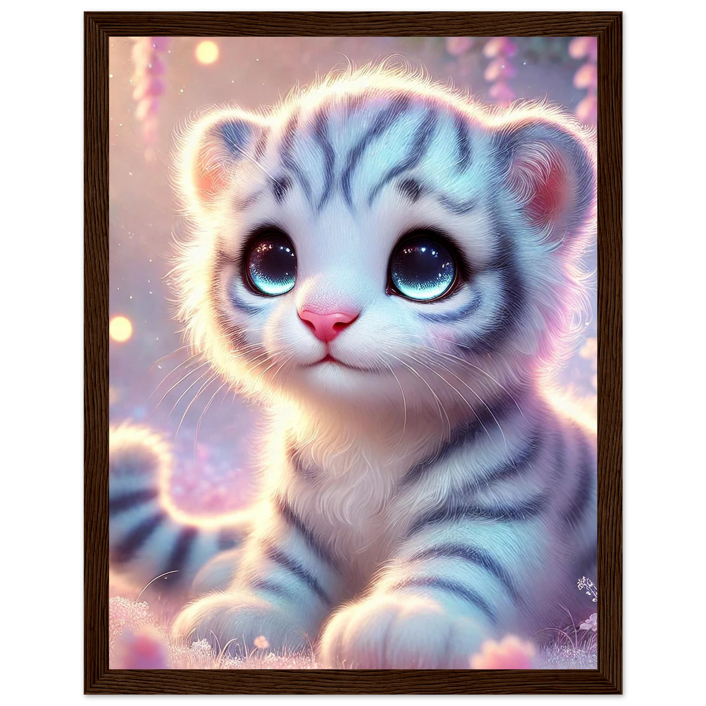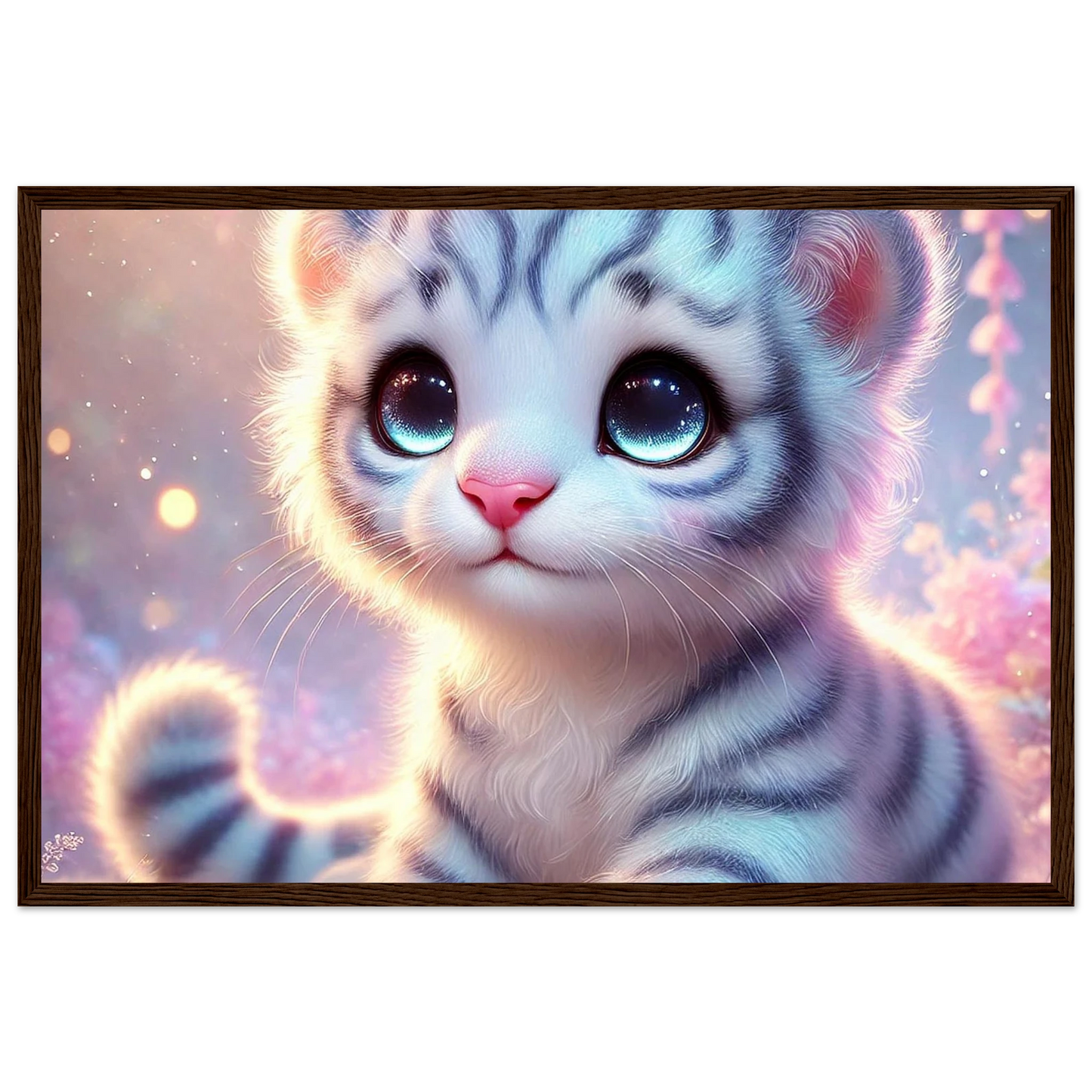 Nuala ist ein kleines, weißes Tigerjunges mit feinen, lavendelfarbenen Streifen und Augen, die den Glanz des Frühlings tragen. Geboren in einem Tal voller ewiger Blüten, bringt sie Leichtigkeit und Hoffnung in jedes Herz. Mit jedem Blick erinnert sie daran, dass selbst in stillen Momenten Schönheit erblüht und kleine Wunder auf leisen Pfoten kommen.