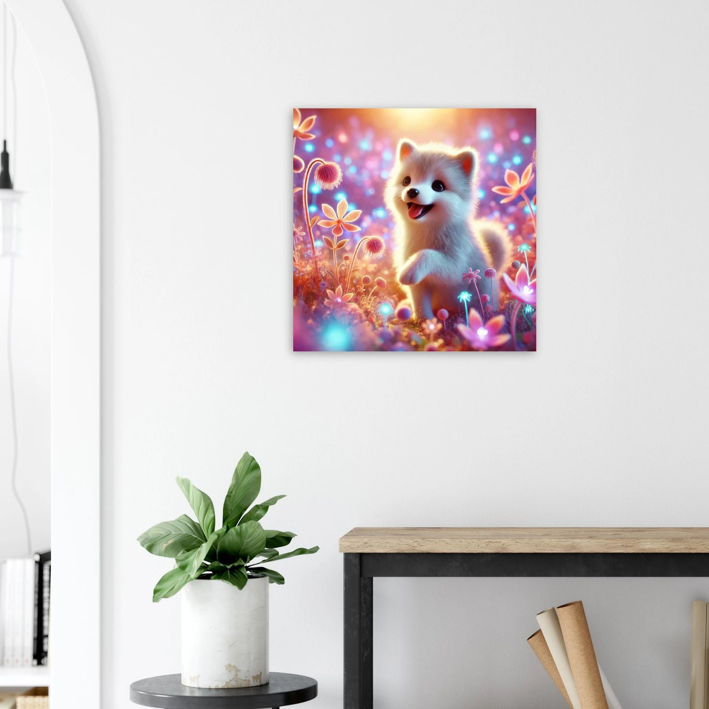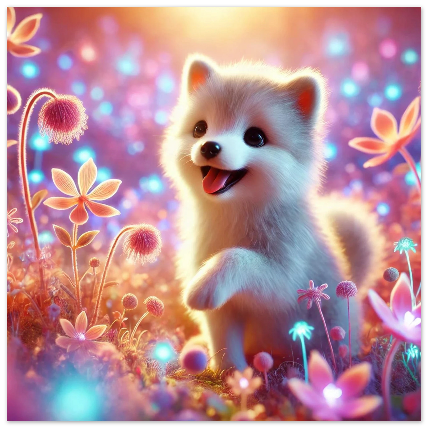Leicht, modern und strahlend – mit Nuki, dem verspielten Wolfswelpen, holst du dir Lebensfreude und Wärme direkt an deine Wand.