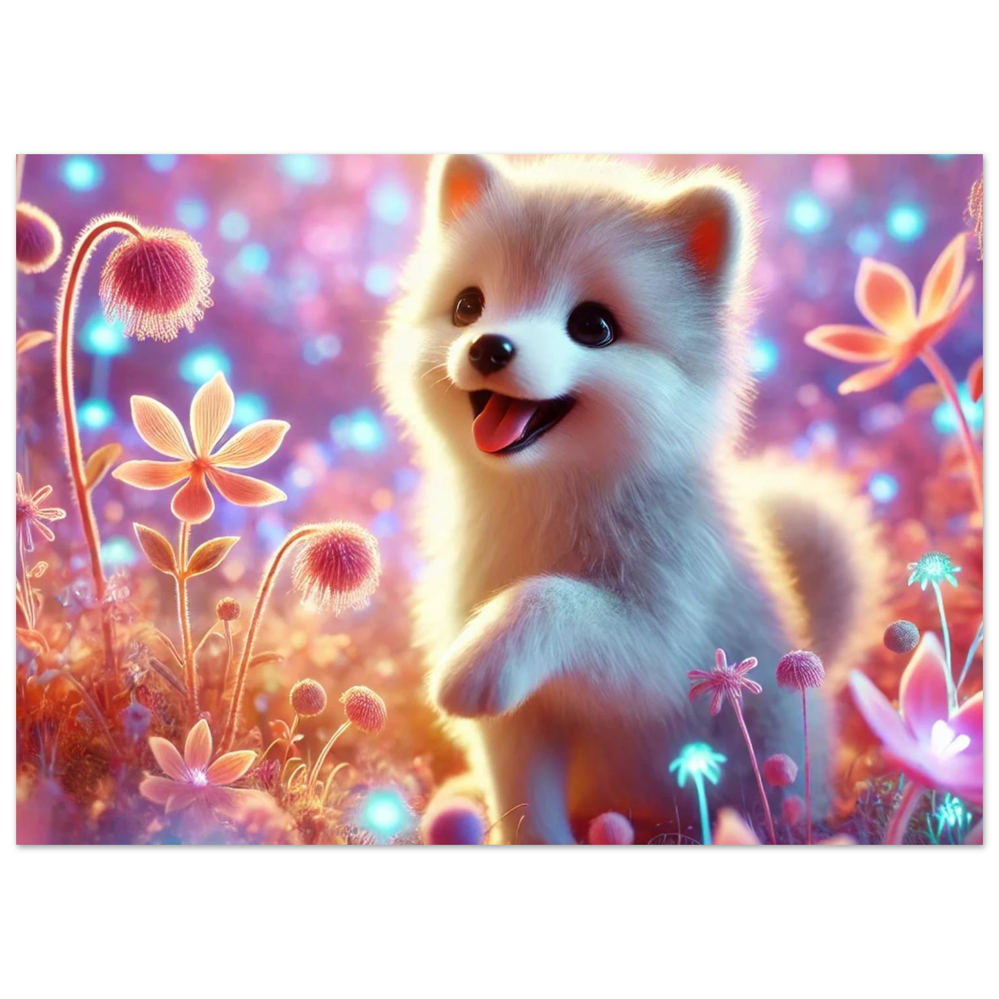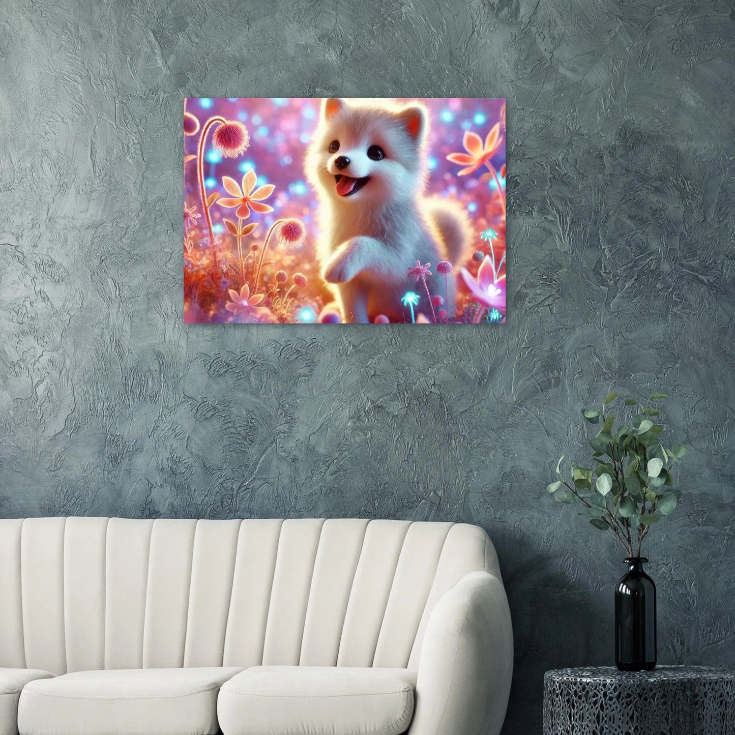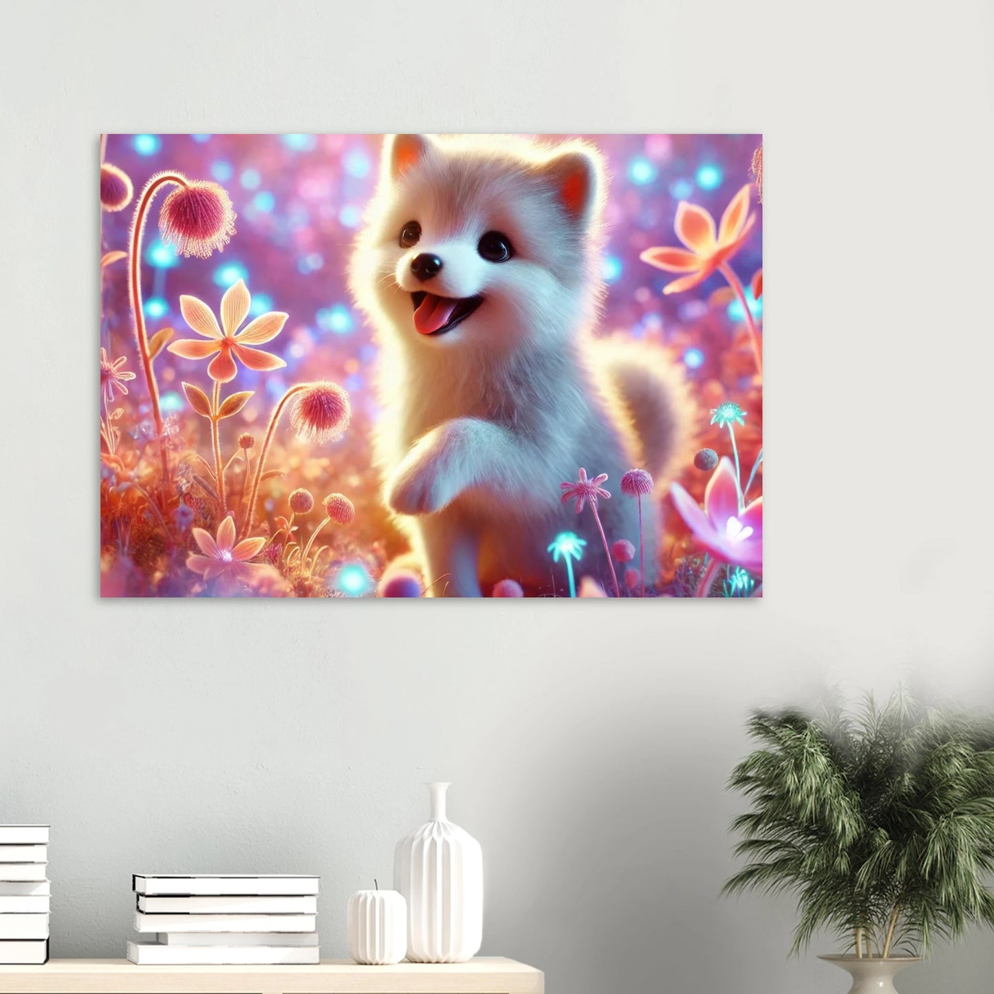 Leicht, modern und strahlend – mit Nuki, dem verspielten Wolfswelpen, holst du dir Lebensfreude und Wärme direkt an deine Wand.