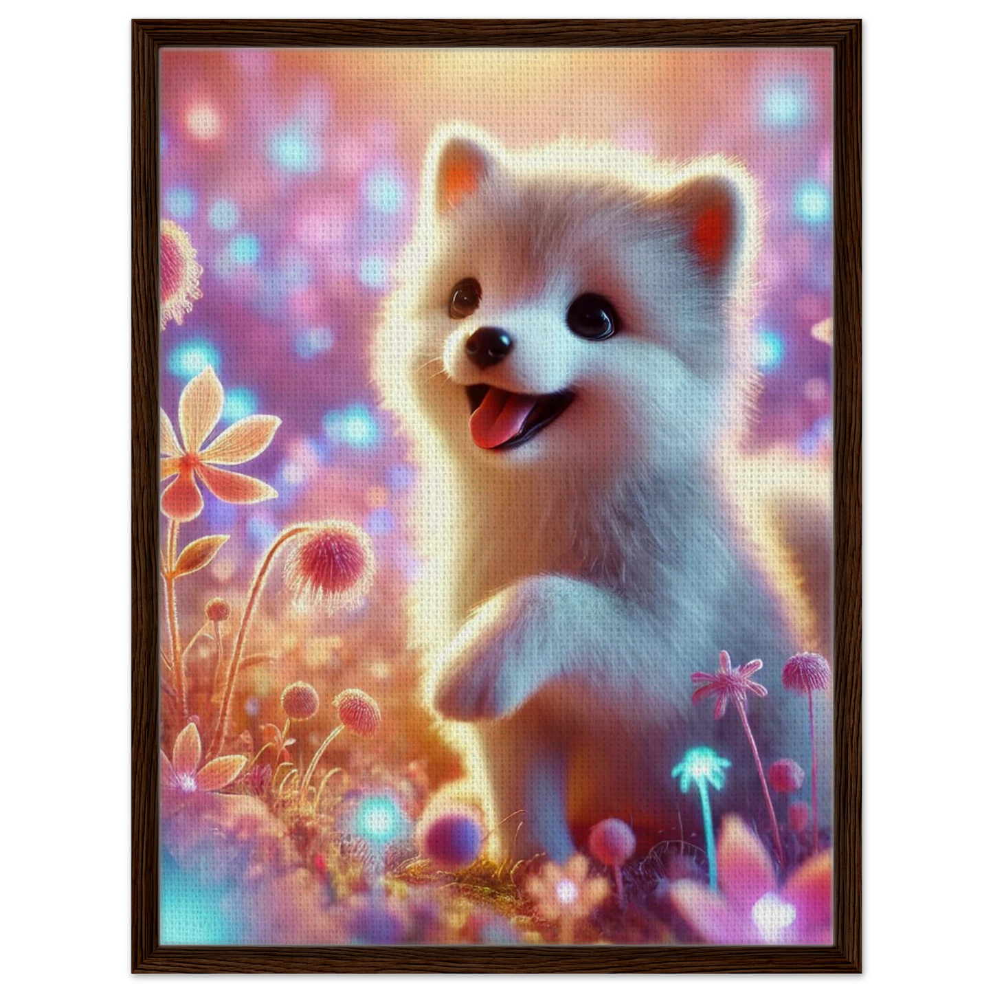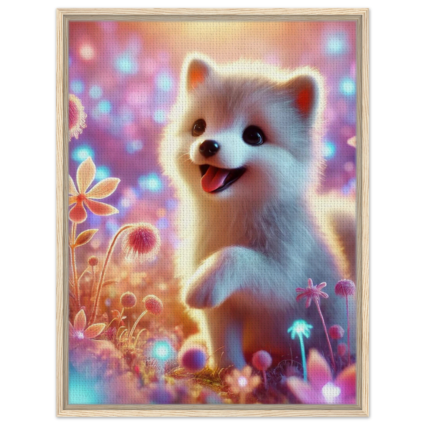 Verleihe deinem Zuhause Wärme, Leichtigkeit und einen Hauch Magie – mit diesem Premium-Gerähmten Leinwanddruck von Nuki, dem kleinen Wolfswelpen, der die ersten Sonnenstrahlen in seinem Herzen trägt.