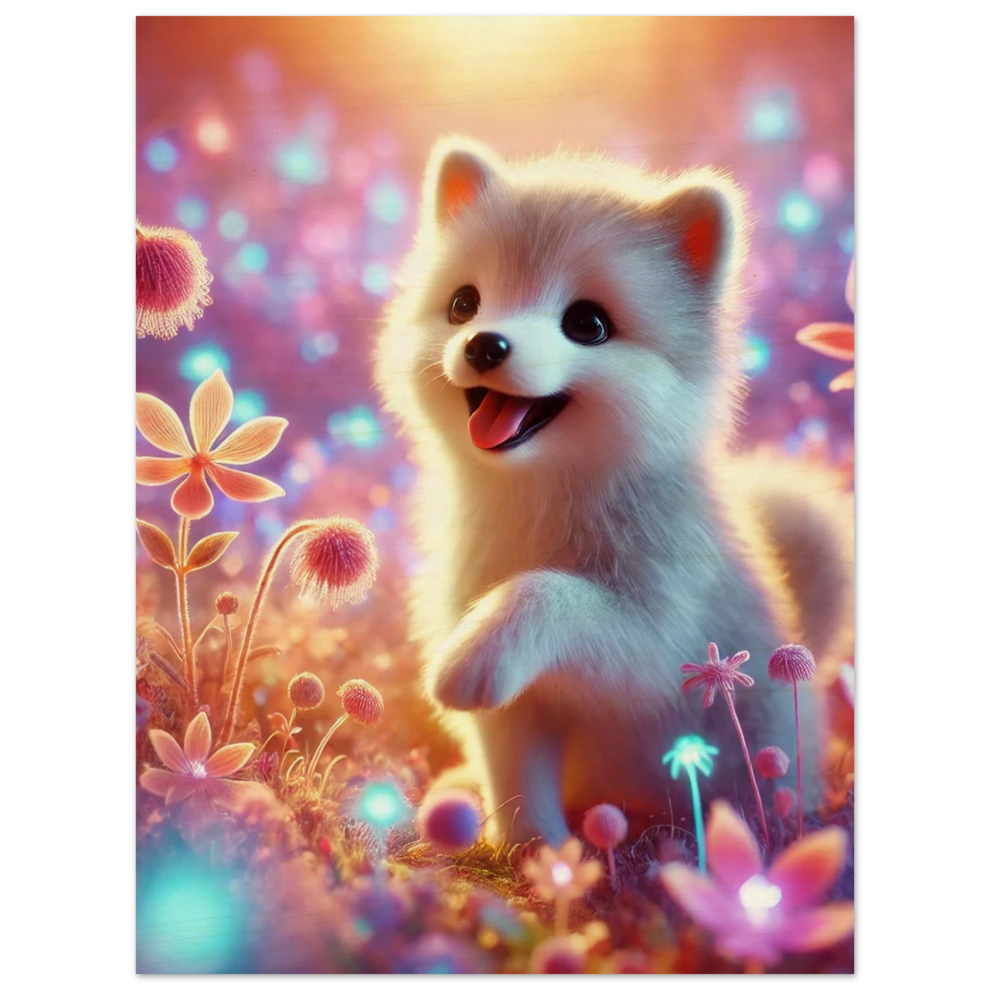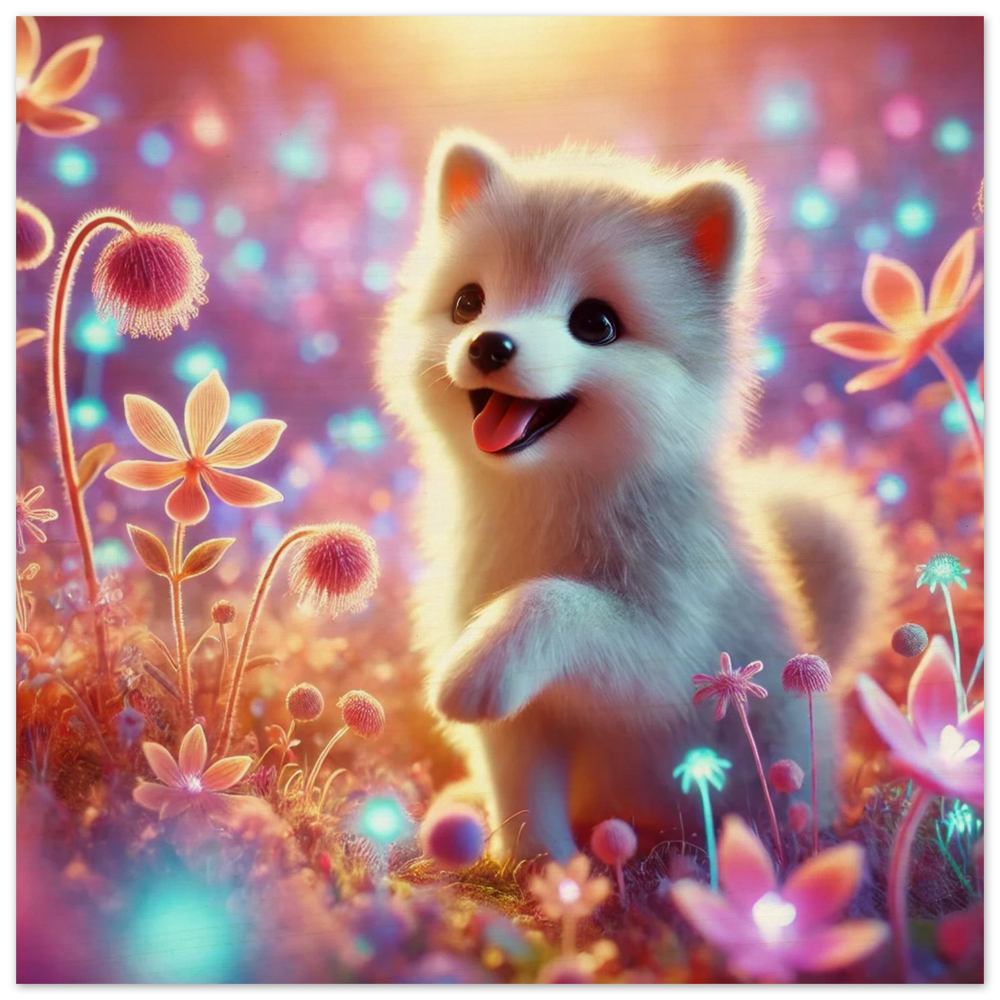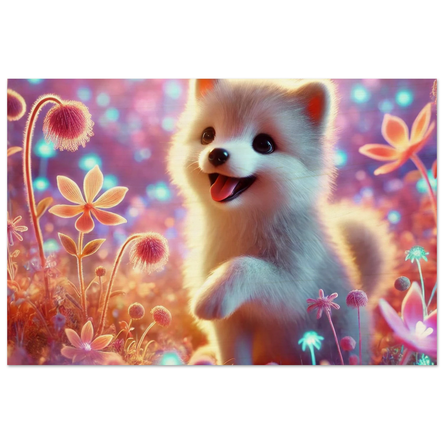 Bring Wärme, Natürlichkeit und verspielte Leichtigkeit in dein Zuhause – mit Nuki, dem fröhlichen Wolfswelpen, auf edlem Birkenholz.