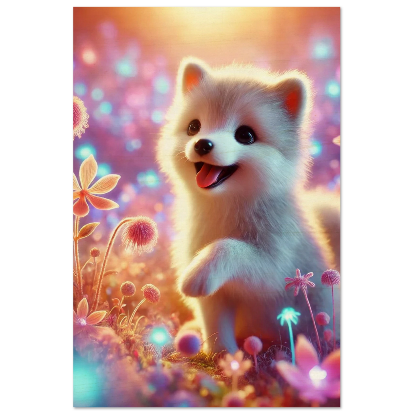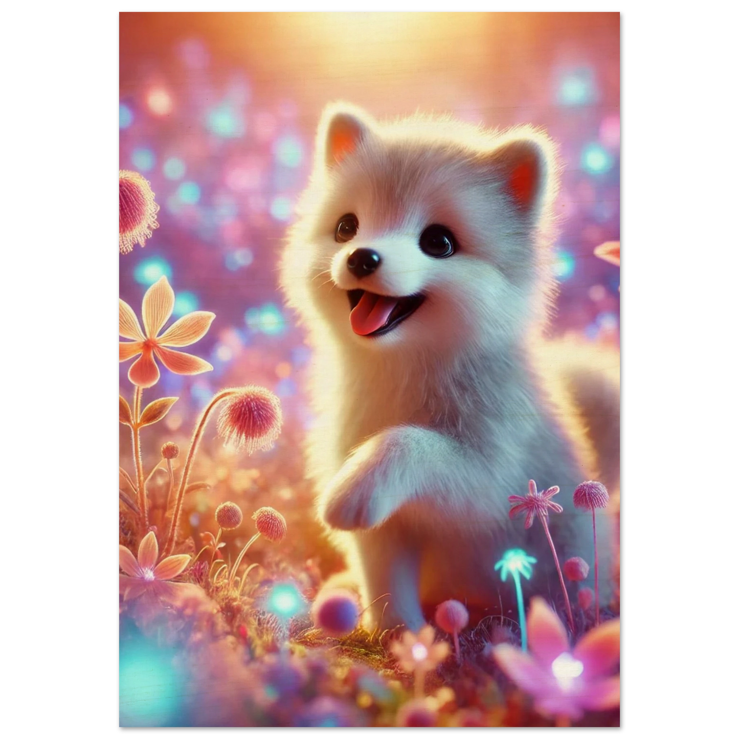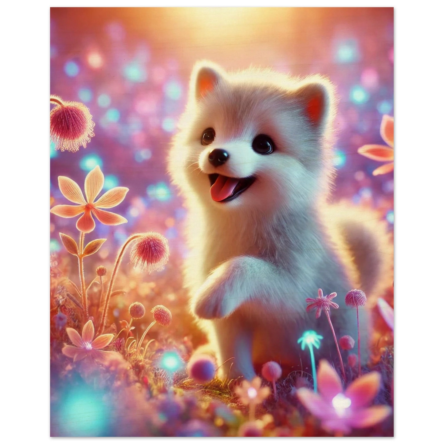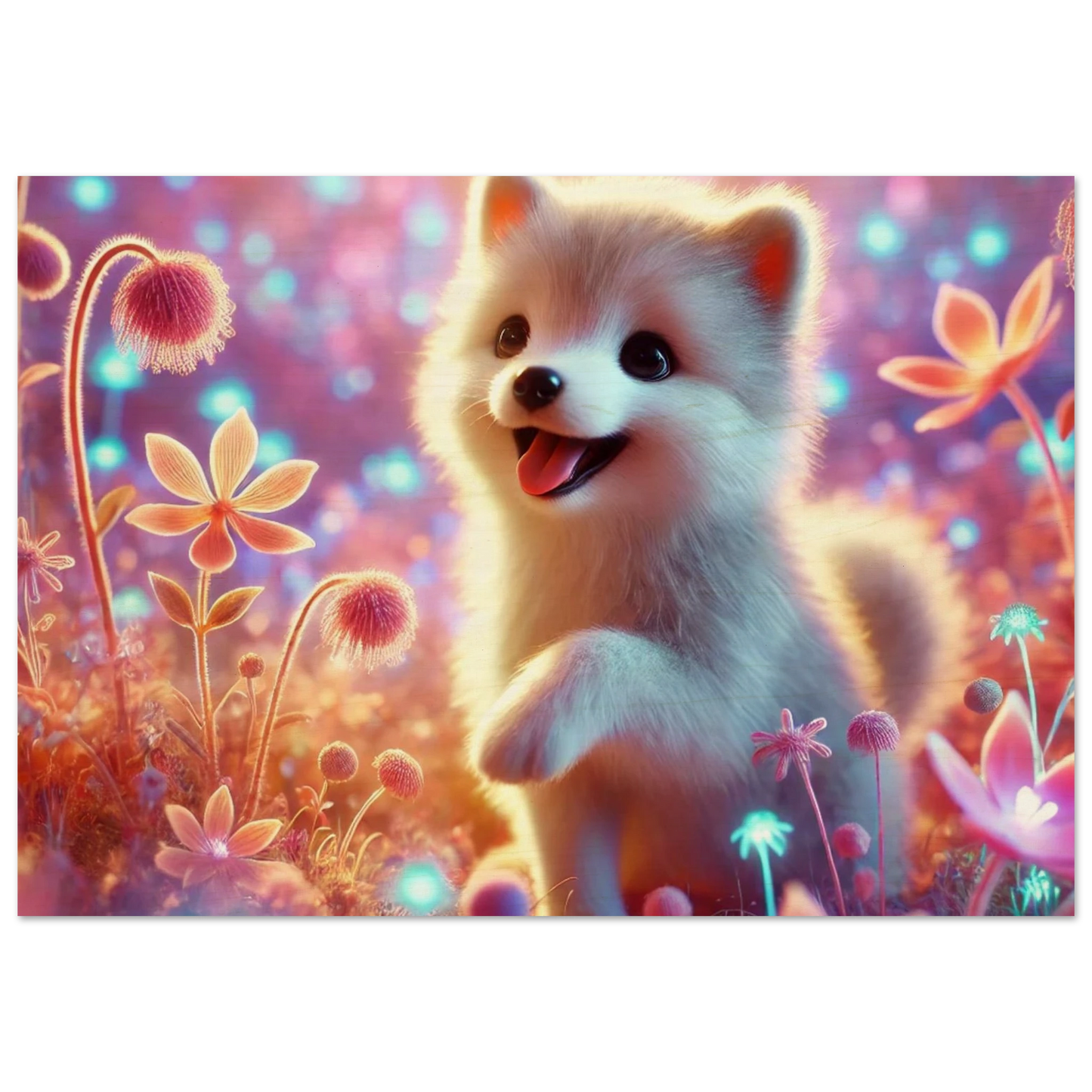 Bring Wärme, Natürlichkeit und verspielte Leichtigkeit in dein Zuhause – mit Nuki, dem fröhlichen Wolfswelpen, auf edlem Birkenholz.