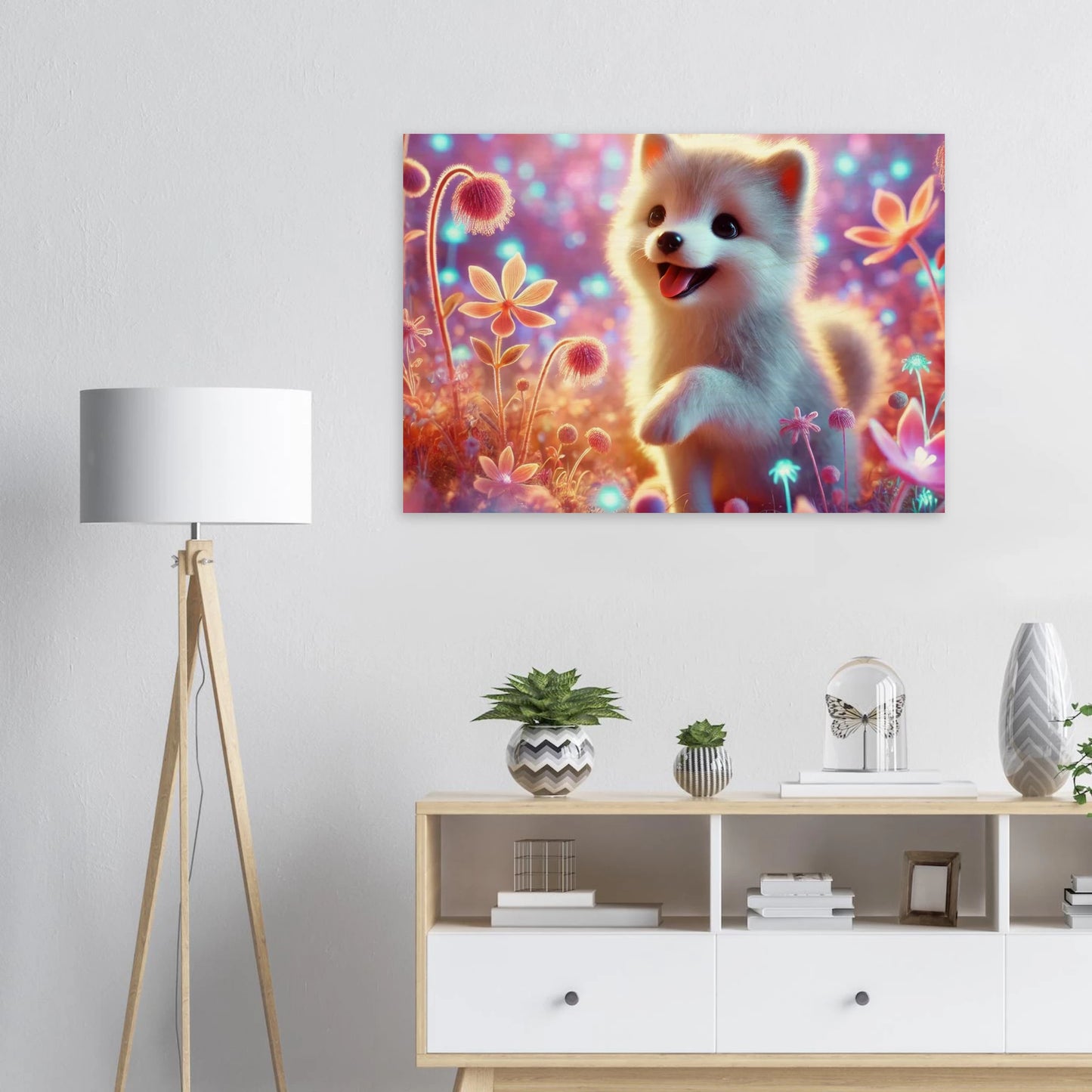 Der Druck auf natürlichem Holz verleiht Nukis Bild einen rustikalen, warmen Charakter, bei dem die zarte Holzmaserung harmonisch mit den leuchtenden Farben spielt.