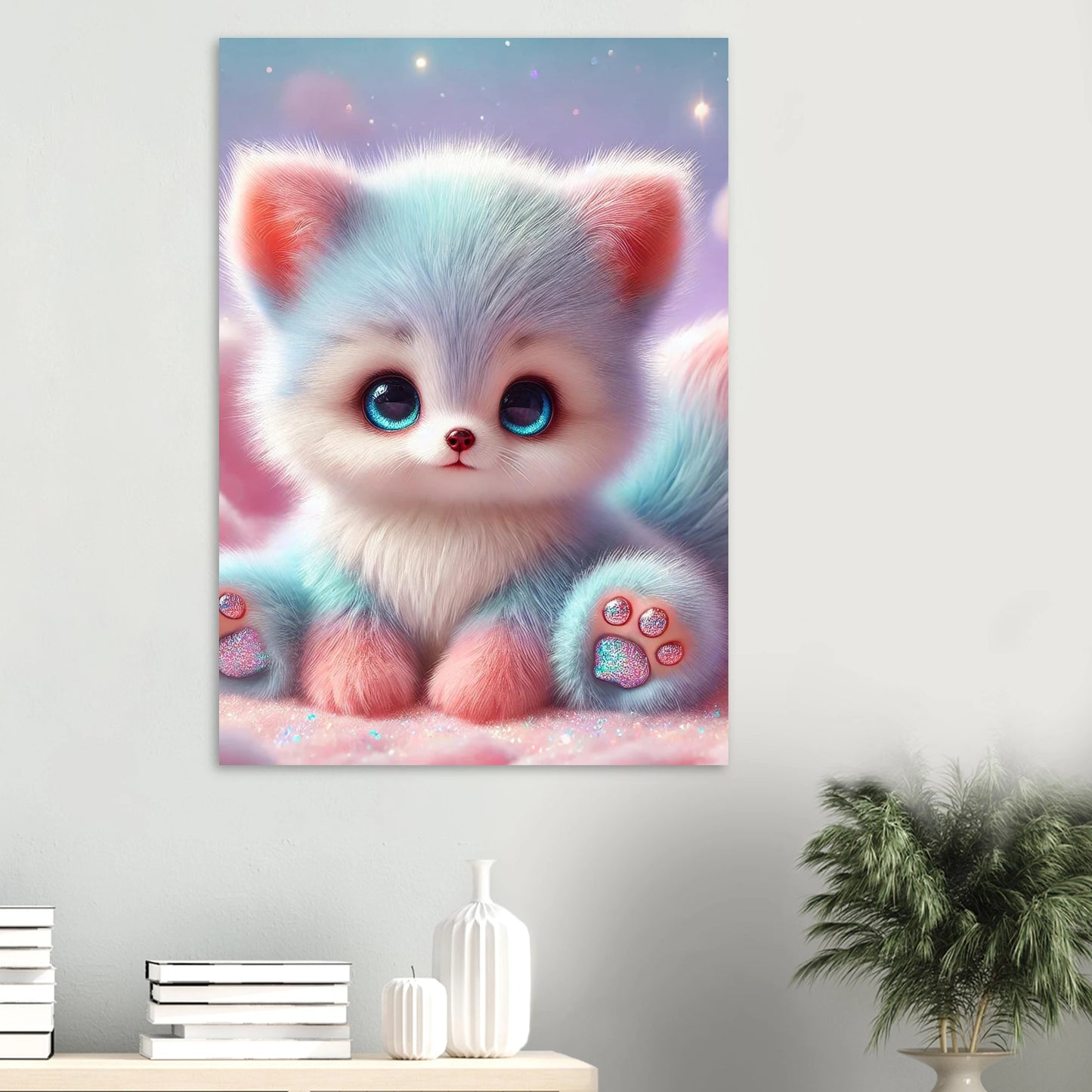 Hol dir ein Stück Nuvinas magische Welt direkt an deine Wand – als eleganten, modernen und federleichten Schaumstoffdruck. Die kleine Wölfin mit dem zuckerwattenfarbenen Fell wurde in einer Wolkenhöhle geboren und besitzt die Gabe, Träume zu berühren. Wenn jemand Trost braucht, erscheint sie in einem sanften Licht und flüstert: „Du bist nicht allein.“ Auf ihrem schwebenden Wolkenbett spinnt sie neue Träume – voller Hoffnung, Wärme und Magie.