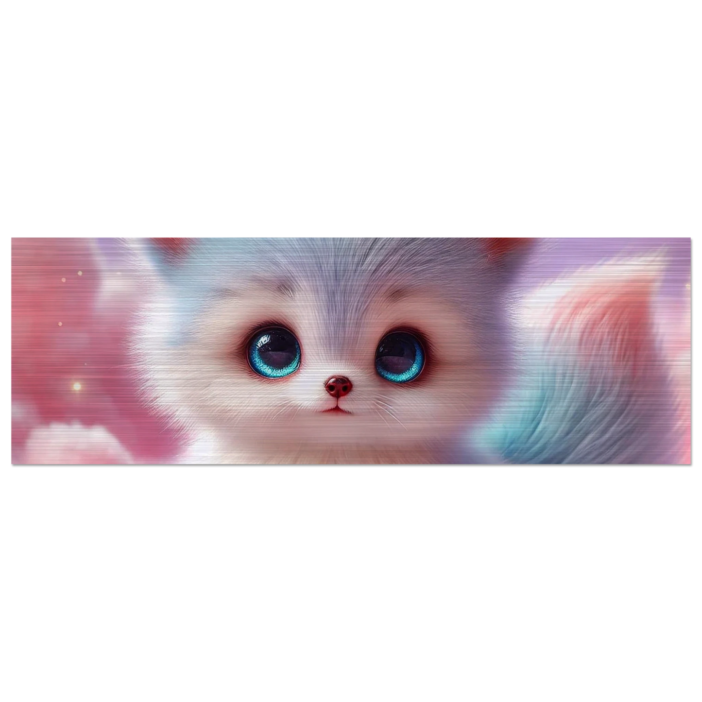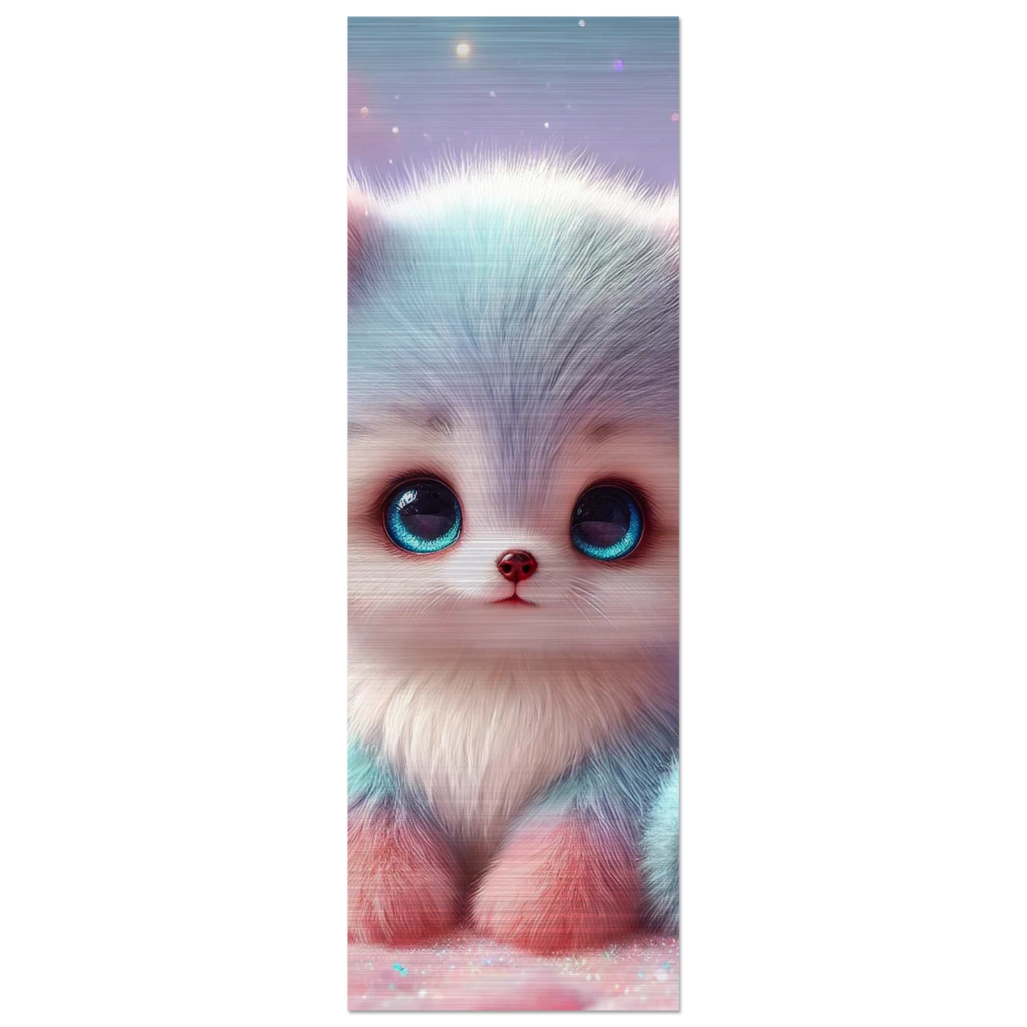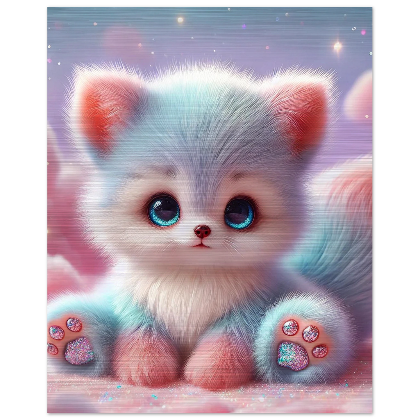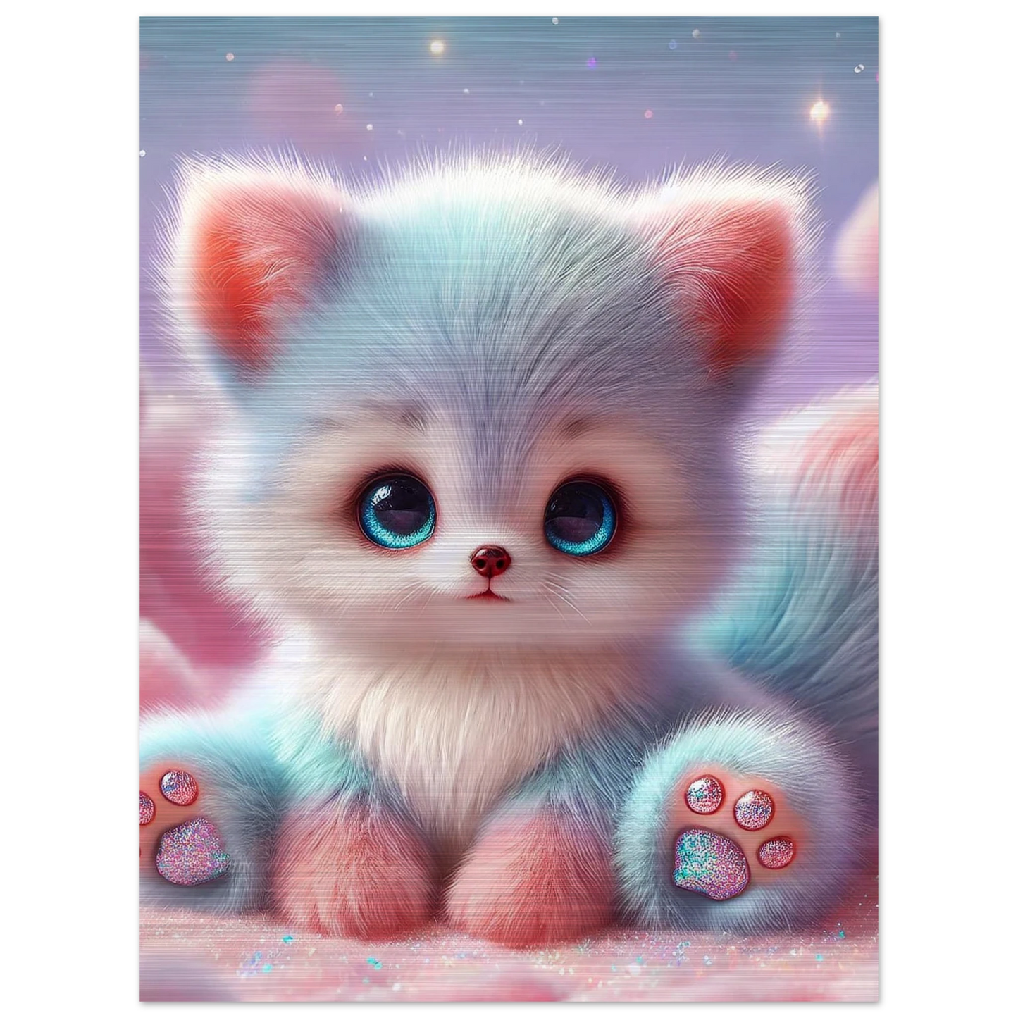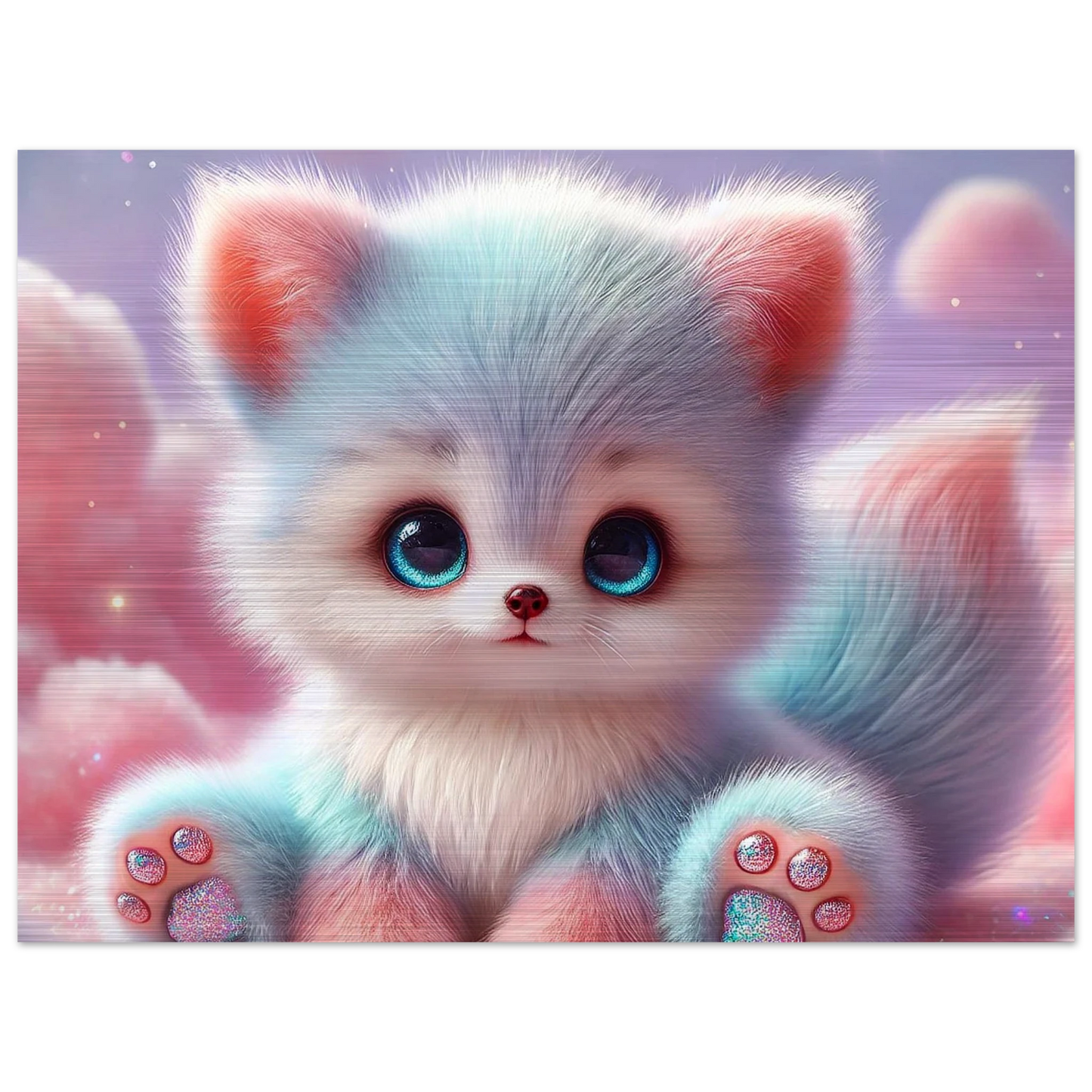 Erlebe Nuvinas märchenhafte Welt jetzt auf edlem, gebürstetem Aluminium – für eine Darstellung, die zugleich magisch, elegant und langlebig ist. Die kleine Wölfin mit ihrem pastellfarbenen Zuckerwatte-Fell und den funkelnden Augen stammt aus einer Welt aus rosa Wolken und sternenklaren Sonnenaufgängen.