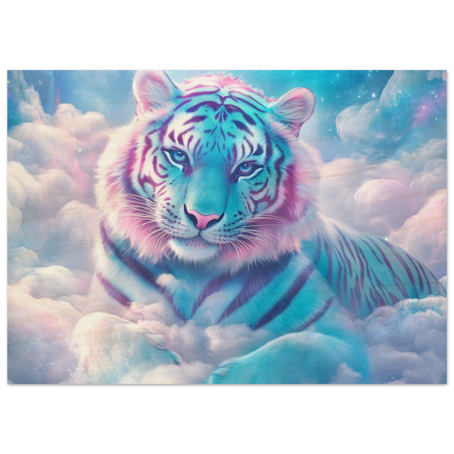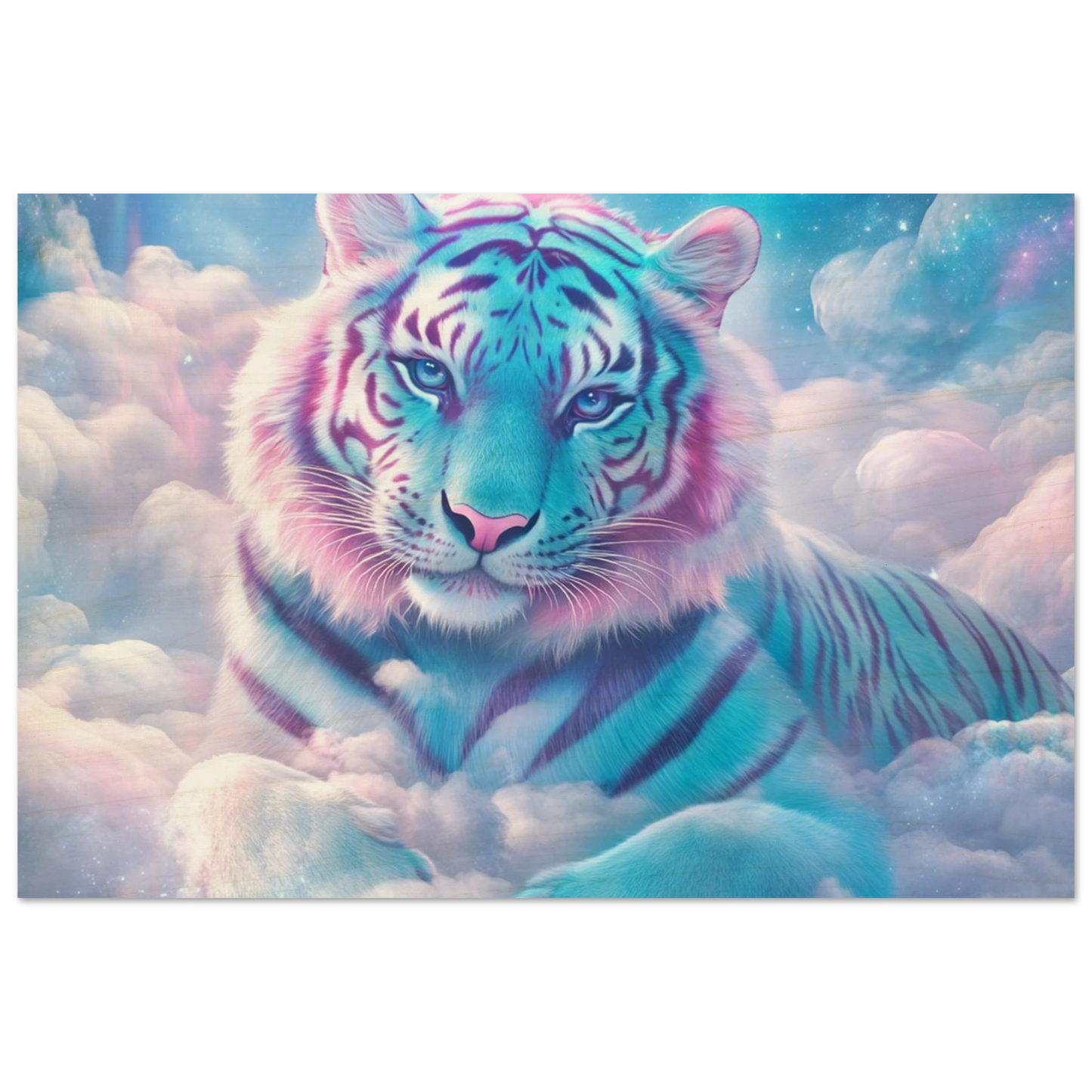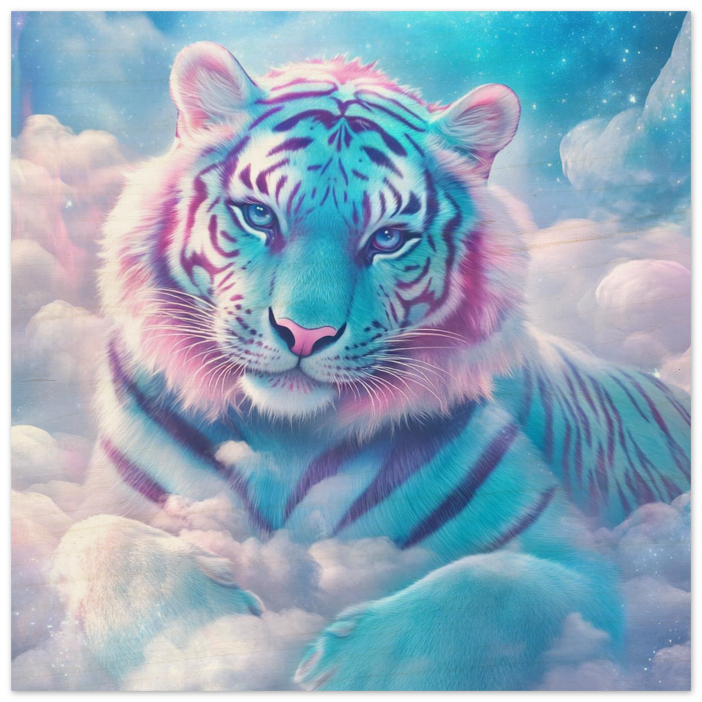 Verleihe deinem Raum einen Hauch von Magie und Natur – mit Nuvion, dem majestätischen Tiger aus Sternenlicht, verewigt auf hochwertigem Birkenholz. Die natürliche Maserung des Holzes verleiht dem pastellfarbenen Fell und den funkelnden Sternenwolken eine warme, organische Tiefe. Weiße Bildbereiche bleiben unbedruckt und lassen das Holz sanft durchscheinen, wodurch ein einzigartiger, rustikaler Charakter entsteht. Perfekt für alle, die Fantasie, Eleganz und Natürlichkeit in einem Kunstwerk vereinen wollen.
