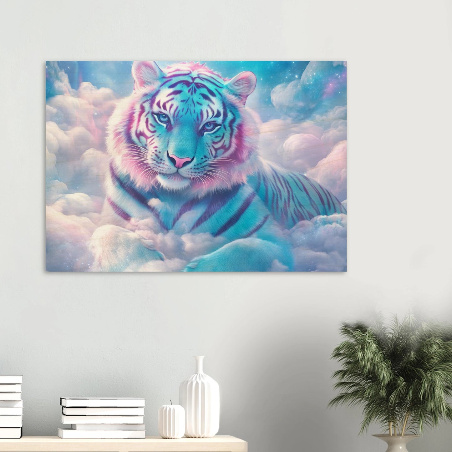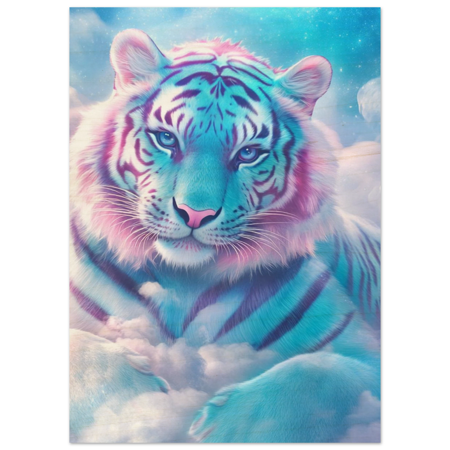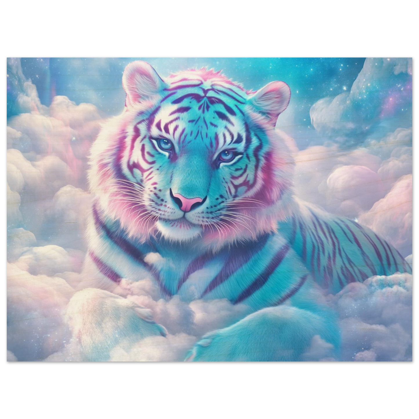 Verleihe deinem Raum einen Hauch von Magie und Natur – mit Nuvion, dem majestätischen Tiger aus Sternenlicht, verewigt auf hochwertigem Birkenholz. Die natürliche Maserung des Holzes verleiht dem pastellfarbenen Fell und den funkelnden Sternenwolken eine warme, organische Tiefe. Weiße Bildbereiche bleiben unbedruckt und lassen das Holz sanft durchscheinen, wodurch ein einzigartiger, rustikaler Charakter entsteht. Perfekt für alle, die Fantasie, Eleganz und Natürlichkeit in einem Kunstwerk vereinen wollen.
