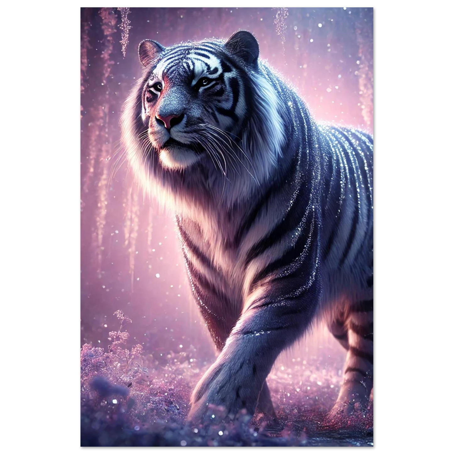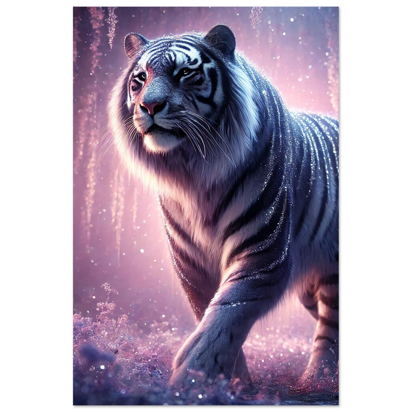 Leicht, modern und eindrucksvoll: Mit einem Schaumstoffdruck von Nyaro bringst du die funkelnde Ruhe des Kristallhimmels stilvoll in deine Räume. Das elegante, glatte Finish unterstreicht die silbernen Akzente seines Fells und die schimmernden Kristallblüten seiner Welt. Perfekt, um ein modernes Ambiente mit der Magie von Nyaros Stille zu verbinden.