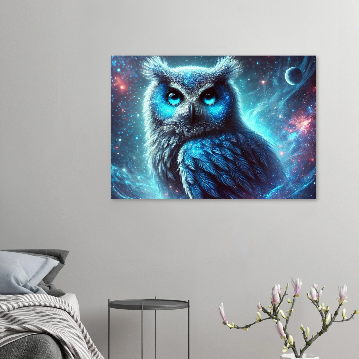 Nyxion, die geheimnisvolle Eule aus Sternenstaub, gleitet lautlos durch die Nacht. Sein tiefblaues Gefieder, durchzogen von kosmischem Licht, wirkt wie gewebt aus Galaxien – und seine Augen tragen die Weisheit des Universums. Ein stiller Hüter, der Hoffnung schenkt, wenn die Dunkelheit am tiefsten ist.