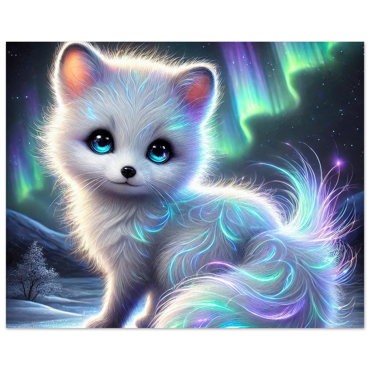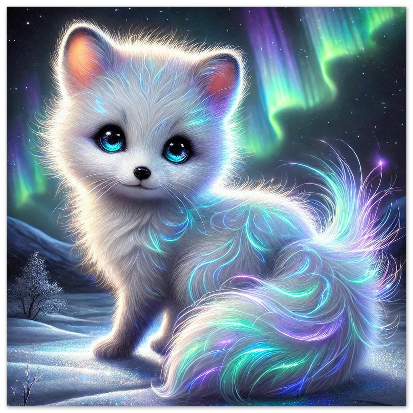 Polarion, der leuchtende Wolfsgeist des Nordens, wurde aus dem ersten Schnee eines magischen Nordsturms geboren. Sein schimmerndes Fell erstrahlt unter den tanzenden Polarlichtern in magischen Farben. Lautlos durchstreift er die eisigen Weiten, führt Verlorene sicher durch Schneestürme und schenkt Licht und Hoffnung in den dunkelsten Nächten. Man sagt, dass jeder, der Polarion begegnet, einen Wunsch äußern darf – und wenn das Herz rein ist, erfüllt er ihn still, mit einem Schweif aus Licht.