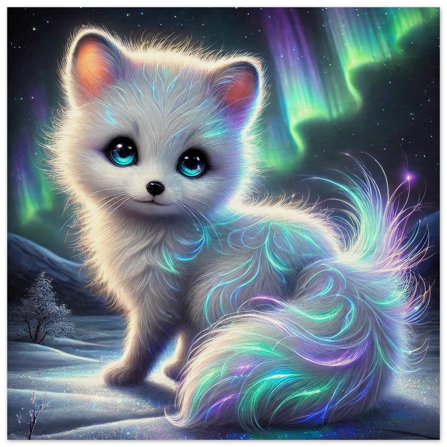 Polarion, der leuchtende Wolfsgeist des Nordens, streift durch ewige Schneewälder, sein Fell schimmert weiß wie frisch gefallener Schnee und erstrahlt im Tanz der Polarlichter in magischen Farben. Geboren aus dem ersten Schnee eines Nordsturms, führt er Reisende sicher durch eisige Nächte und schenkt ihnen Hoffnung und Licht. Man sagt, wer Polarion begegnet, darf sich einen Wunsch aus reinem Herzen wünschen – und er erfüllt ihn still, wie ein Flüstern im Wind.