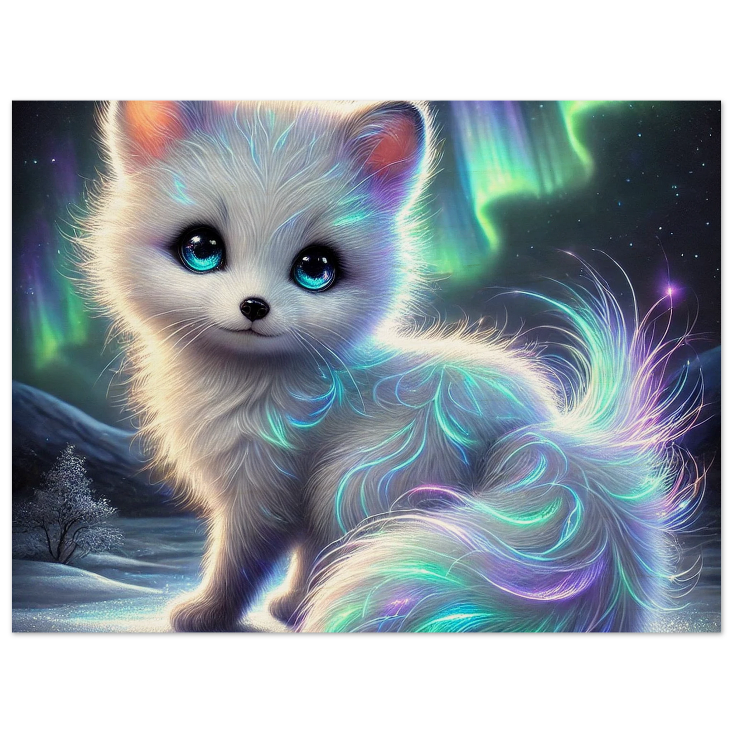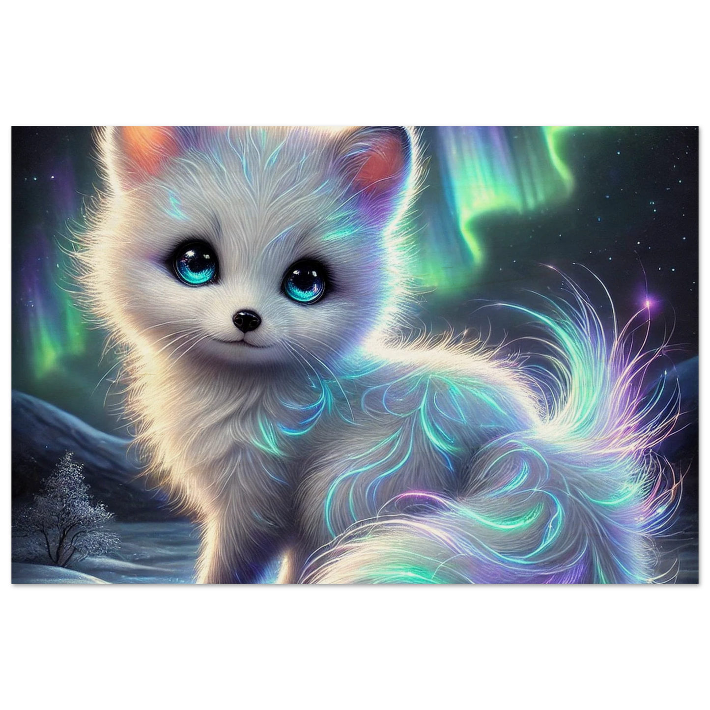 Hol dir mit Polarion – Lichtpfote des Nordens als Holzdruck ein Stück ewige Wintermagie in dein Zuhause – rustikal, mystisch und voller nordischer Seele.